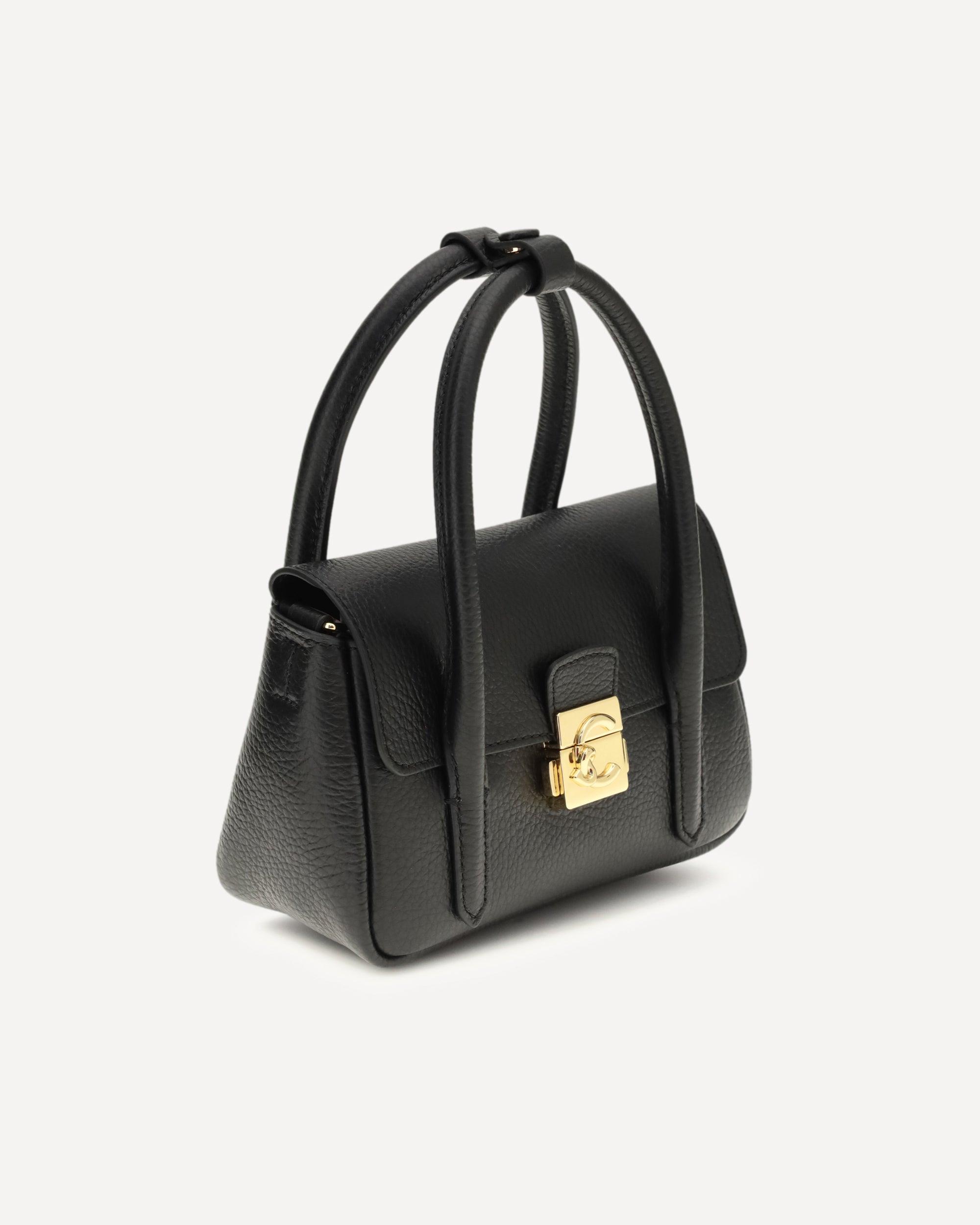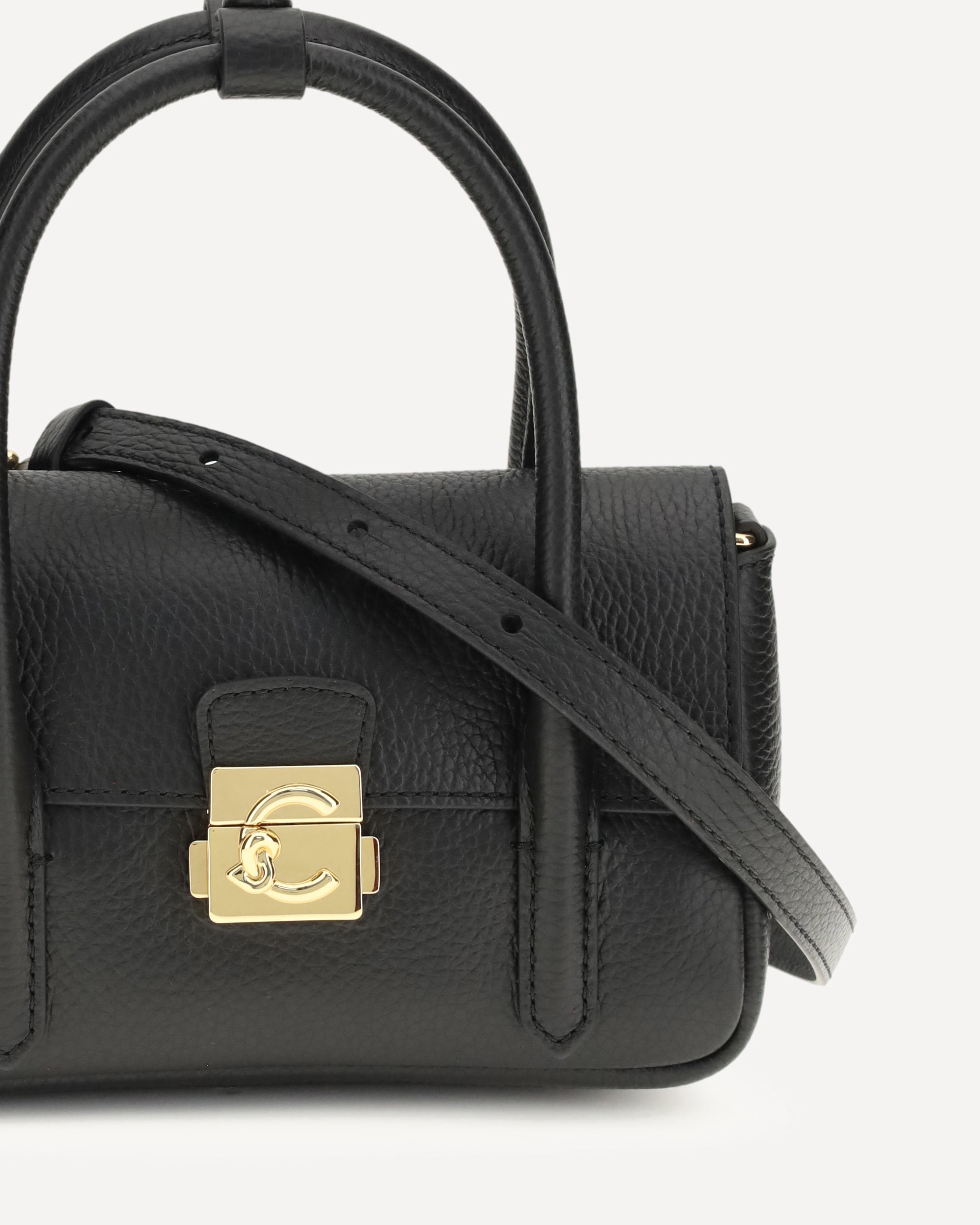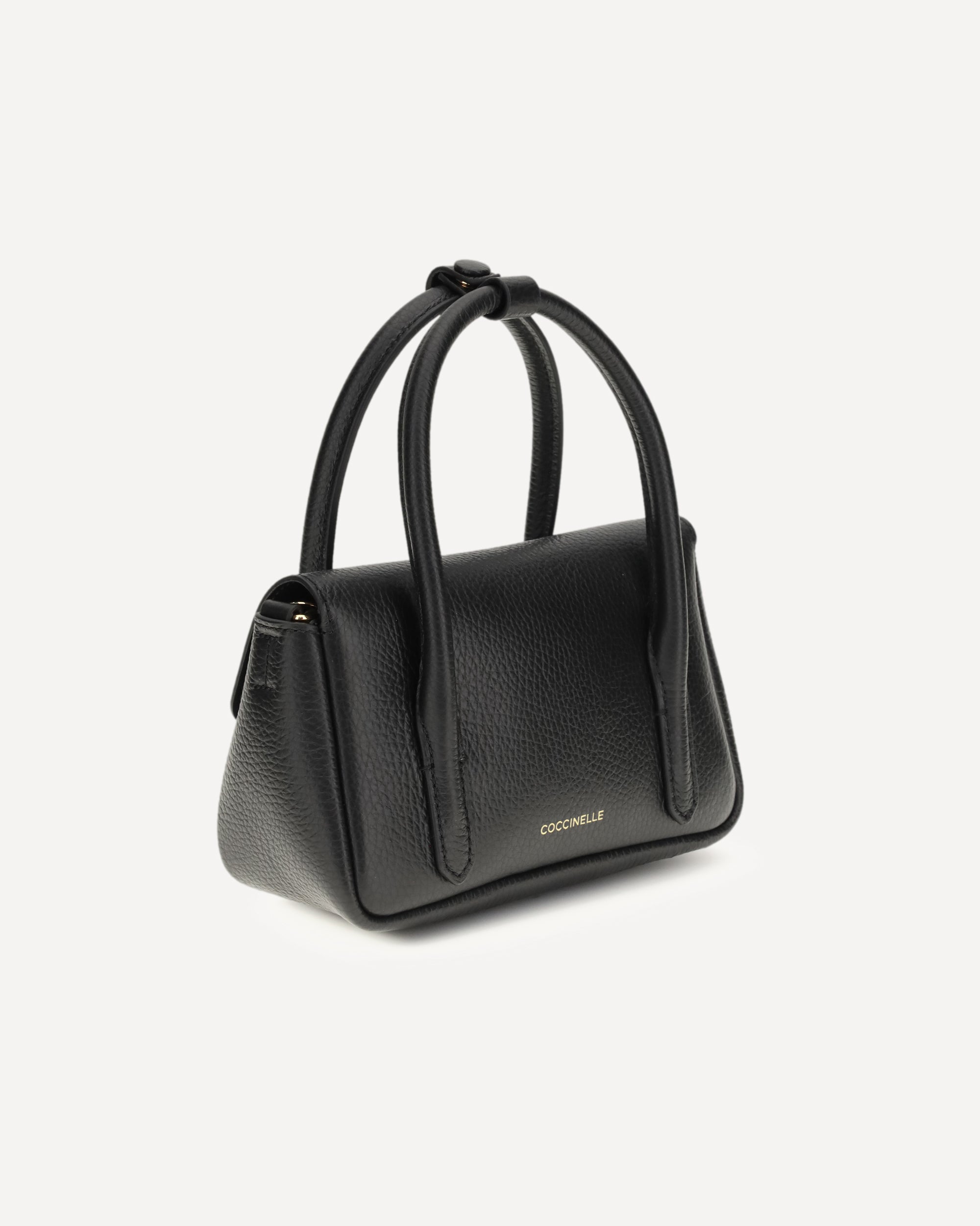 La Borsa a Mano C-Me Lock mini di Coccinelle è una minibag a mano realizzata in pelle con grana e dotata di manici tubolari. La chiusura tuc con pulsanti laterali garantisce praticità e sicurezza, mentre la tracolla in pelle removibile e regolabile offre la possibilità di indossarla anche a tracolla. L’interno comprende una tasca interna, e il modello è impreziosito dalla galvanica gold e dal logo timbro oro, che aggiungono un tocco elegante e raffinato.