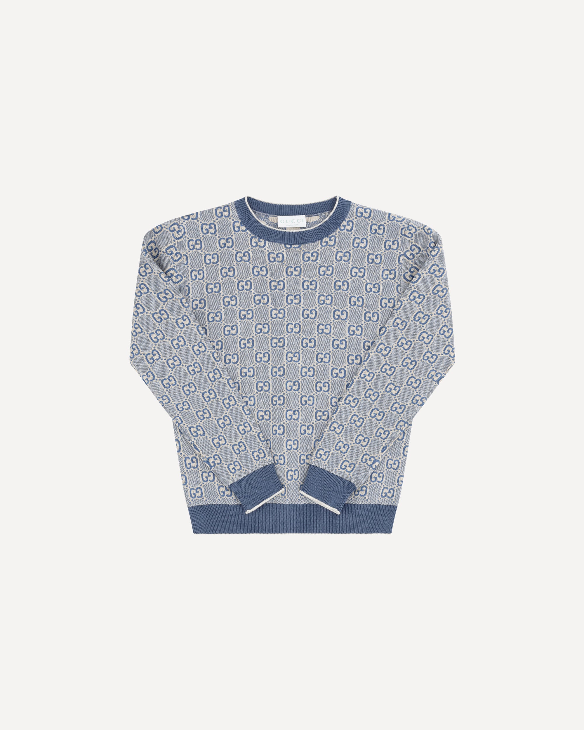 Maglione GG in cotone per Bambino di Gucci è un capo elegante e comodo per i più piccoli. Ha un classico girocollo a costine, con orlo e polsini anch'essi a costine, che garantiscono una vestibilità perfetta. L'iconica fantasia GG jacquard ricopre tutto il maglione, aggiungendo un tocco di stile distintivo tipico del marchio.