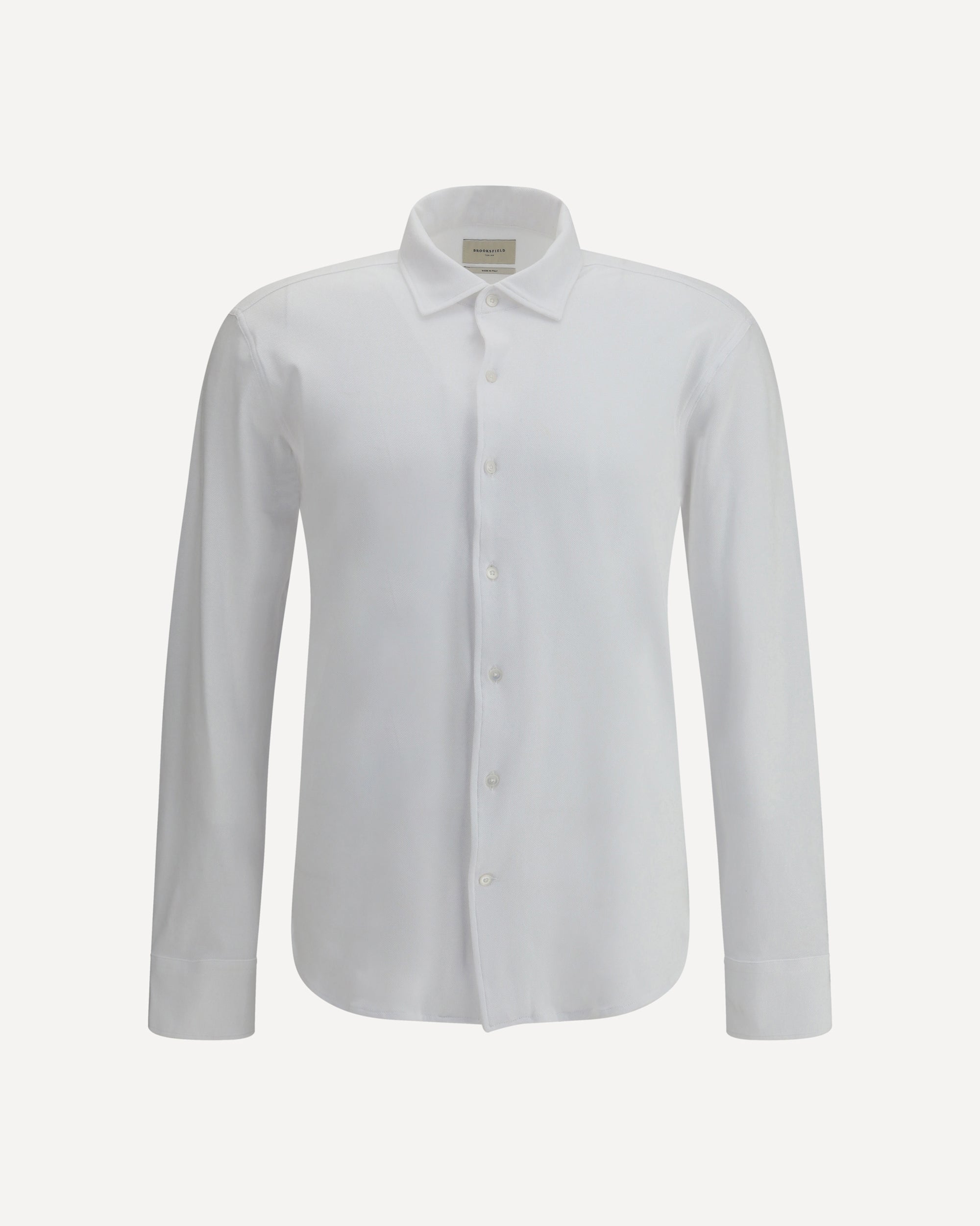 La Camicia in cotone di Brooksfield è un capo che unisce comfort e stile senza tempo. Presenta un colletto alla cubana, chiusura frontale con bottoni e polsini regolabili con bottoncini per una vestibilità personalizzabile. L'iconico logo ricamato sul pannello frontale aggiunge un dettaglio distintivo, perfetto per un look casual ma elegante.