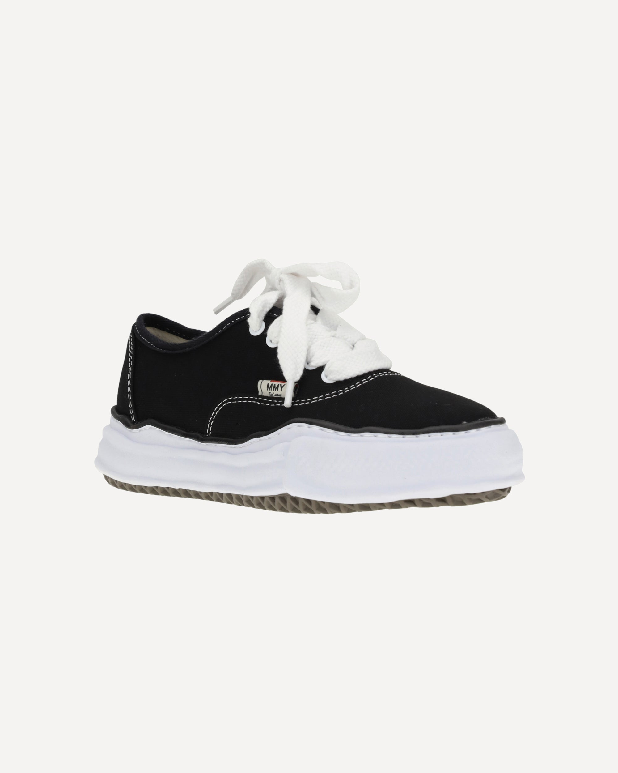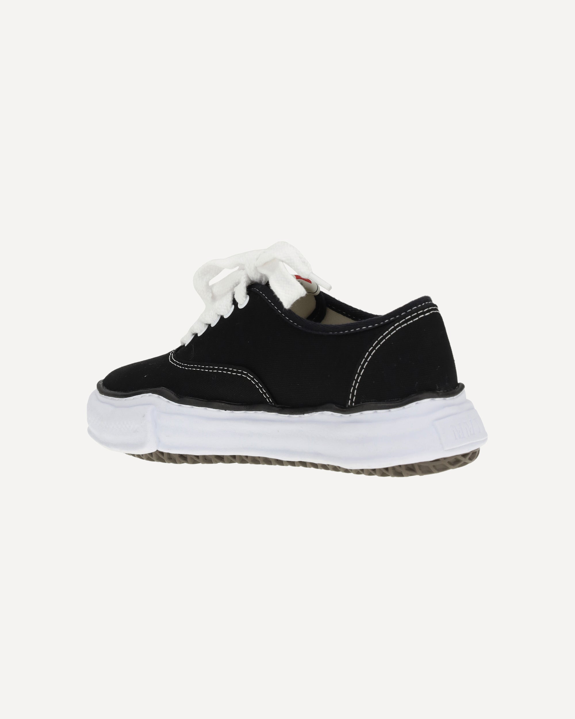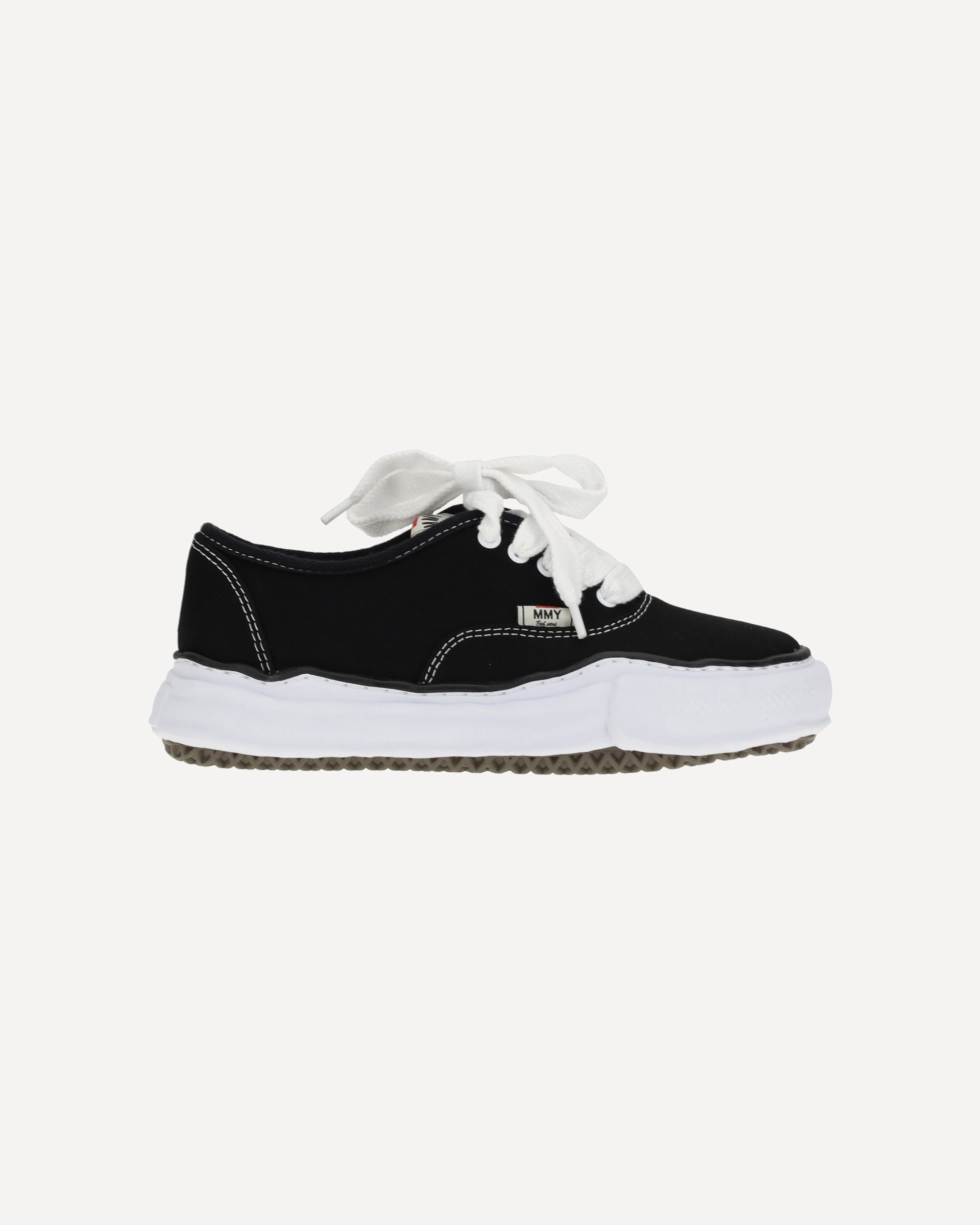 Le Sneakers in cotone di Maison Mihara Yasuhiro presentano una punta tonda e una chiusura con lacci sul fronte. Le cuciture a vista aggiungono un tocco distintivo, mentre la soletta logata e la suola strutturata a contrasto completano il design, conferendo un mix di stile e comfort. Un modello che unisce eleganza e un tocco di streetwear contemporaneo.