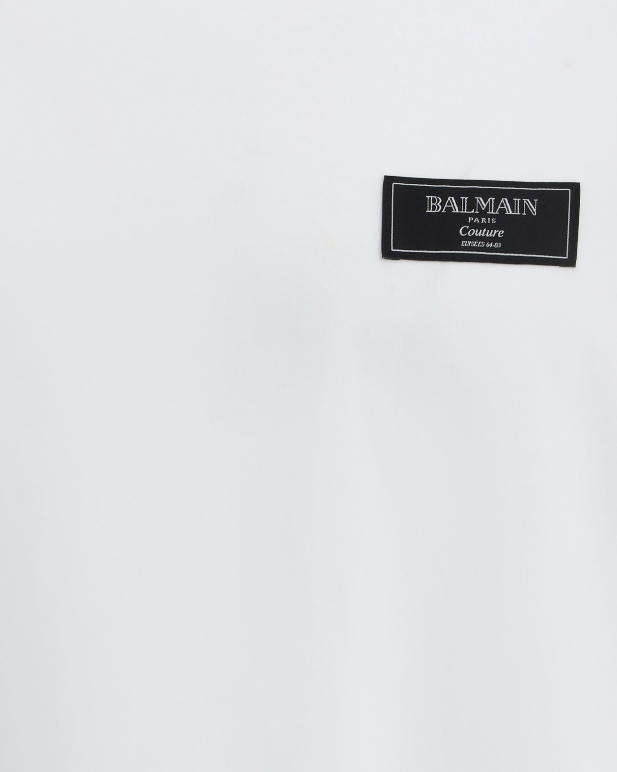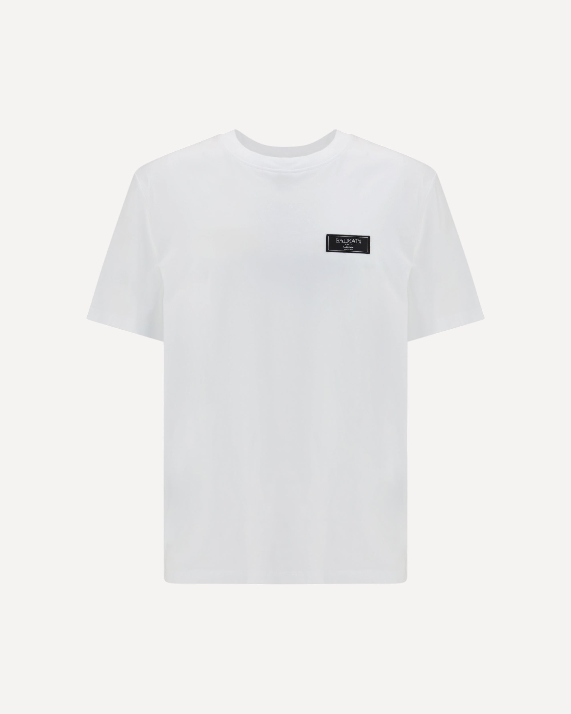 La T-shirt con logo di Balmain è realizzata in morbido cotone e presenta un design essenziale impreziosito dal motivo con logo rettangolare sul davanti. Il modello è caratterizzato da maniche corte e da un classico girocollo che ne definisce l’appeal iconico e contemporaneo.