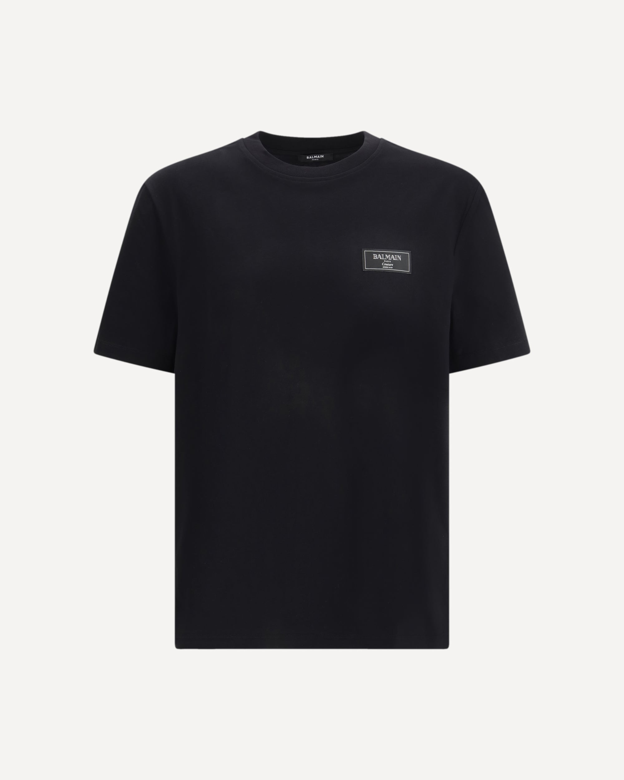 La T-shirt con logo di Balmain è realizzata in morbido cotone e presenta un design essenziale impreziosito dal motivo con logo rettangolare sul davanti. Il modello è caratterizzato da maniche corte e da un classico girocollo che ne definisce l’appeal iconico e contemporaneo.