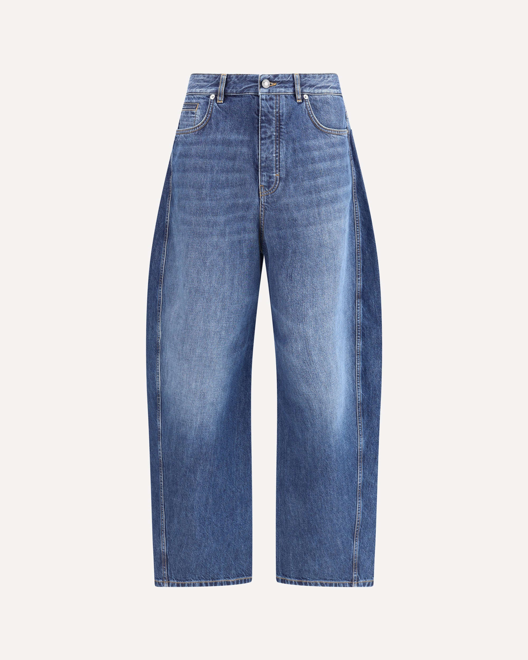 I Jeans oversize di Givenchy combinano un’estetica audace con dettagli ricercati. Caratterizzati da una vestibilità comoda e da cuciture in sbieco che creano un volume avvolgente, presentano passanti in vita, chiusura con cerniera e bottone inciso GIVENCHY. Le tre tasche anteriori e le due posteriori offrono funzionalità, mentre l’applicazione in pelle scamosciata con logo sul retro aggiunge un tocco iconico al design contemporaneo del capo.