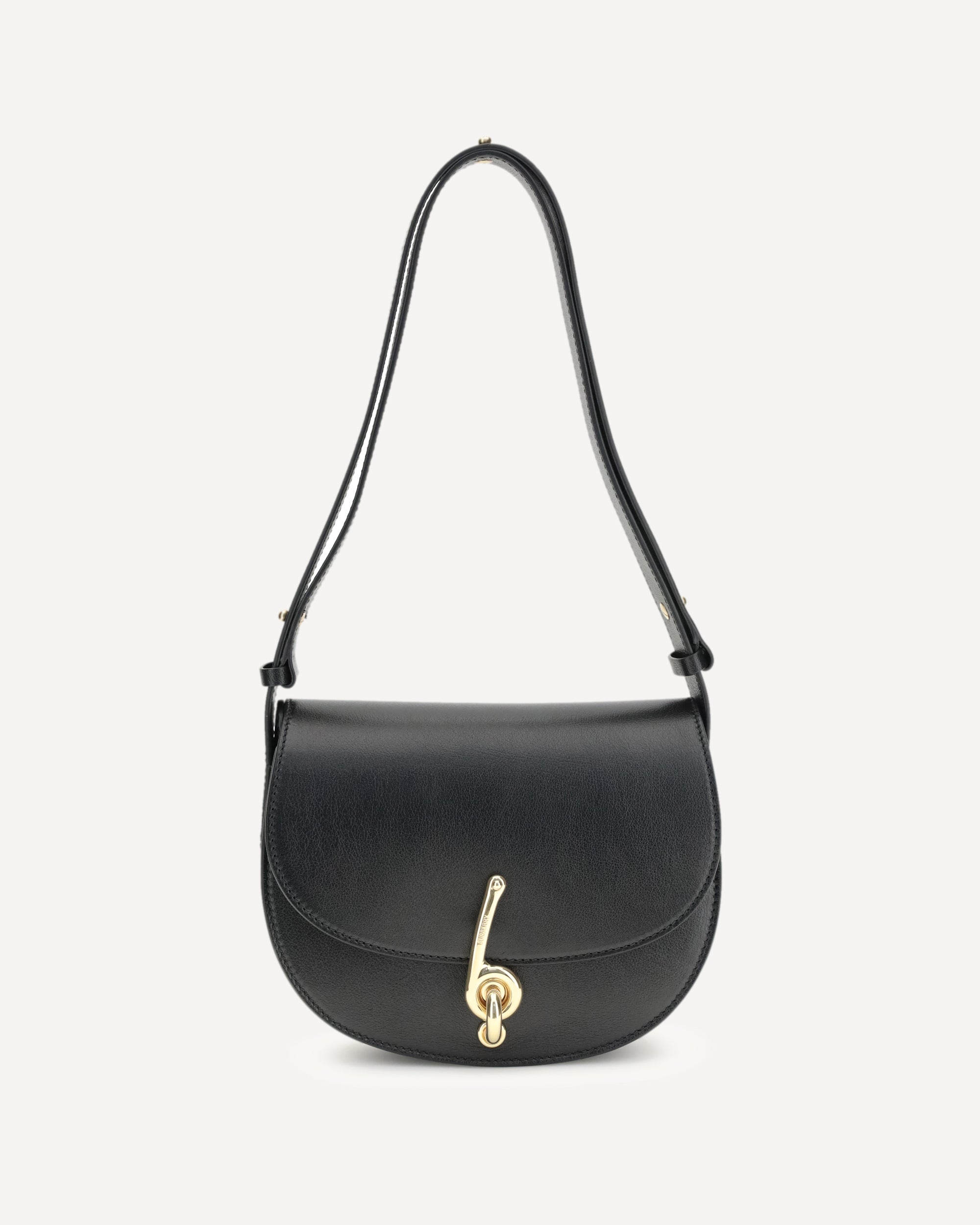 La Borsa a Spalla Bridle piccola di Burberry è un elegante esempio di artigianalità e stile britannico. Realizzata con interno in pelle e bordi dipinti a mano, si distingue per la sua patta risvoltabile con chiusura magnetica impreziosita dal fermaglio a forma di “B”, simbolo iconico della maison. Dotata di tracolla regolabile, offre praticità e comfort, mentre la tasca a bustina esterna e le due interne assicurano un’organizzazione ottimale. Completano il design gli elementi in metallo spazzolato e la scritta Burberry impressa all’interno, per un tocco di raffinatezza discreta e senza tempo.