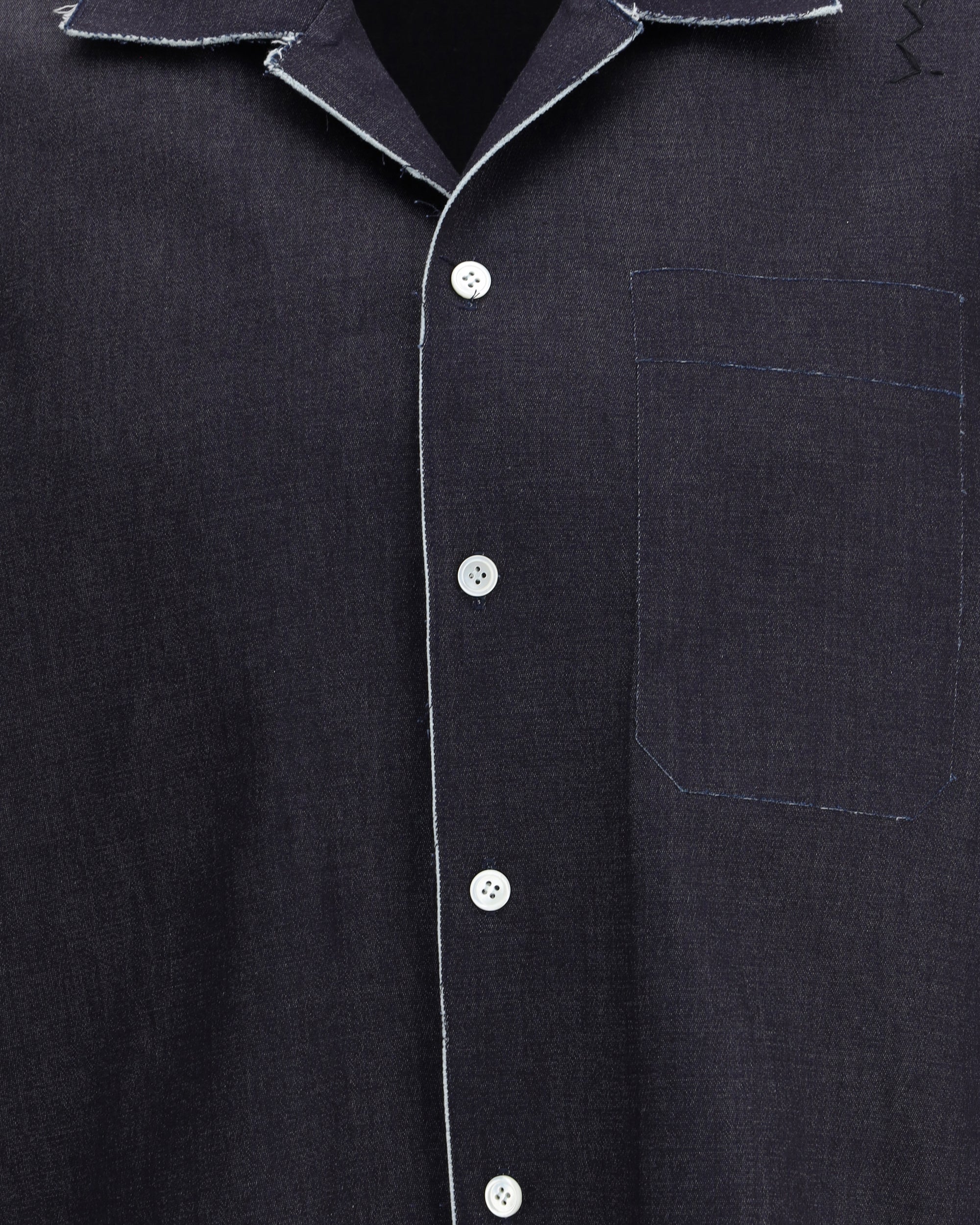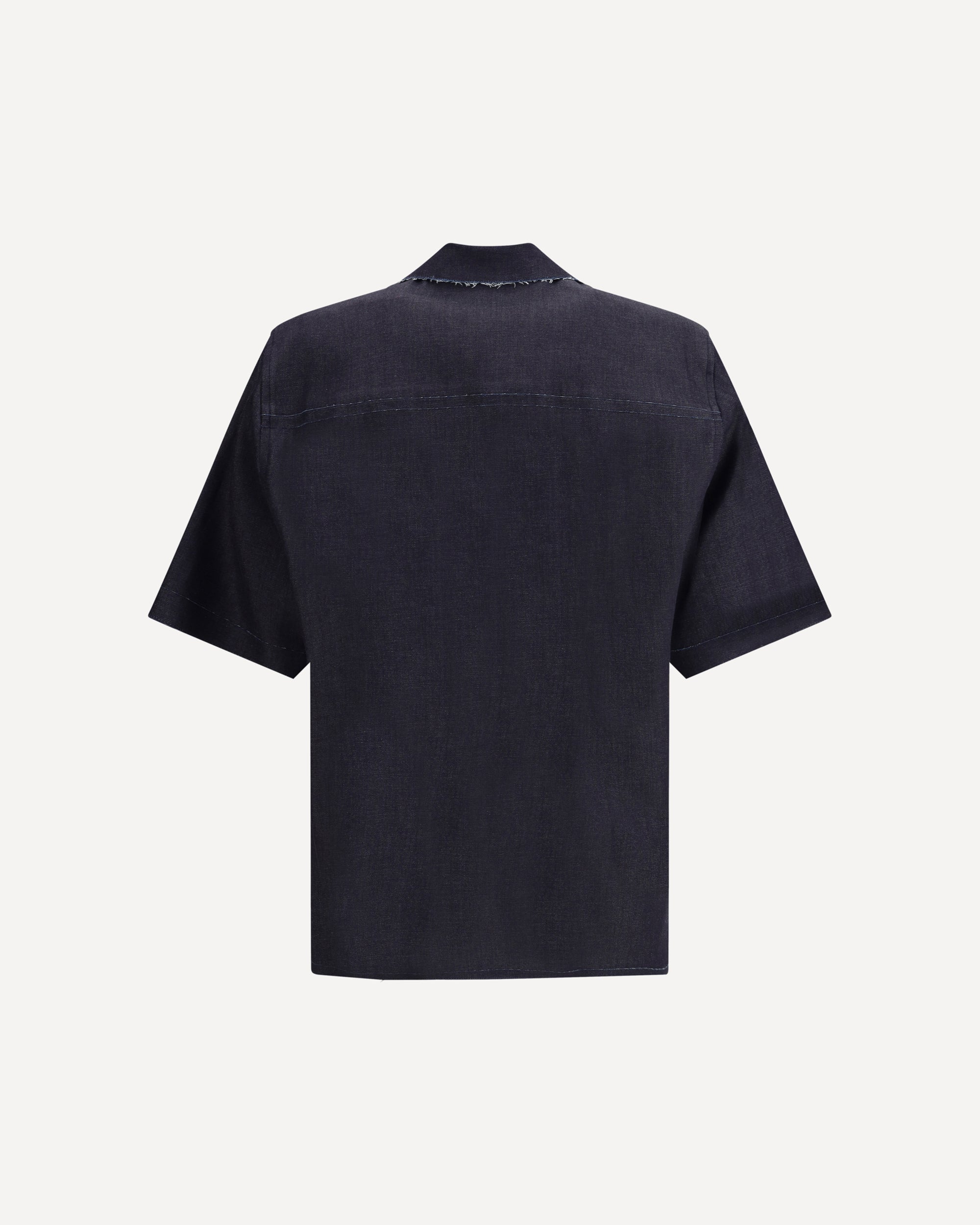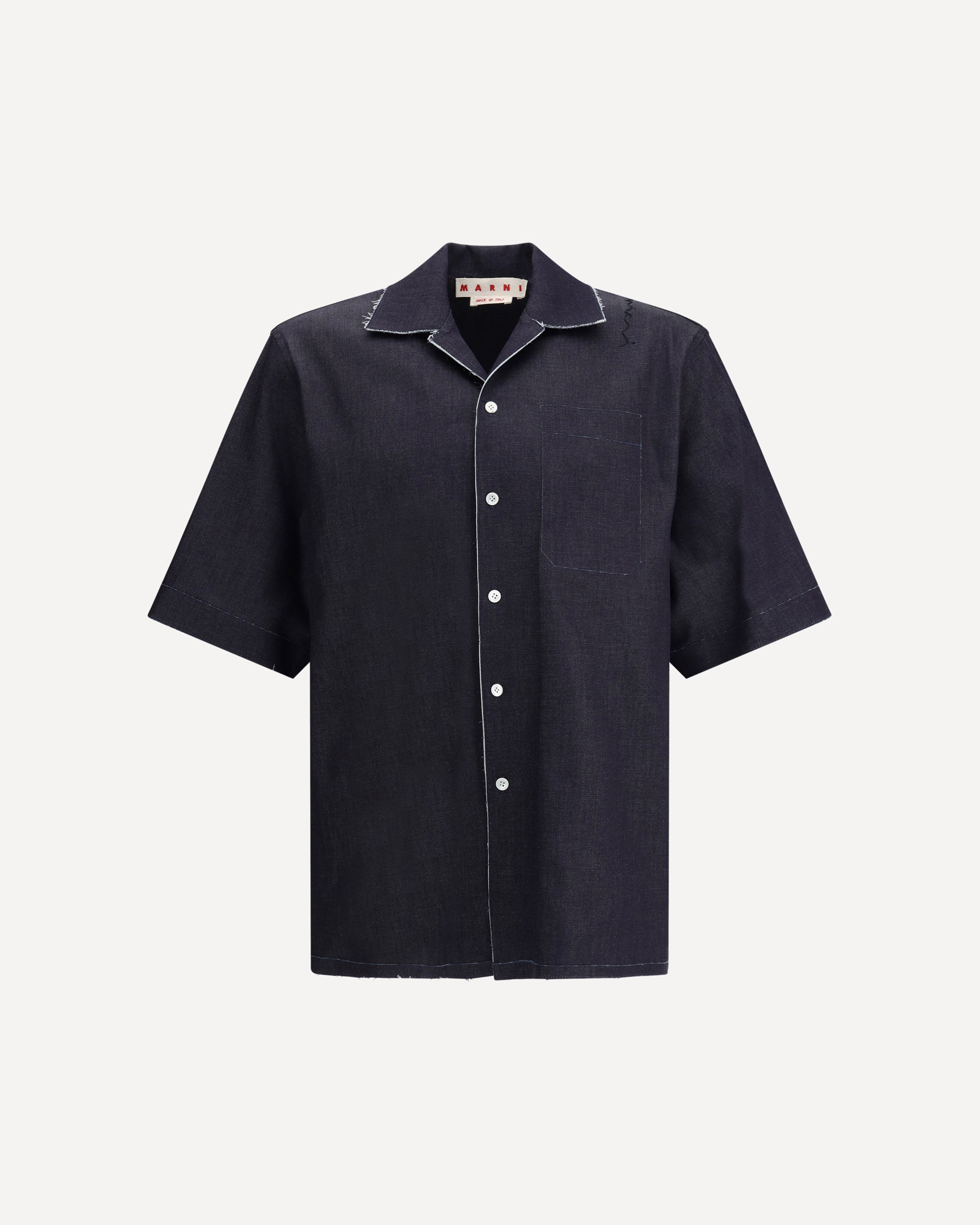 La Camicia in cotone di Marni presenta un design in denim che unisce semplicità e originalità. Il modello a maniche corte con colletto alla cubana e orlo sfrangiato dona un tocco casual e moderno. La chiusura frontale con bottoni completa il look, conferendo versatilità e stile al capo.