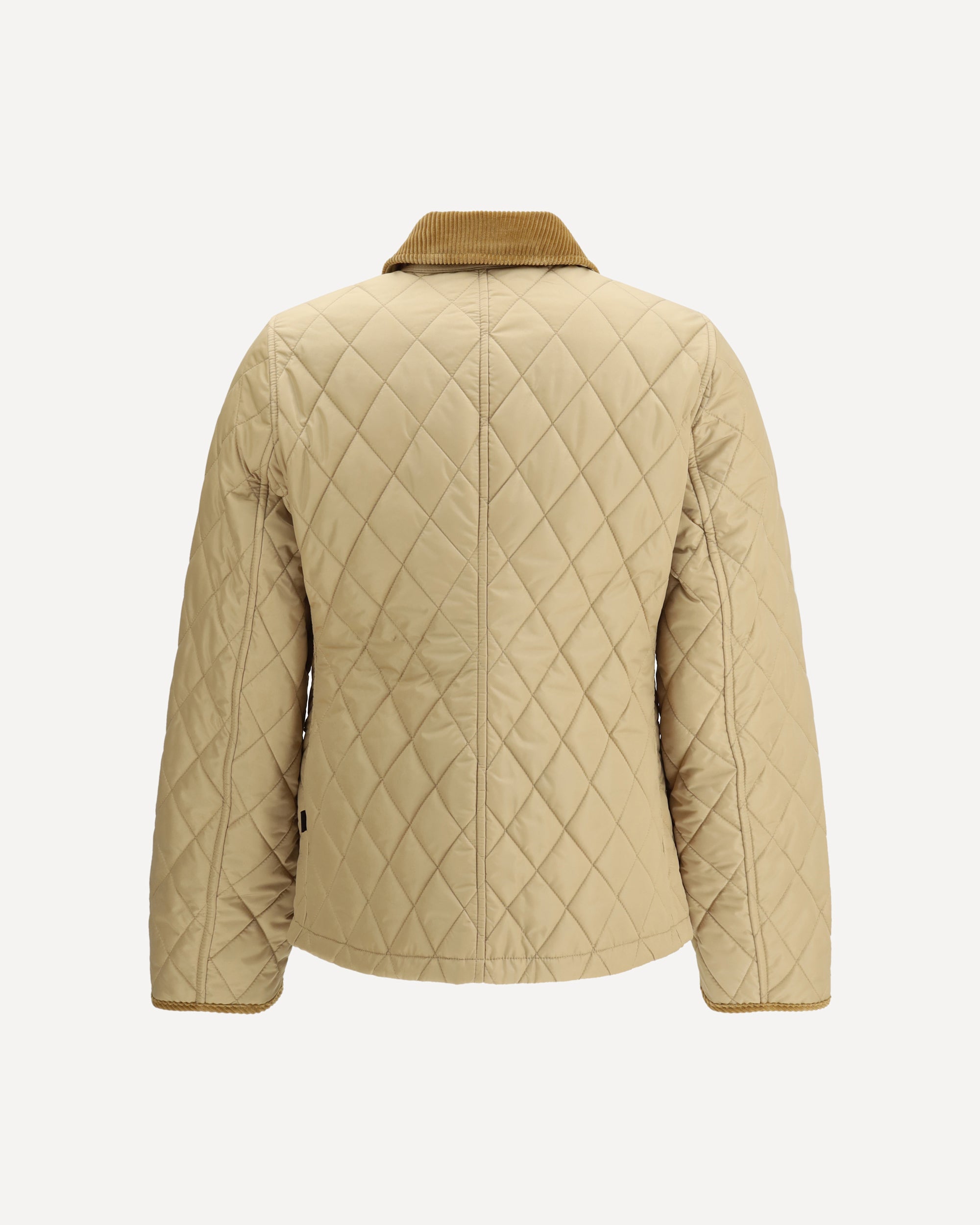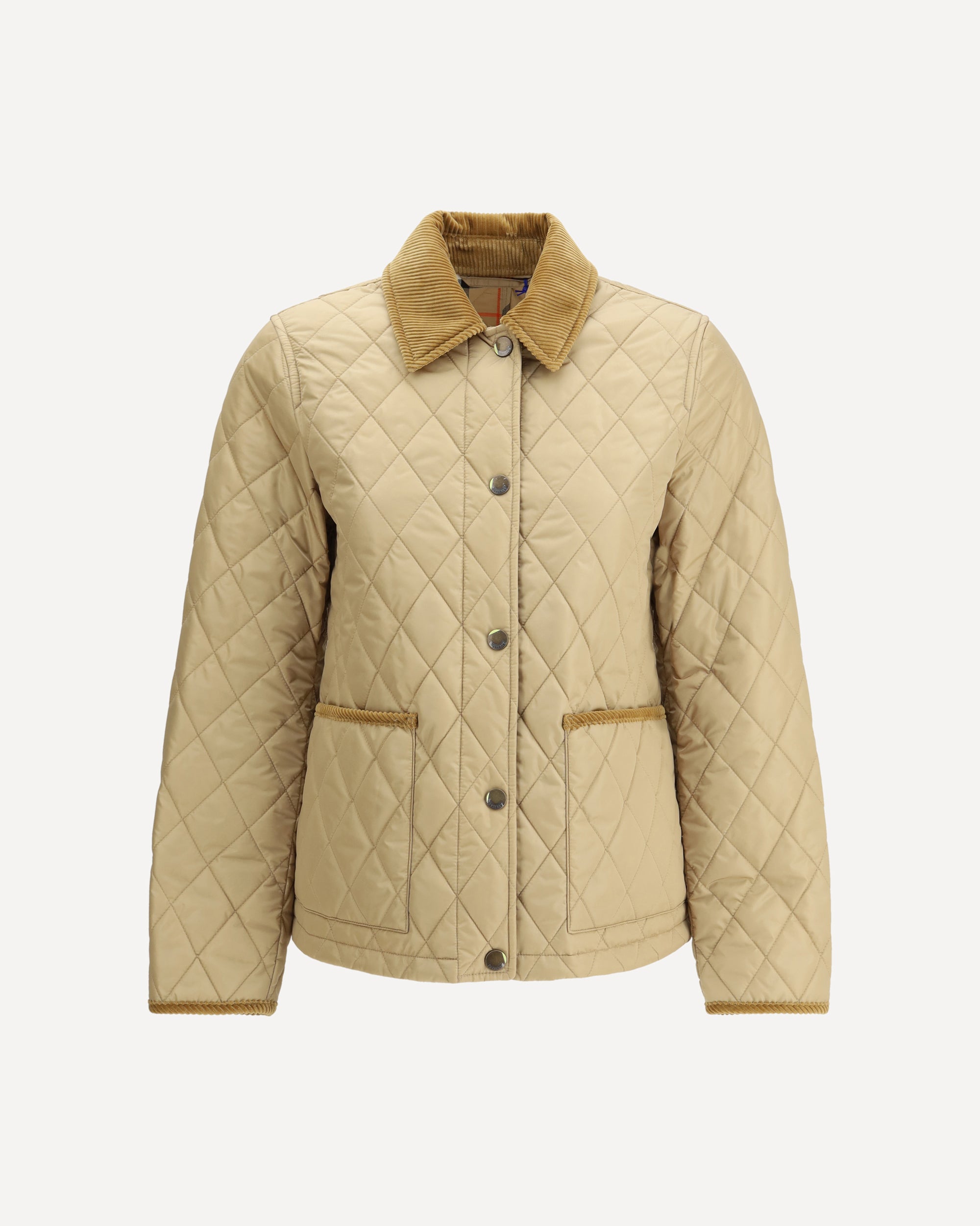 La Giacca trapuntata di Burberry è realizzata in nylon leggero con interno in twill di cotone decorato dal classico motivo Burberry Check in color sabbia. Il modello ha una vestibilità slim e presenta collo e finiture in corduroy tono su tono, per un look raffinato e discreto. Completano il design la chiusura con bottoni a pressione e le tasche laterali applicate, che uniscono praticità e stile in perfetto equilibrio.