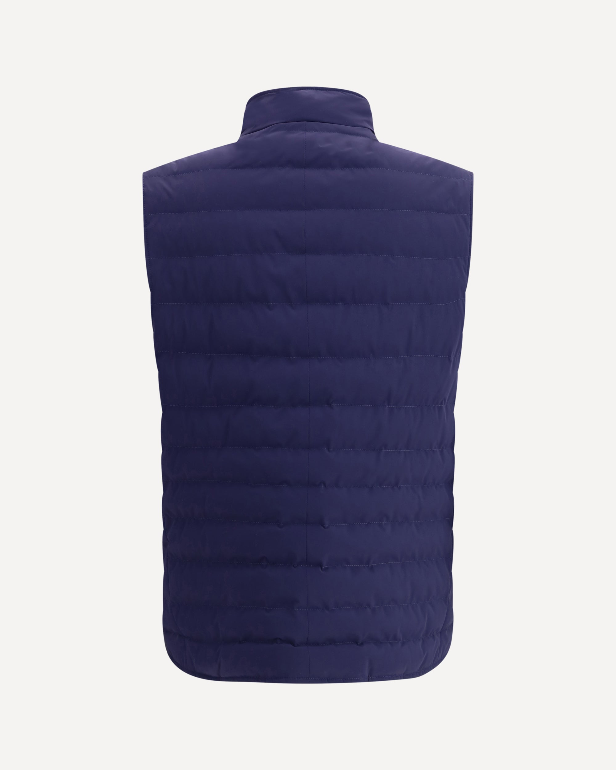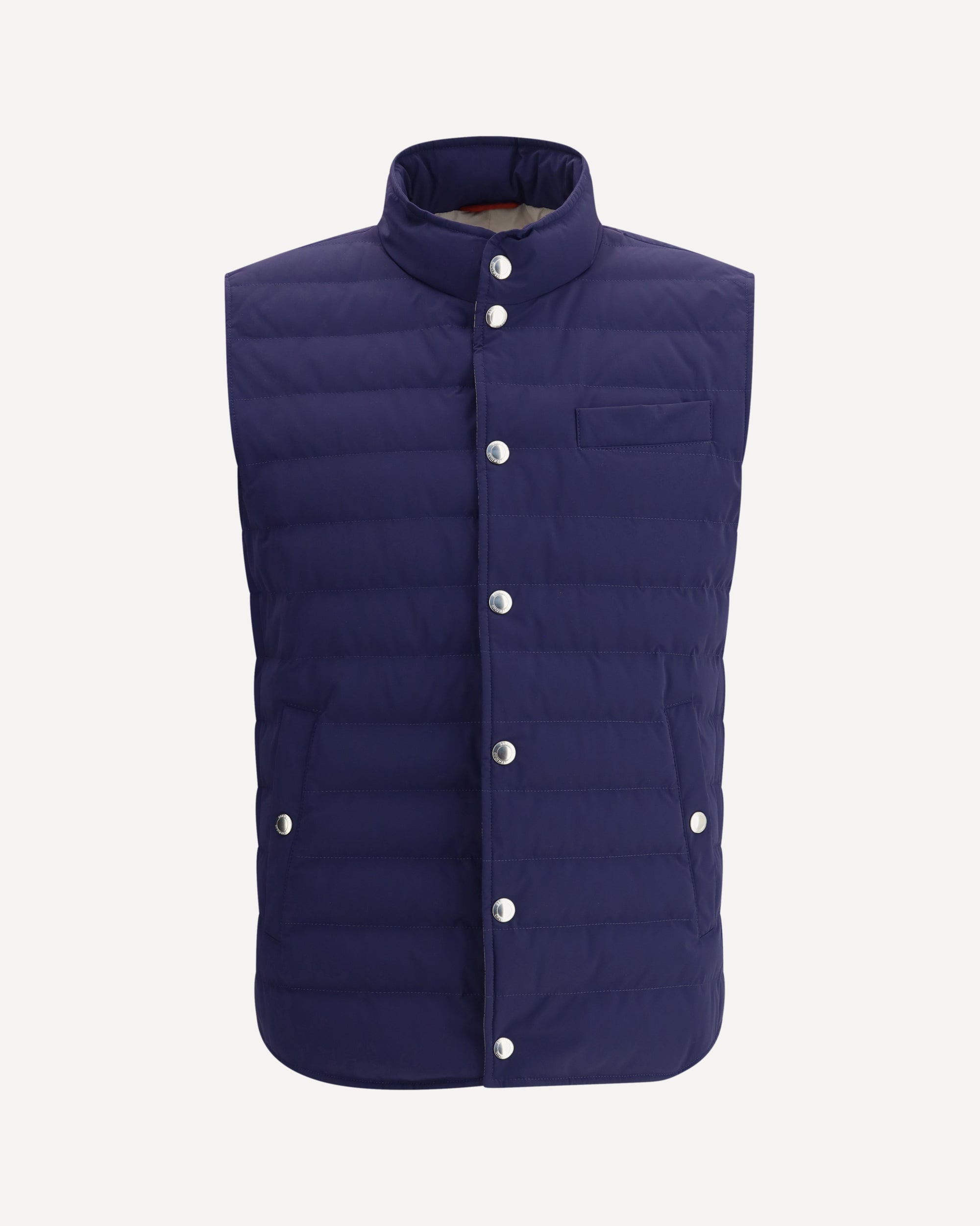 Il Gilet piumino di Brunello Cucinelli è un capo raffinato e pratico, caratterizzato da un collo alto che offre protezione e calore. La chiusura frontale con bottoni a pressione assicura una vestibilità sicura e comoda. Le due tasche a filetto laterali con bottone e il taschino a filetto frontale aggiungono dettagli funzionali e stilosi. La fantasia monocromo dona un aspetto elegante e versatile, mentre il design trapuntato e l'imbottitura all-over garantiscono calore e comfort. Un gilet ideale per un look sofisticato, ma anche funzionale per le giornate più fredde.