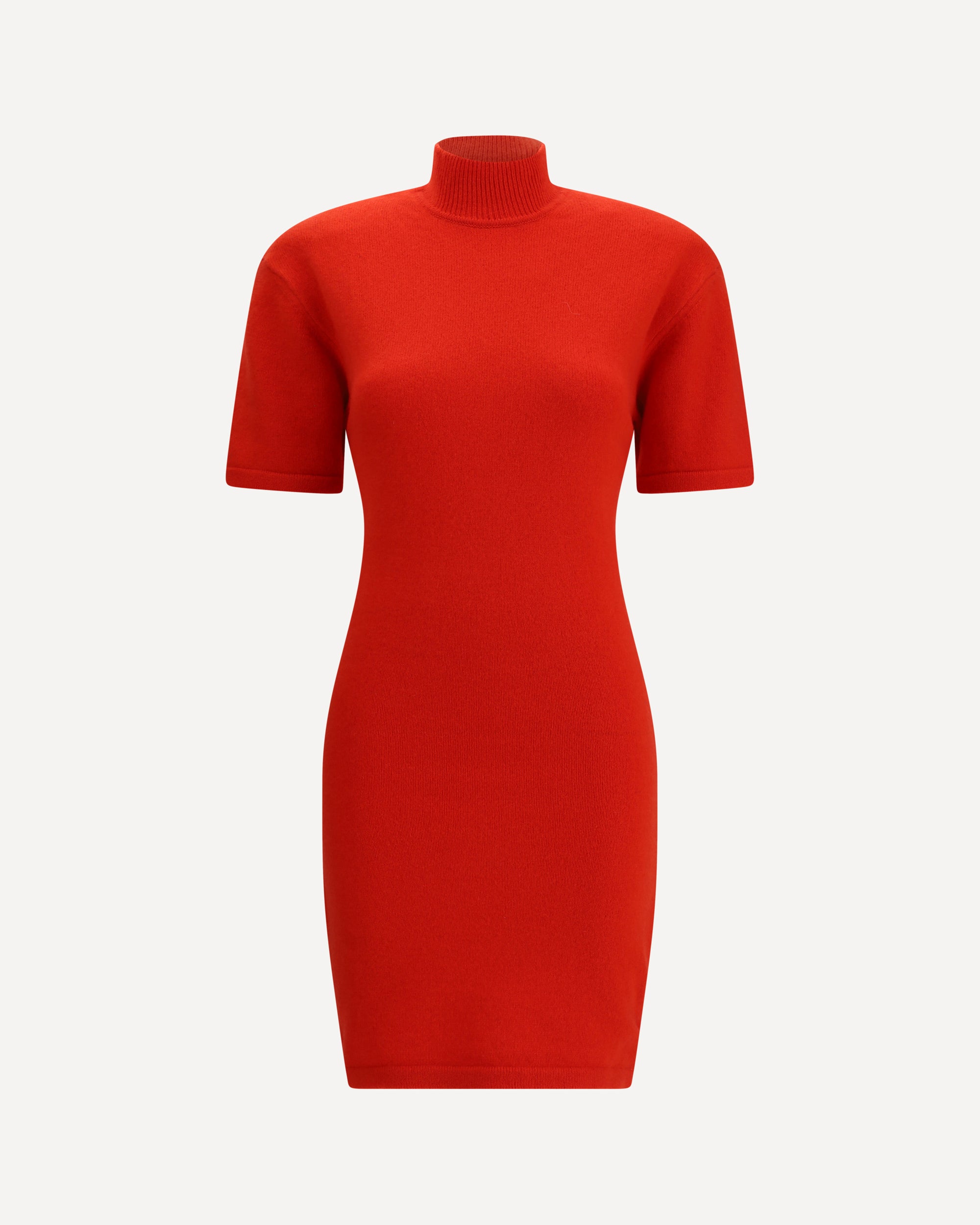 L’abito di Jaquemus in Maglia presenta spalle strutturate, collo alto e maniche corte. Con un design aderente, unisce eleganza e carattere contemporaneo, perfetto per un look deciso e raffinato