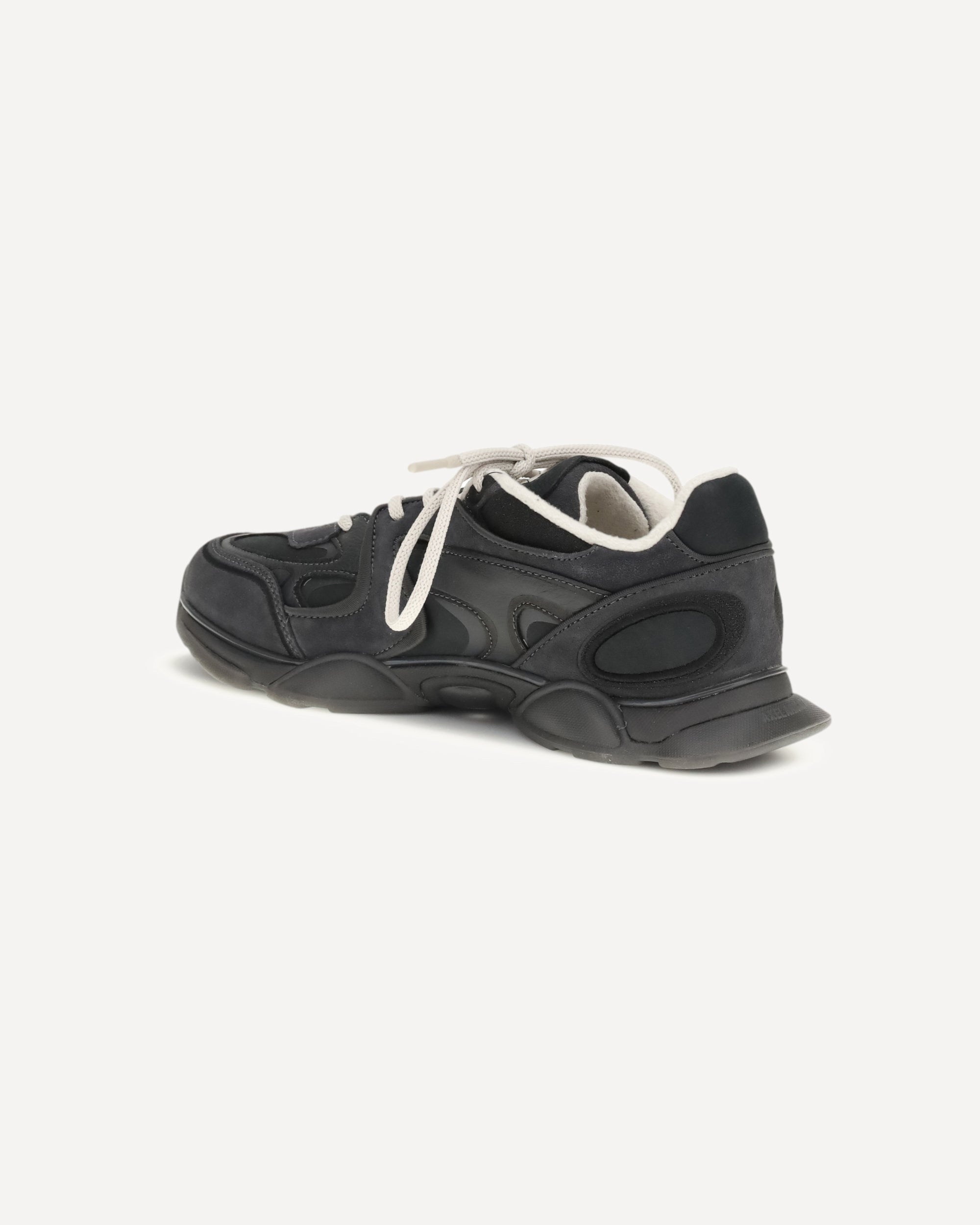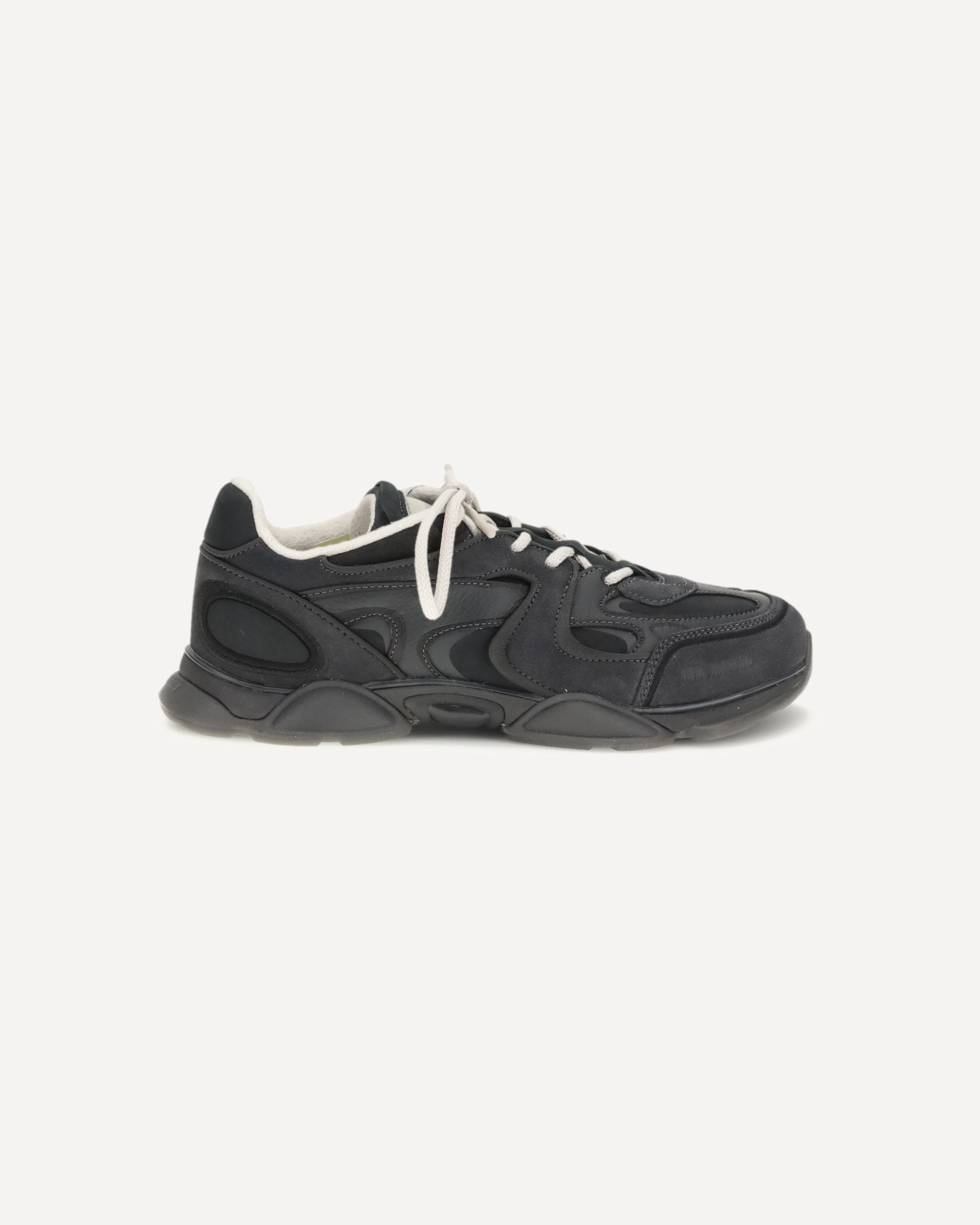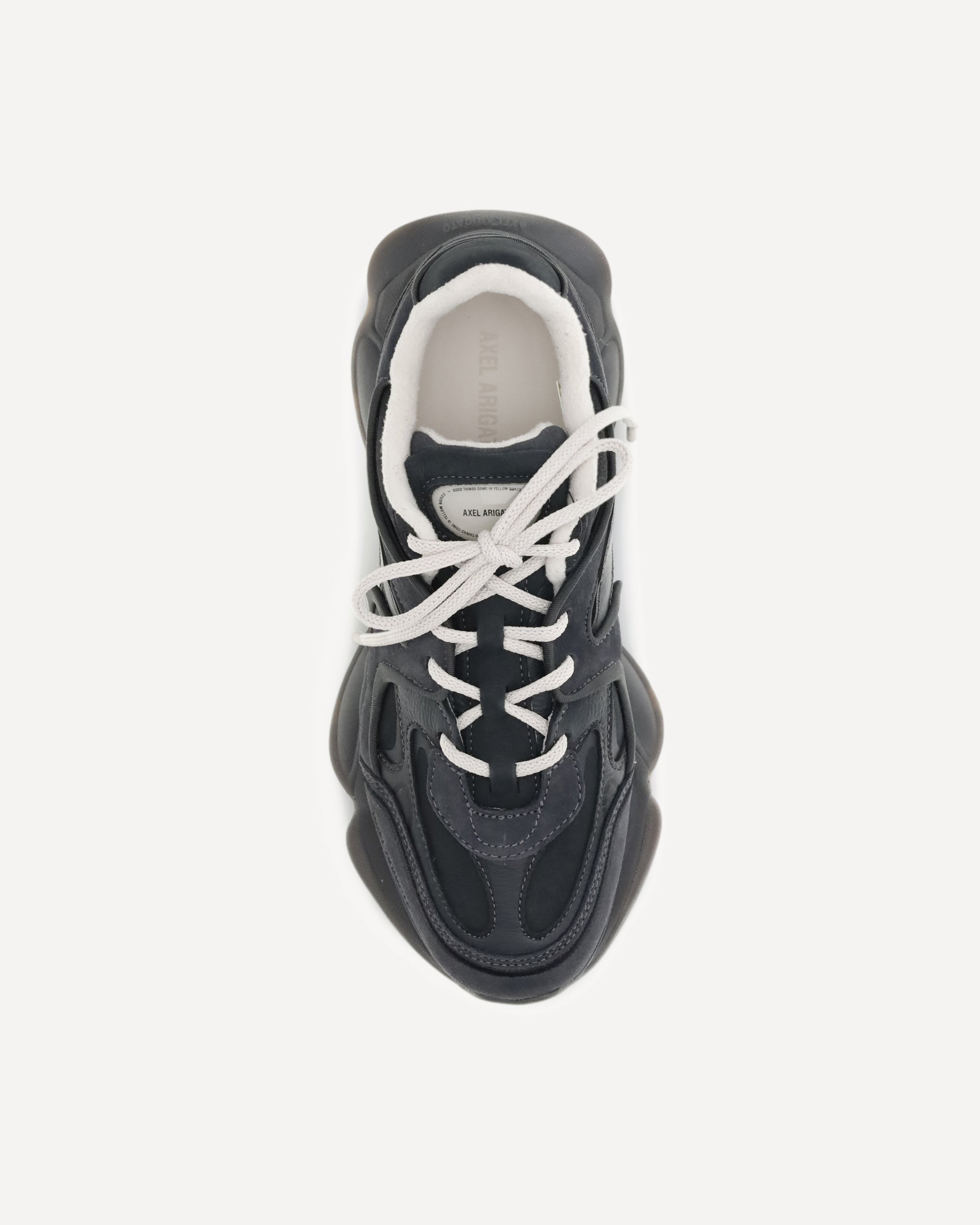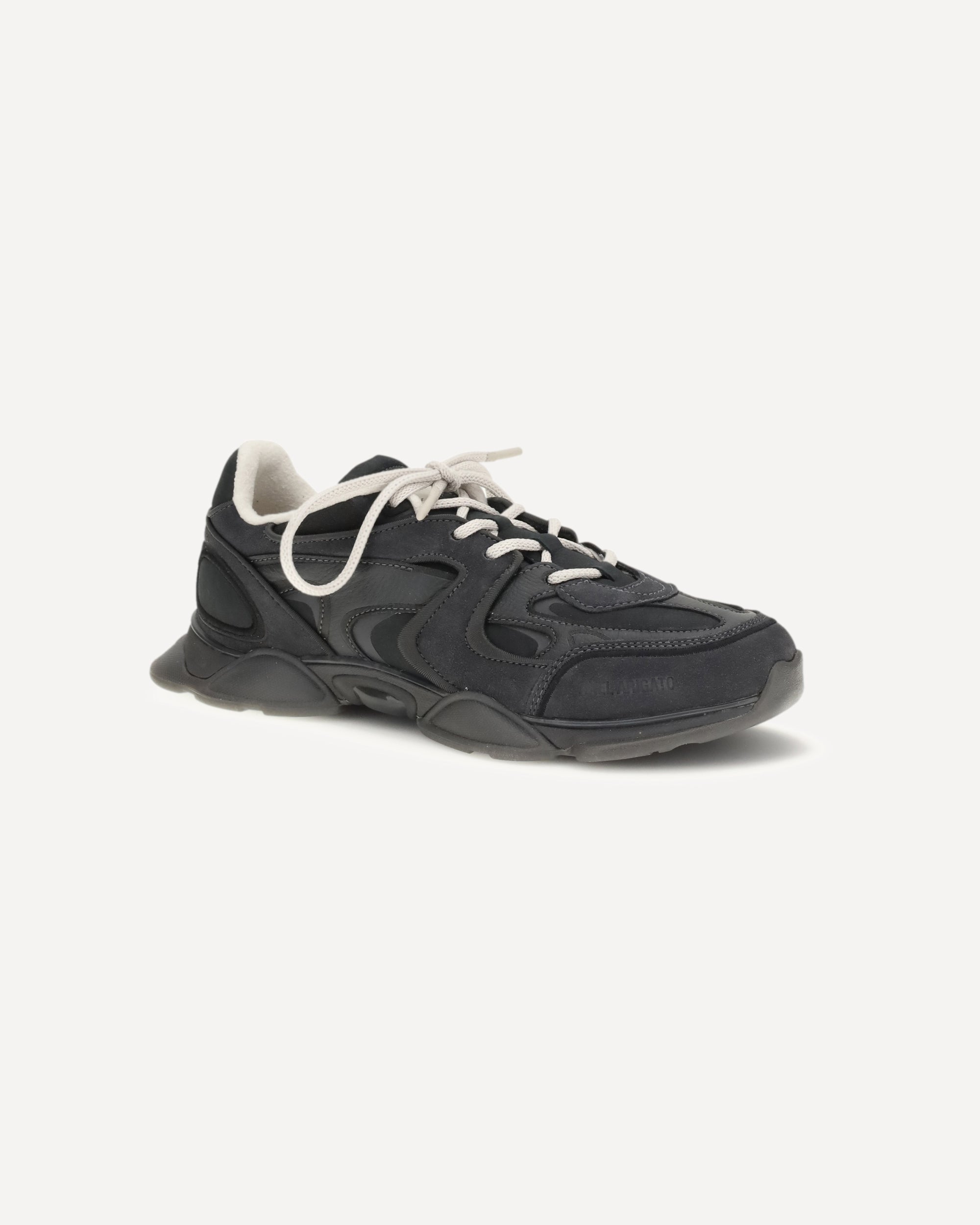 Le Sneakers Eris di Axel Arigato presentano una suola sovradimensionata che si estende oltre il profilo della tomaia a basso profilo, creando un look deciso e contemporaneo. L’esterno combina pelle e suede intrecciati in modo complesso, dando vita a una distintiva finitura a pannelli, mentre un bordo testurizzato effetto carta vetrata sotto la fodera interna aggiunge un tocco tecnico e ricercato. Completamente immerse in un’unica tonalità e rifinite a mano con un effetto vissuto, ogni paio risulta unico, rendendo queste sneakers un modello esclusivo e dall’estetica artigianale.