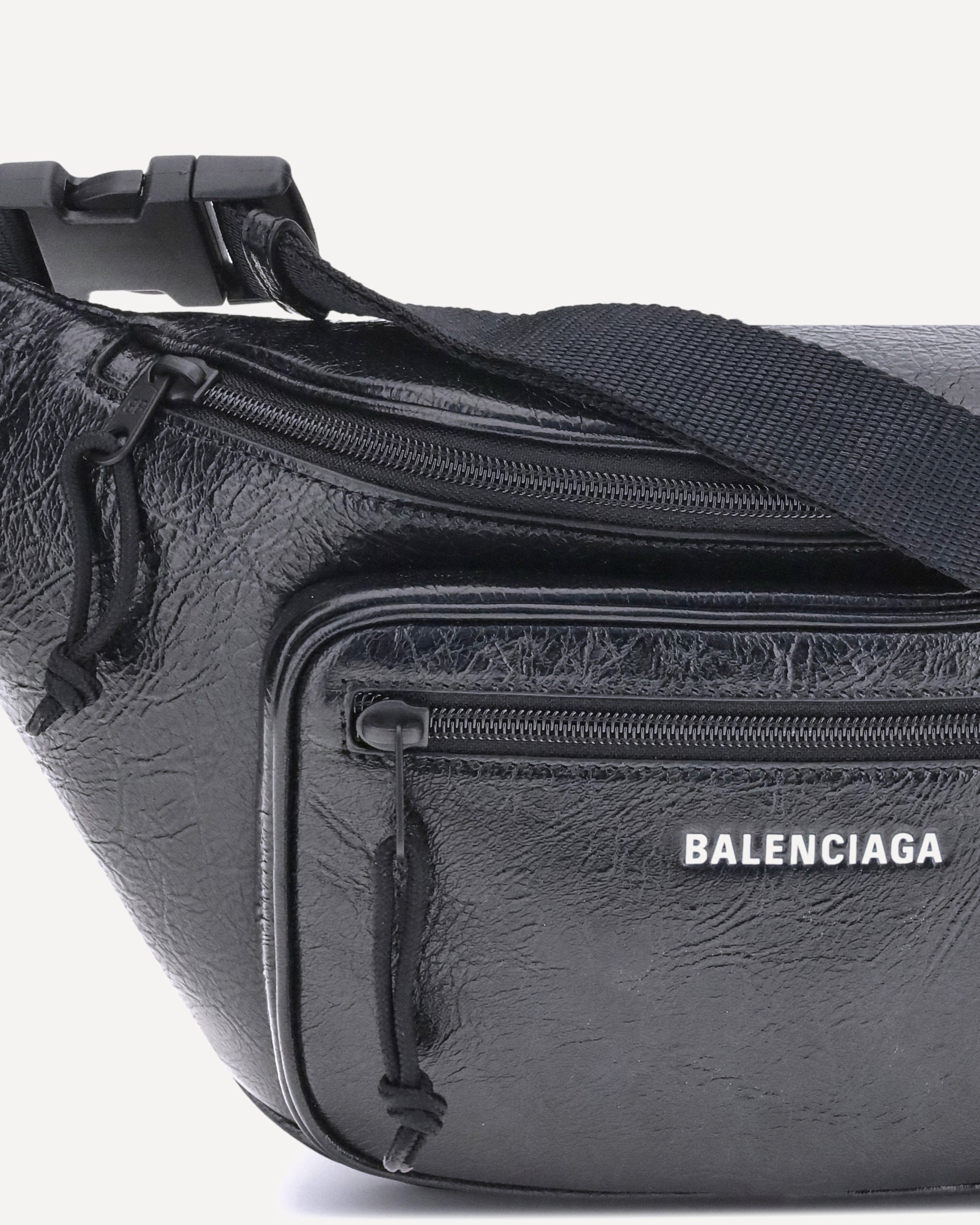 Marsupio Explorer di Balenciaga, è un accessorio pratico e alla moda, perfetto per un look streetwear. La chiusura con zip garantisce sicurezza, mentre la tasca sul fronte con il logo a contrasto aggiunge un dettaglio distintivo e riconoscibile. La cintura regolabile con chiusura a scatto permette di adattare il marsupio alla tua vestibilità, per un comfort ottimale. All'interno, è presente uno scomparto con tasca, ideale per organizzare gli oggetti essenziali in modo sicuro.