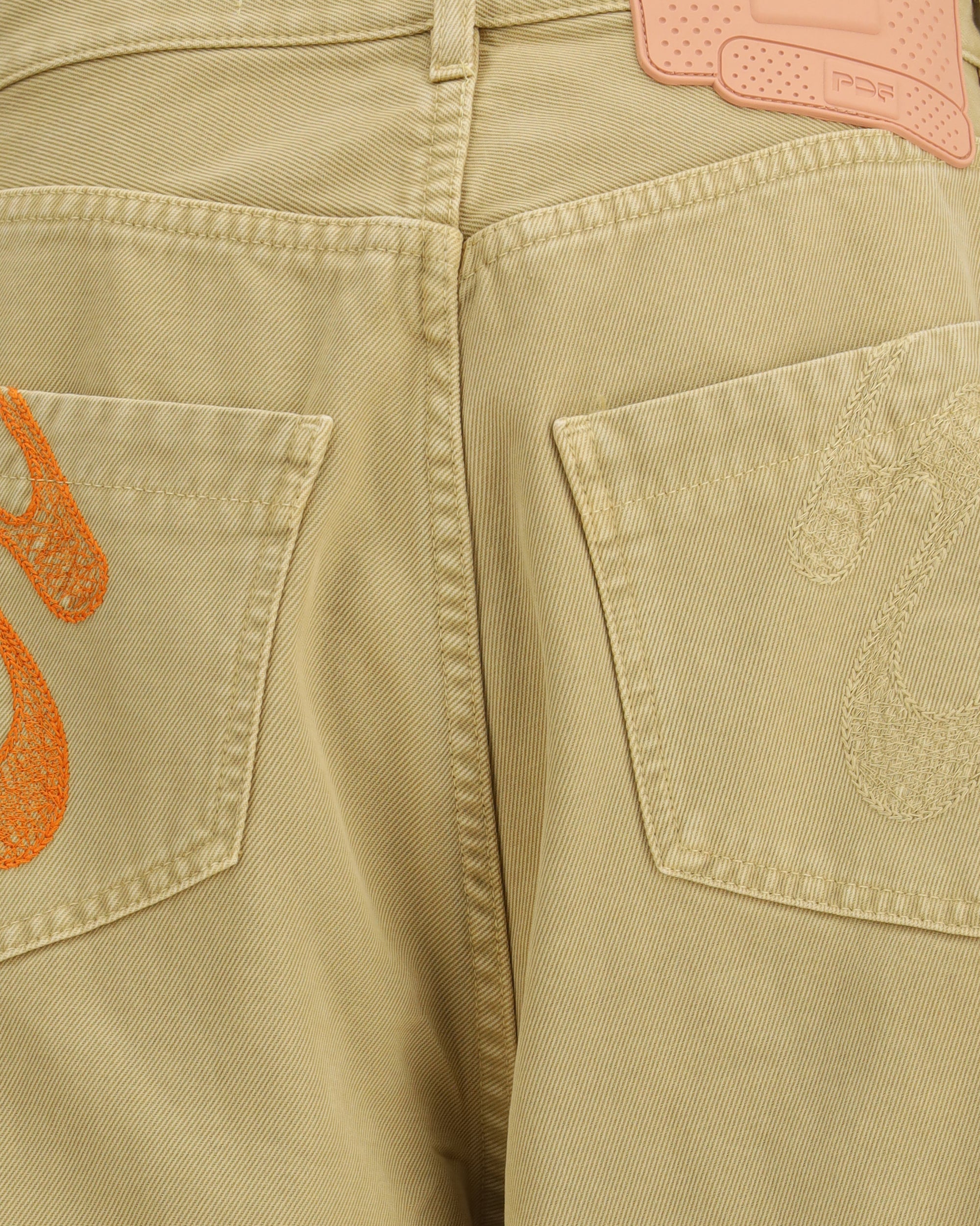 I Fat Angelo Jeans di PDF Channel rappresentano un capo essenziale e versatile dal carattere deciso. Realizzati in denim 100% cotone, uniscono resistenza e comfort quotidiano. Il design a cinque tasche esalta la funzionalità classica del jeans, mentre gli accessori metallici personalizzati aggiungono un dettaglio distintivo che firma lo stile del brand. Un modello senza tempo, perfetto per interpretare lo streetwear contemporaneo con autenticità e personalità.