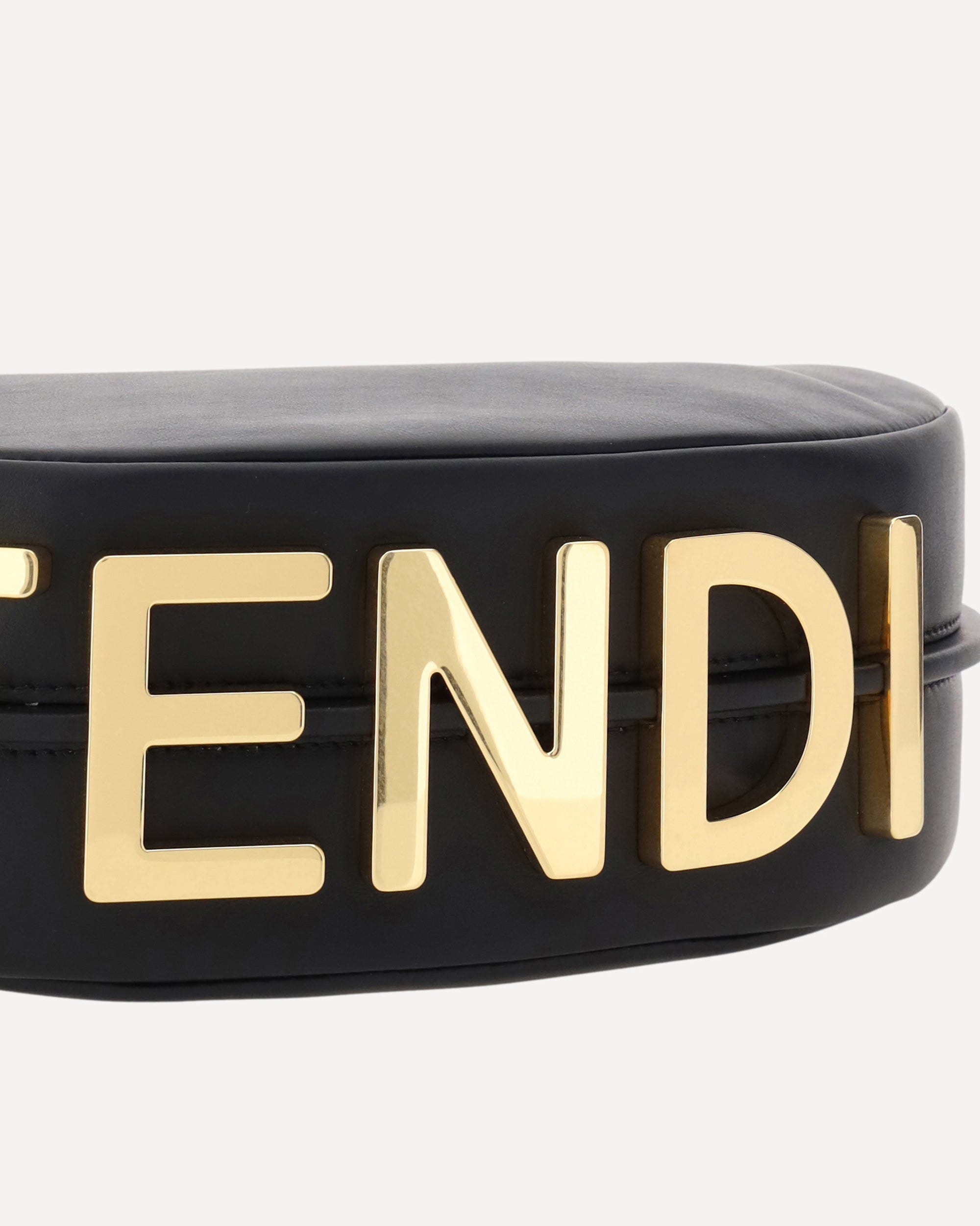 La Borsa a Spalla Fendigraphy in pelle di Fendi è caratterizzata da un design in pelle liscia e una chiusura superiore con cerniera. Presenta un unico manico regolabile e l’iconica firma del brand in ottone anticato, applicata in rilievo sulla base, per un tocco elegante e riconoscibile.