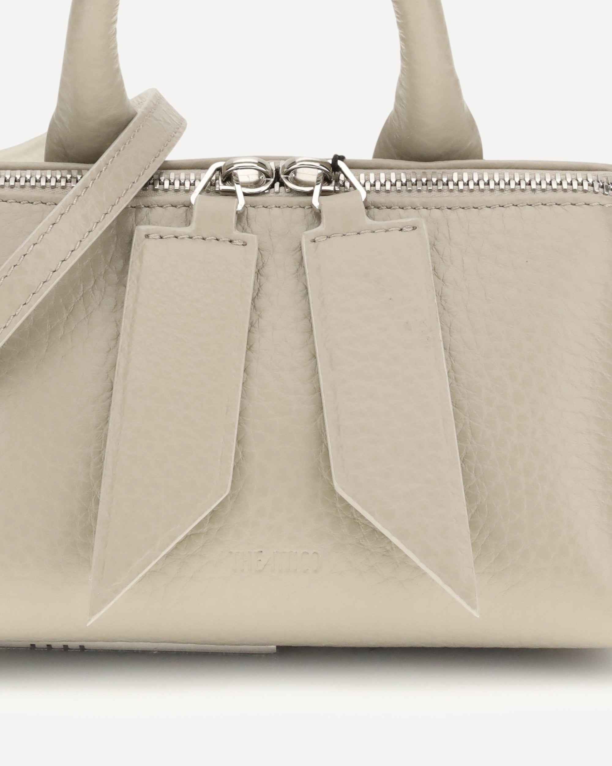 Borsa a Mano Friday in Pelle di The Attico, design geometrico, chiusura superiore a giro mediante cerniera a doppio cursore, manico rotondo rigido, piedini metallici alla base della borsa a forma di iconico logo del brand, scomparto unico interno, iconica firma brand stampata a pressione sul fronte.