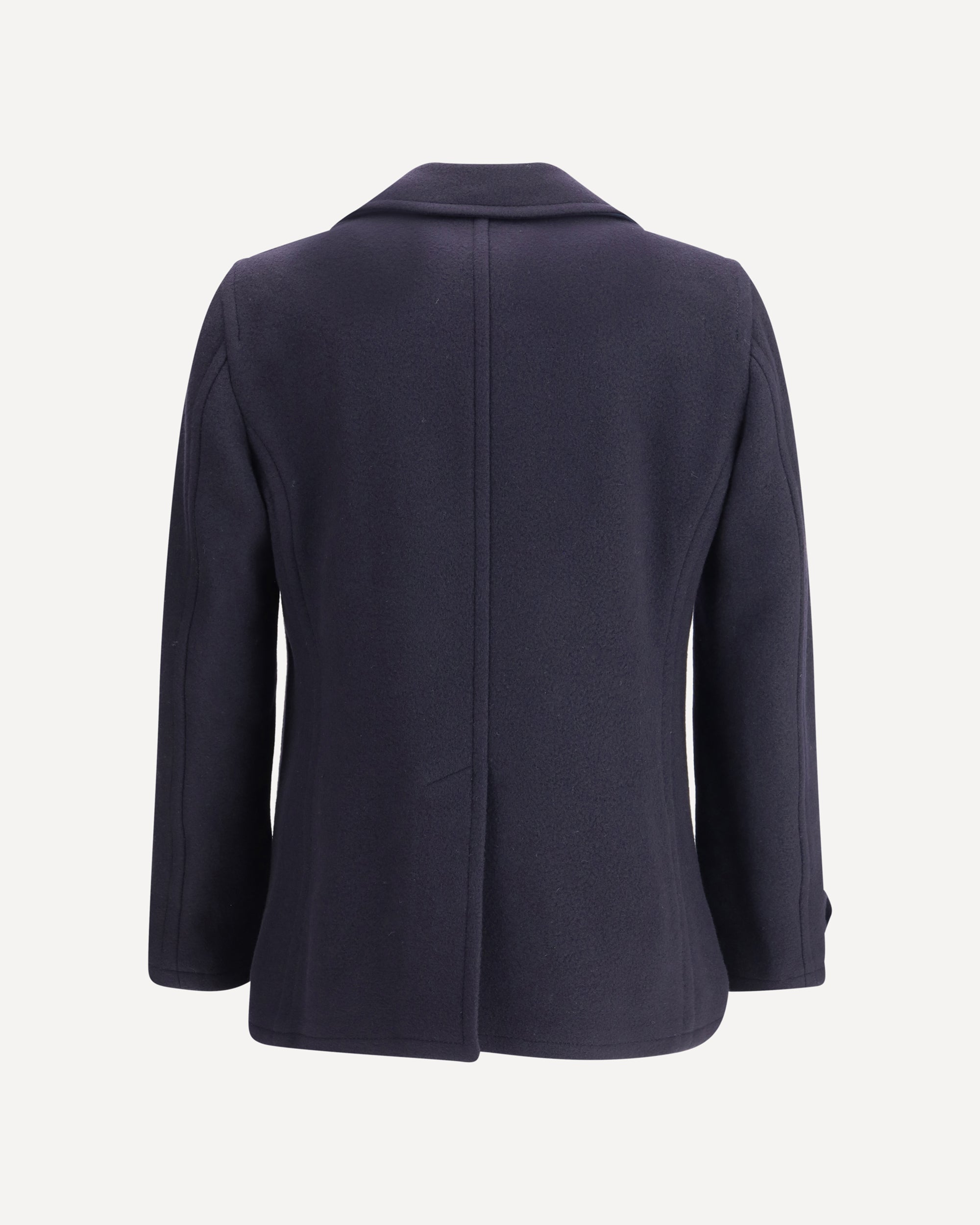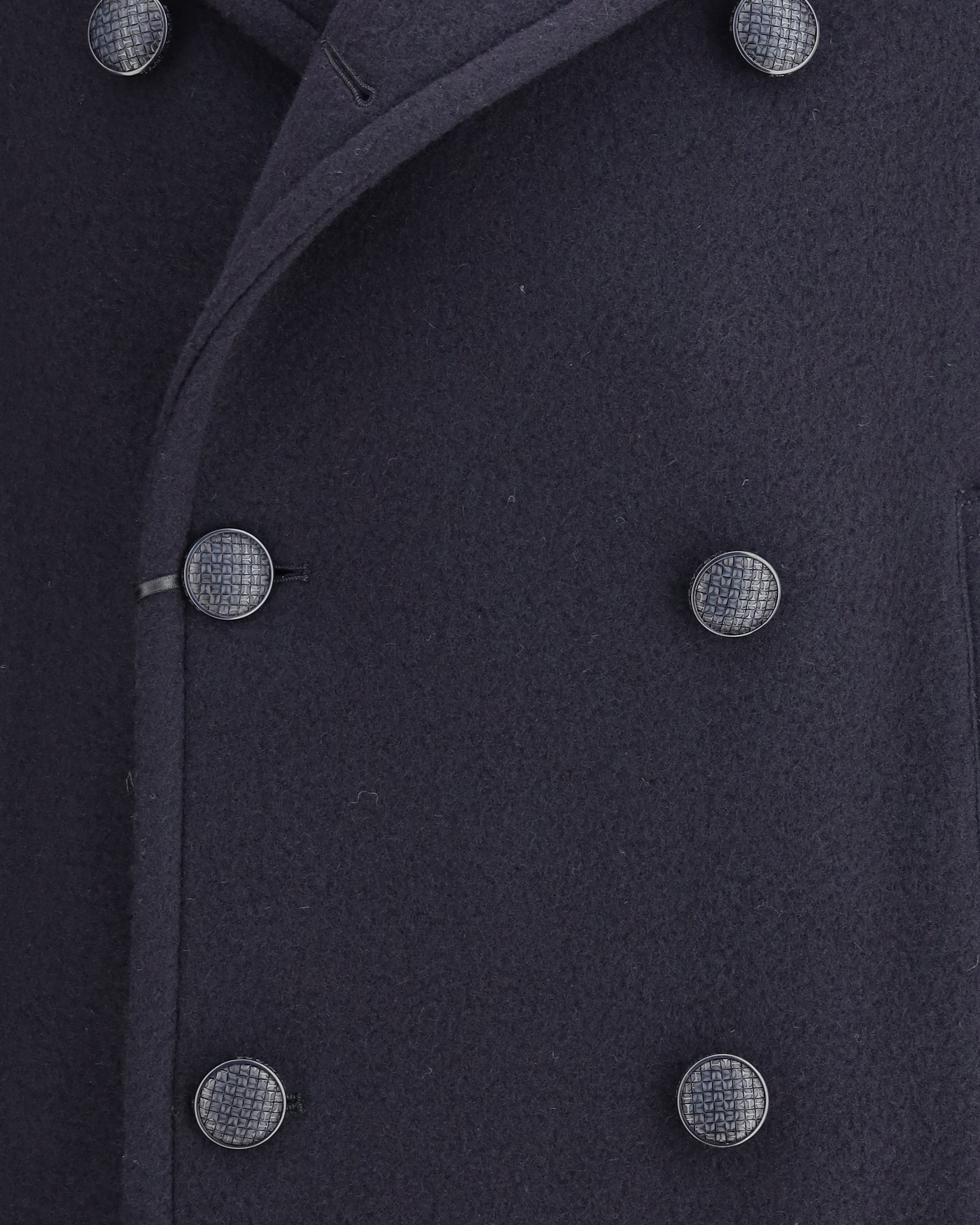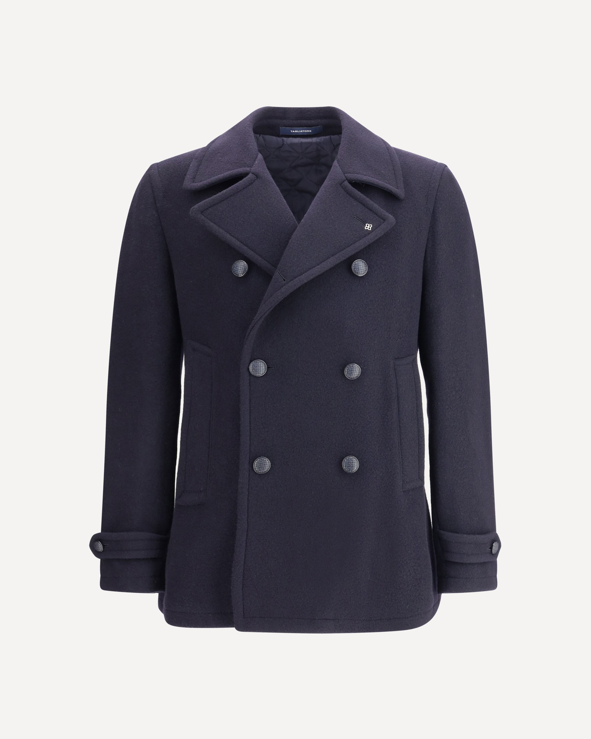 Il Cappotto Caban in lana di Tagliatore unisce tradizione e stile contemporaneo. Caratterizzato da una chiusura frontale doppiopetto con bottoni, presenta un ampio revers con iconica pince applicata, due tasche frontali a filetto e uno spacco sul retro, per un equilibrio perfetto tra eleganza e funzionalità.