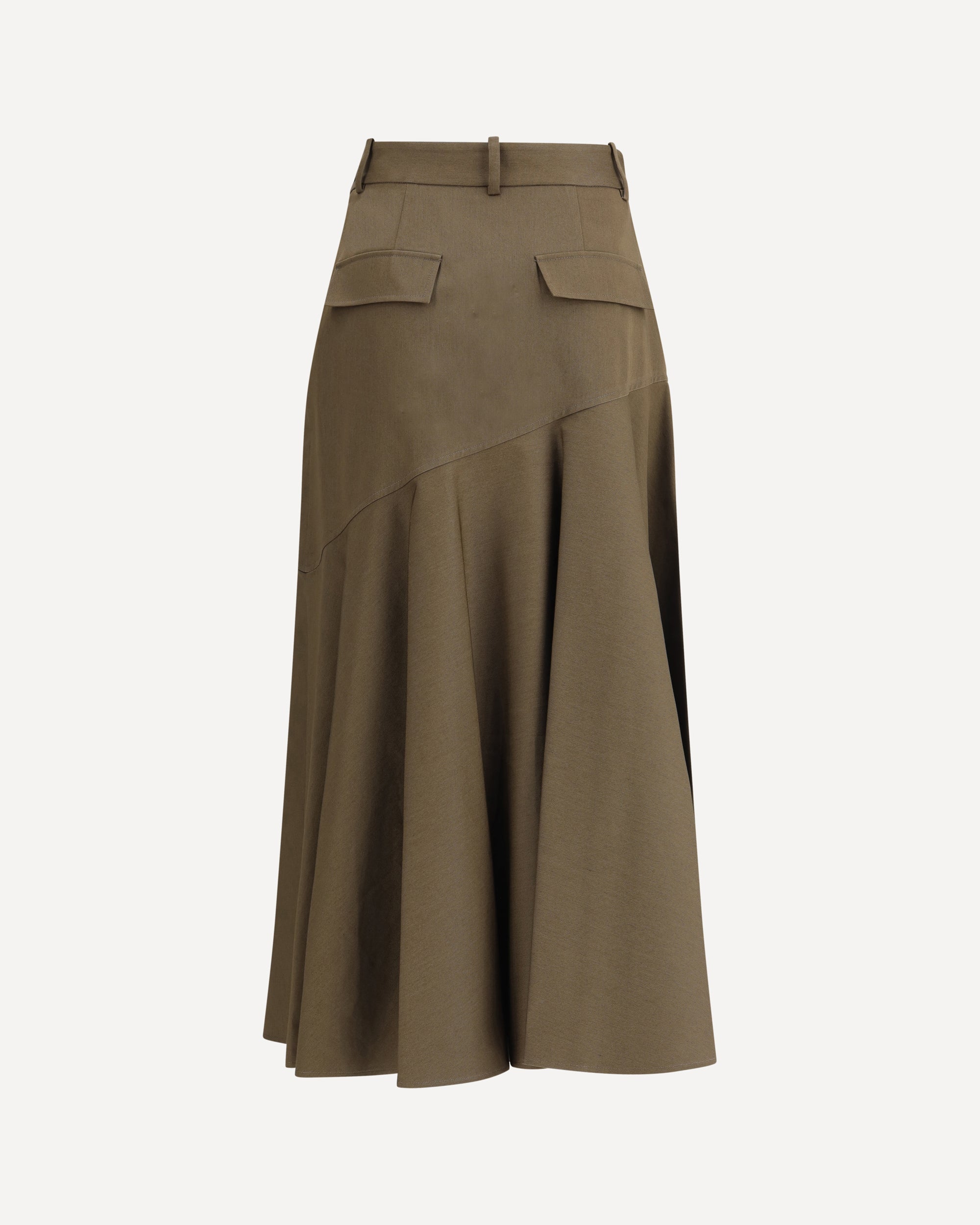 La Gonna midi di P.A.R.O.S.H. unisce linee essenziali e dettagli funzionali in un design raffinato. Dotata di passanti per cintura in vita e bottoni laterali, presenta una linea dritta che si apre leggermente sul fondo. Completano il capo due tasche con patta sul retro, per un tocco pratico e contemporaneo.