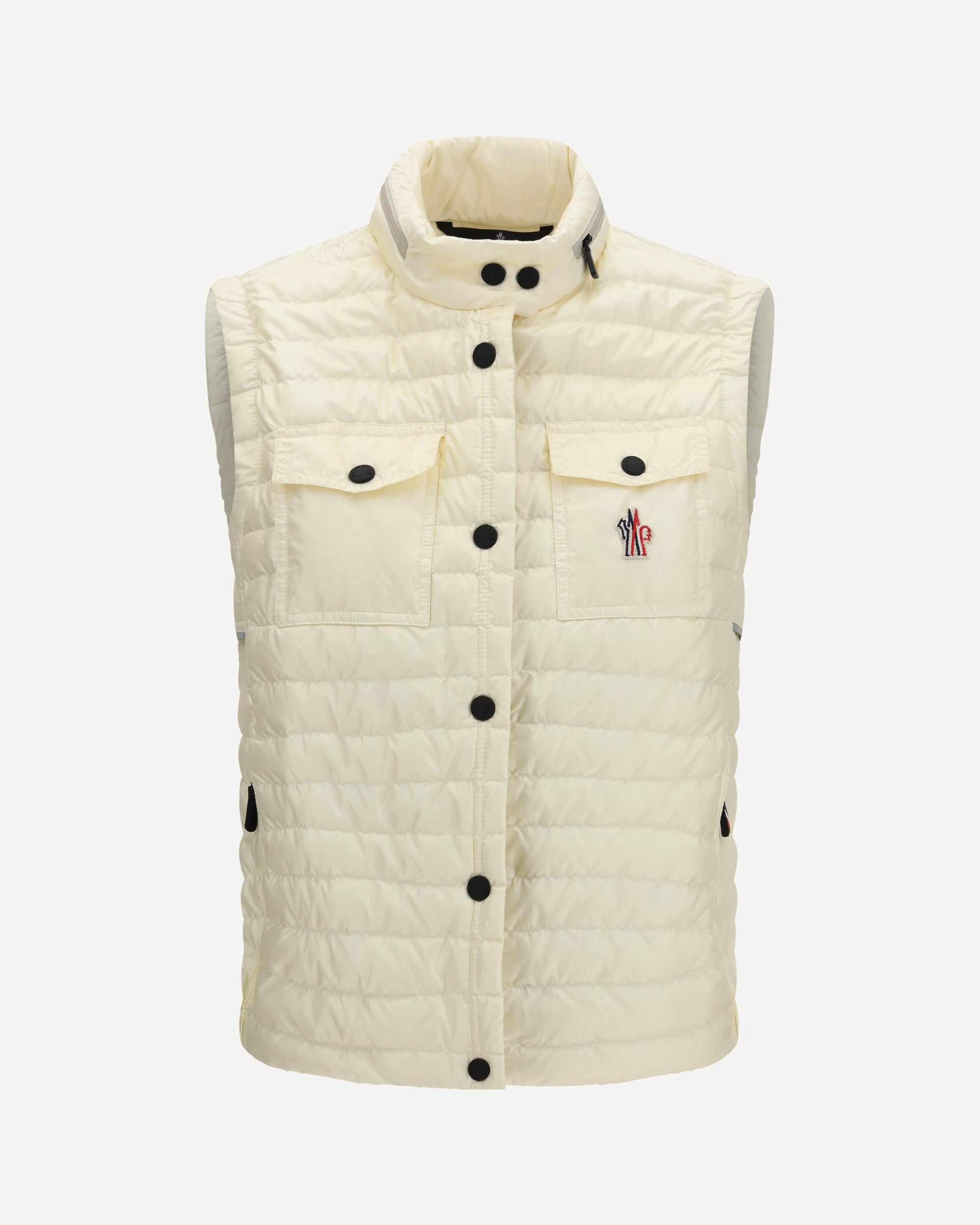 Il Gilet Gumiane di Moncler Grenoble combina funzionalità tecnica e design contemporaneo. La chiusura frontale con bottoni a pressione garantisce praticità, mentre le due tasche con patta sul petto e le tasche laterali con zip offrono spazio e sicurezza. L’applicazione con logo sul petto firma il capo con un dettaglio distintivo, rendendolo ideale per uno stile dinamico e performante.