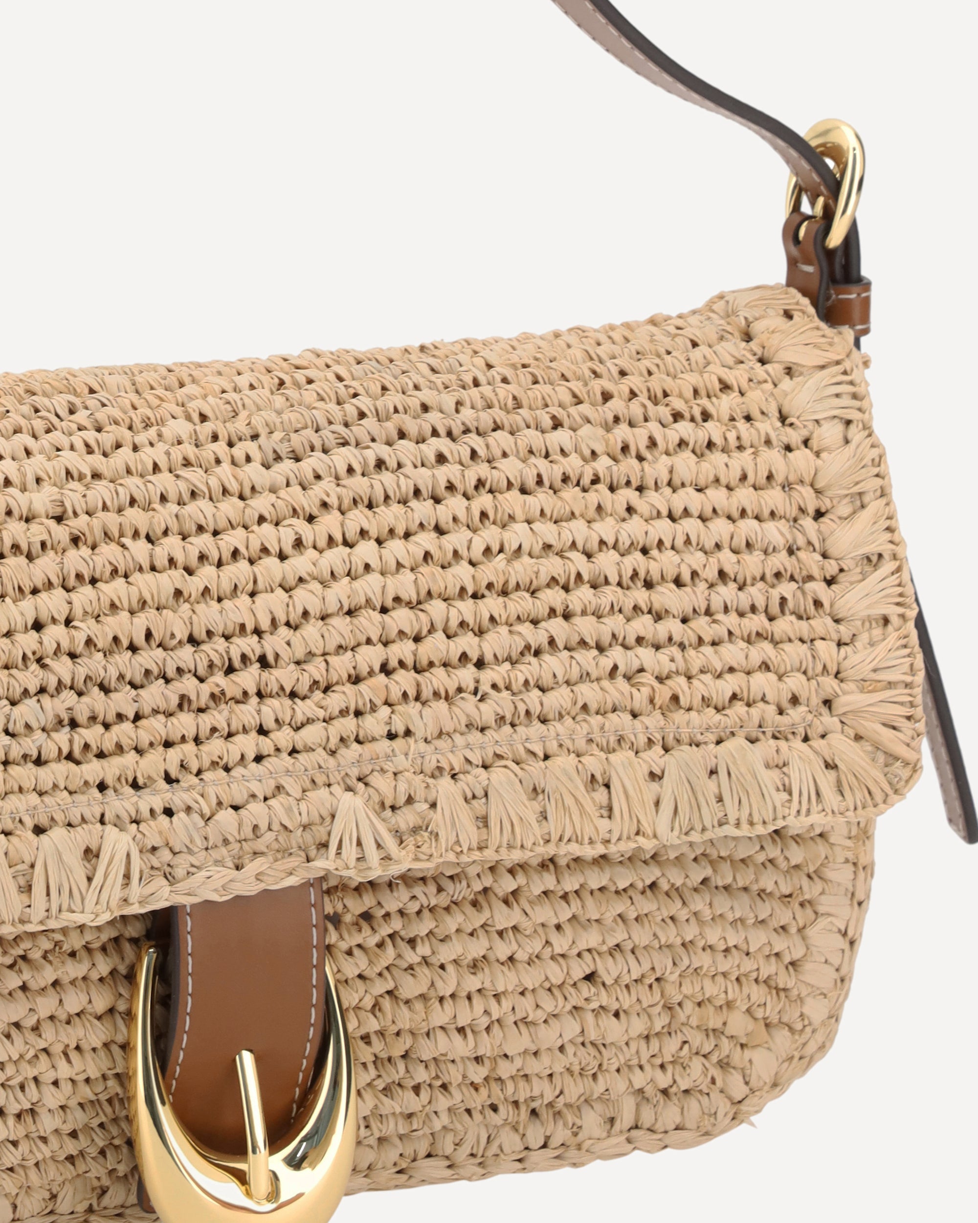 La Borsa a Spalla Harlow di Staud è realizzata in rafia, un materiale naturale che dona un tocco estivo e raffinato. Dotata di una tracolla piatta superiore regolabile, offre comfort e versatilità. La chiusura magnetica con patta frontale e fibbia applicata aggiunge un dettaglio elegante e funzionale. L'interno, con un unico scomparto, è ideale per mantenere ordine e praticità. Un design fresco e chic, perfetto per ogni occasione casual o più elegante.