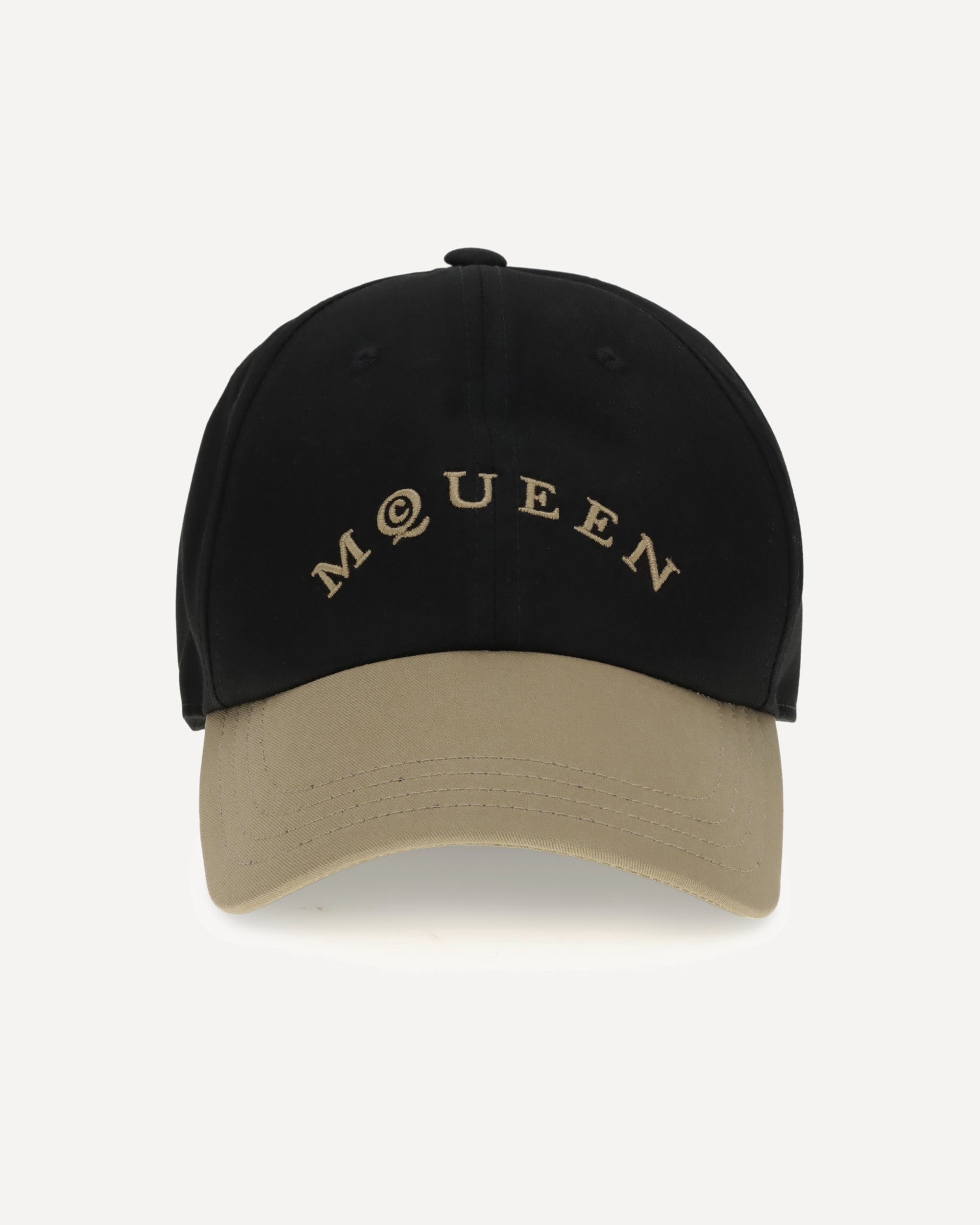 Il Cappello da Baseball di McQueen è realizzato in cotone nero e presenta il logo ricamato beige sul davanti così come la visiera. Sul retro, la chiusura regolabile in pelle garantisce una vestibilità personalizzabile.