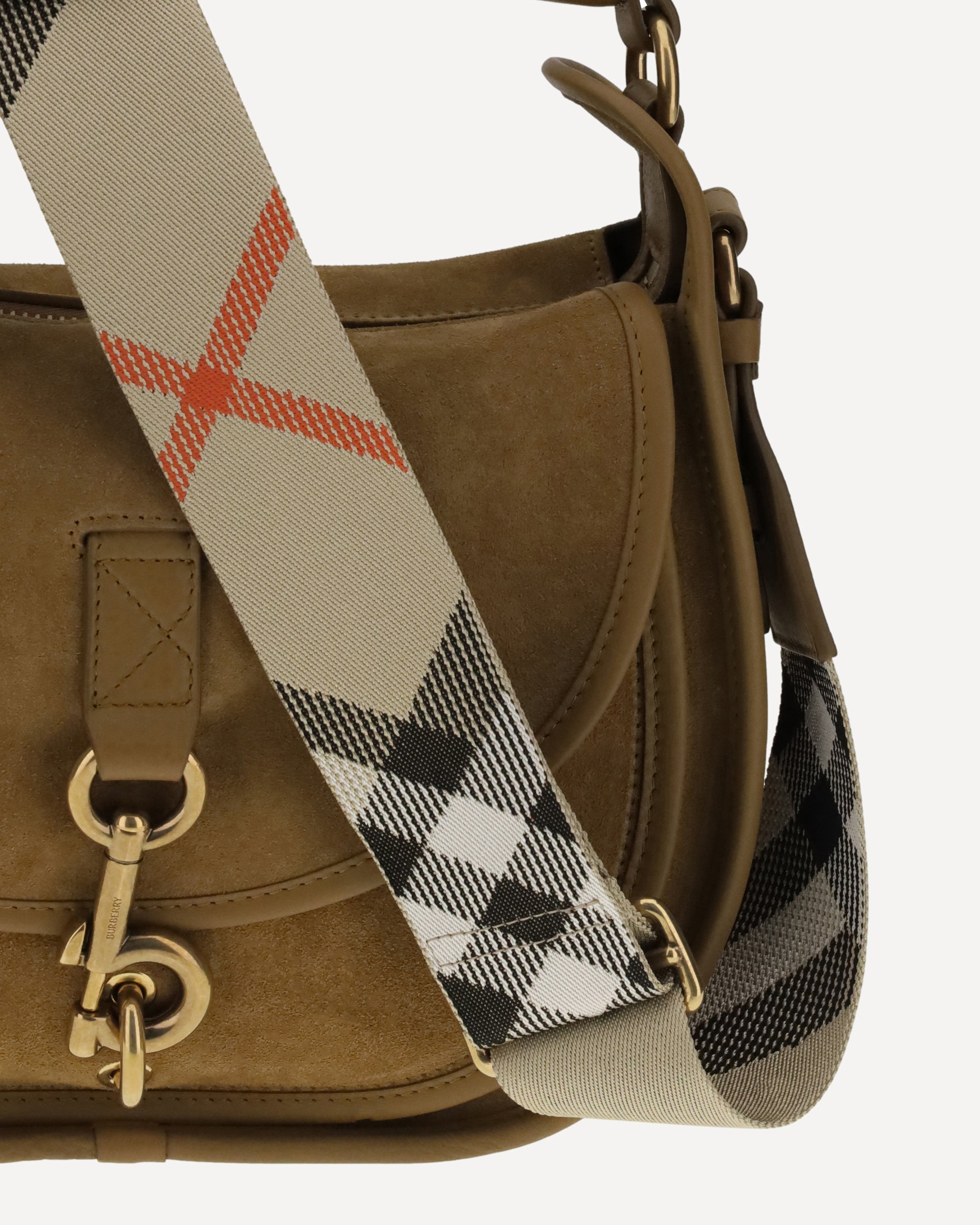 La Borsa a Tracolla B Clip di Burberry unisce funzionalità e stile in un design contemporaneo. Dotata di un manico superiore in pelle e di una tracolla in nastro regolabile con l’iconica fantasia Archivio Check impressa, si distingue per la sua eleganza discreta. La chiusura con cerniera protegge il comparto principale, mentre una pratica tasca esterna con fermaglio a forma di B aggiunge un tocco distintivo. I bordi dipinti a mano e gli elementi in metallo spazzolato completano con raffinatezza questa borsa dallo spirito urbano.