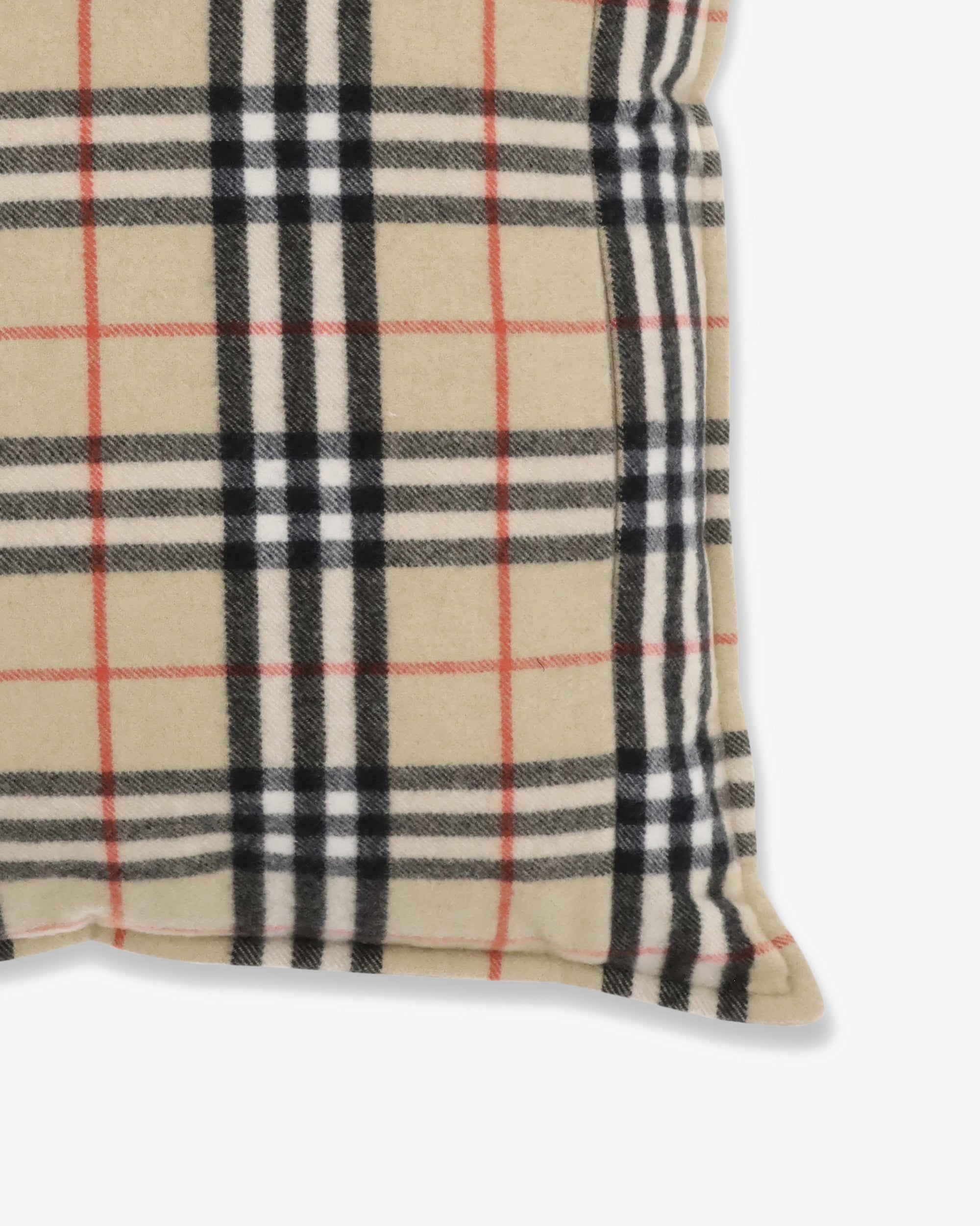 Il Cuscino in lana e cashmere con motivo Burberry Check è realizzato in un pregiato tessuto intrecciato in Scozia, in uno stabilimento storico fondato nel 1797. Il filato viene lavato in acque sorgive locali e sottoposto a ulteriori trattamenti per ottenere una finitura eccezionalmente morbida e confortevole. Un accessorio iconico che unisce tradizione artigianale e stile britannico contemporaneo.
