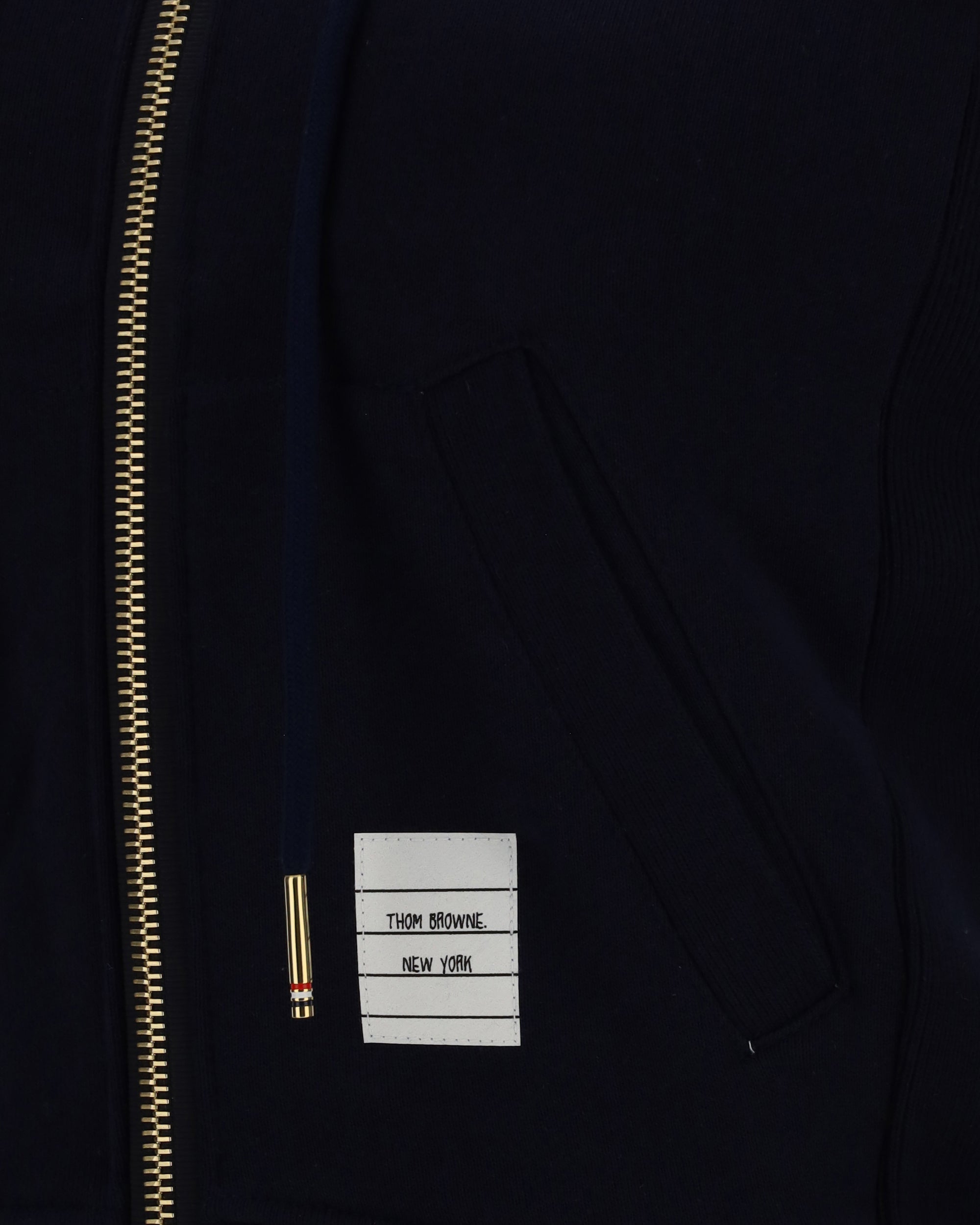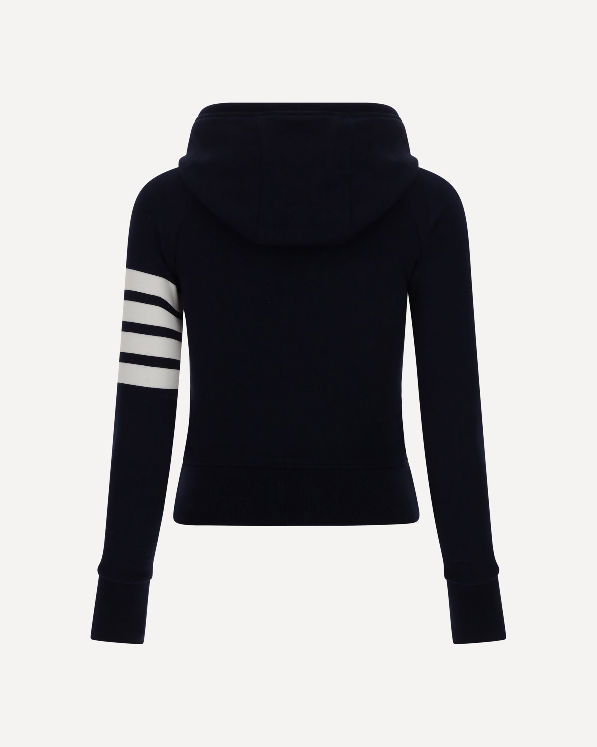 Felpa con Cappuccio in Cotone di Thom Browne, cappuccio a coulisse regolabile, tasca a canguro sul fronte, chiusura a zip, toppa con logo sul fronte, polsini e orlo a costine, banda con strisce sulla manica sinistra.