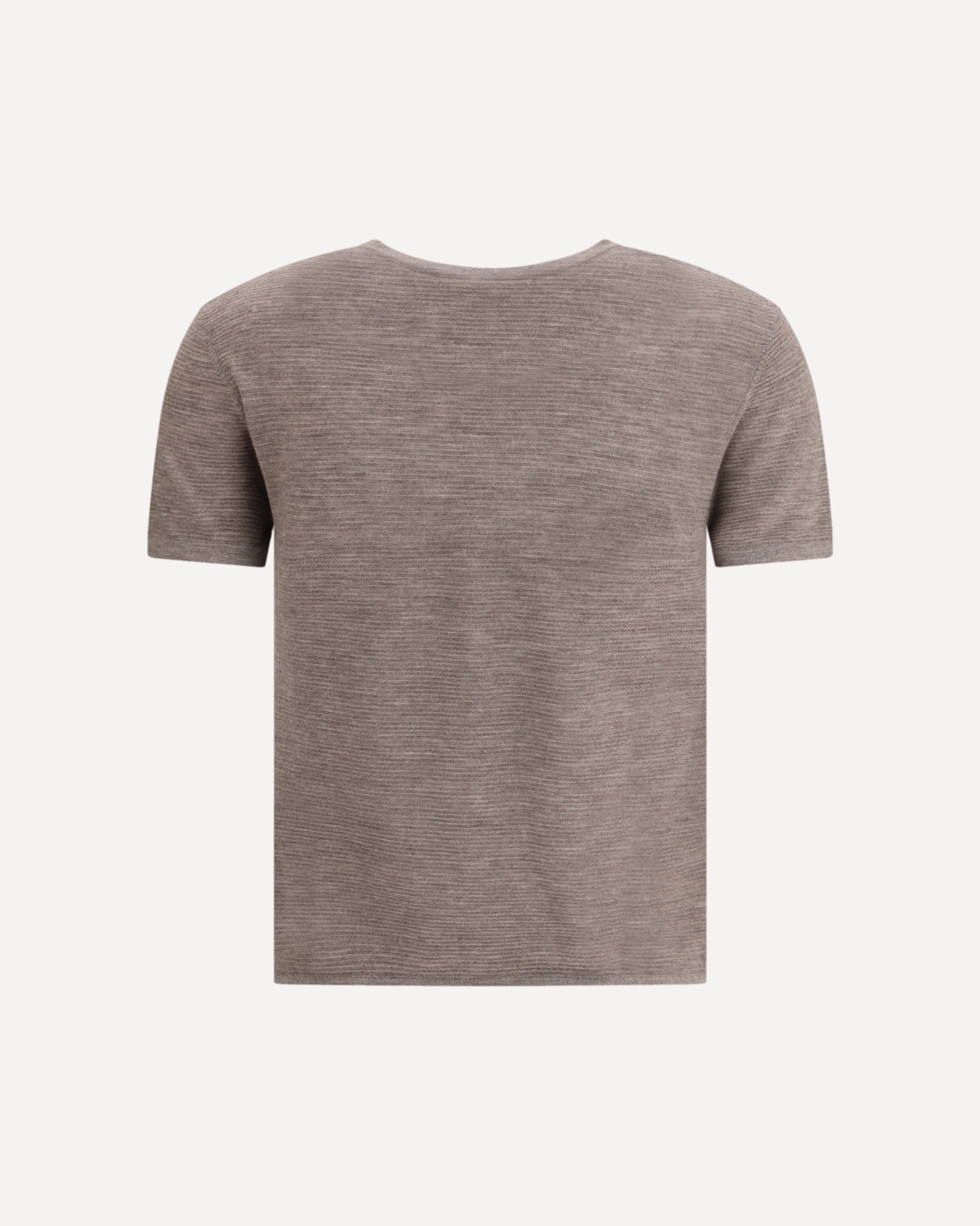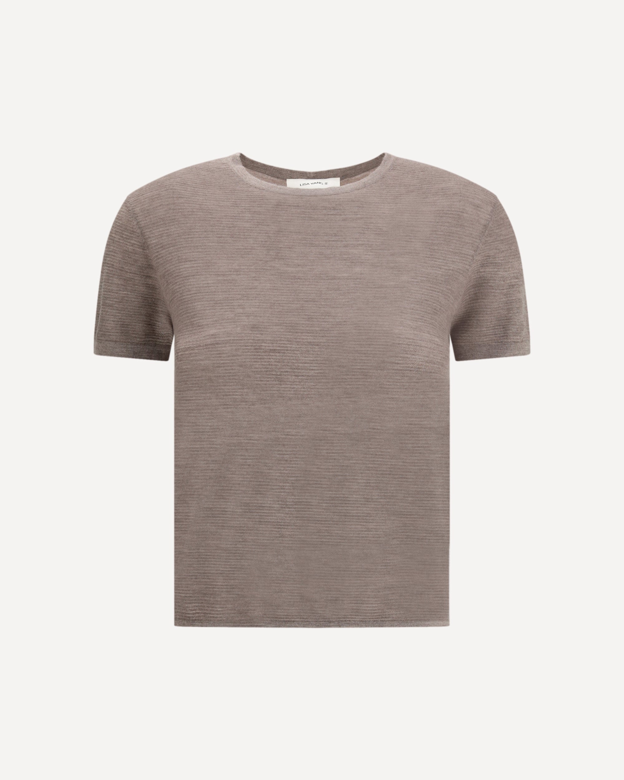 La T-shirt Ira di Lisa Yang è realizzata in cashmere ultraleggero a fine lavorazione 18 gauge, caratterizzato da una mano impalpabile e da una texture leggermente trasparente grazie al motivo a coste orizzontali rovesciate. La silhouette aderente segue naturalmente la linea del corpo, completata da uno scollo rotondo pulito e maniche corte essenziali. Perfetta come strato raffinato o come base versatile da indossare tutto l’anno, esprime la visione minimalista e sofisticata di Lisa Yang.