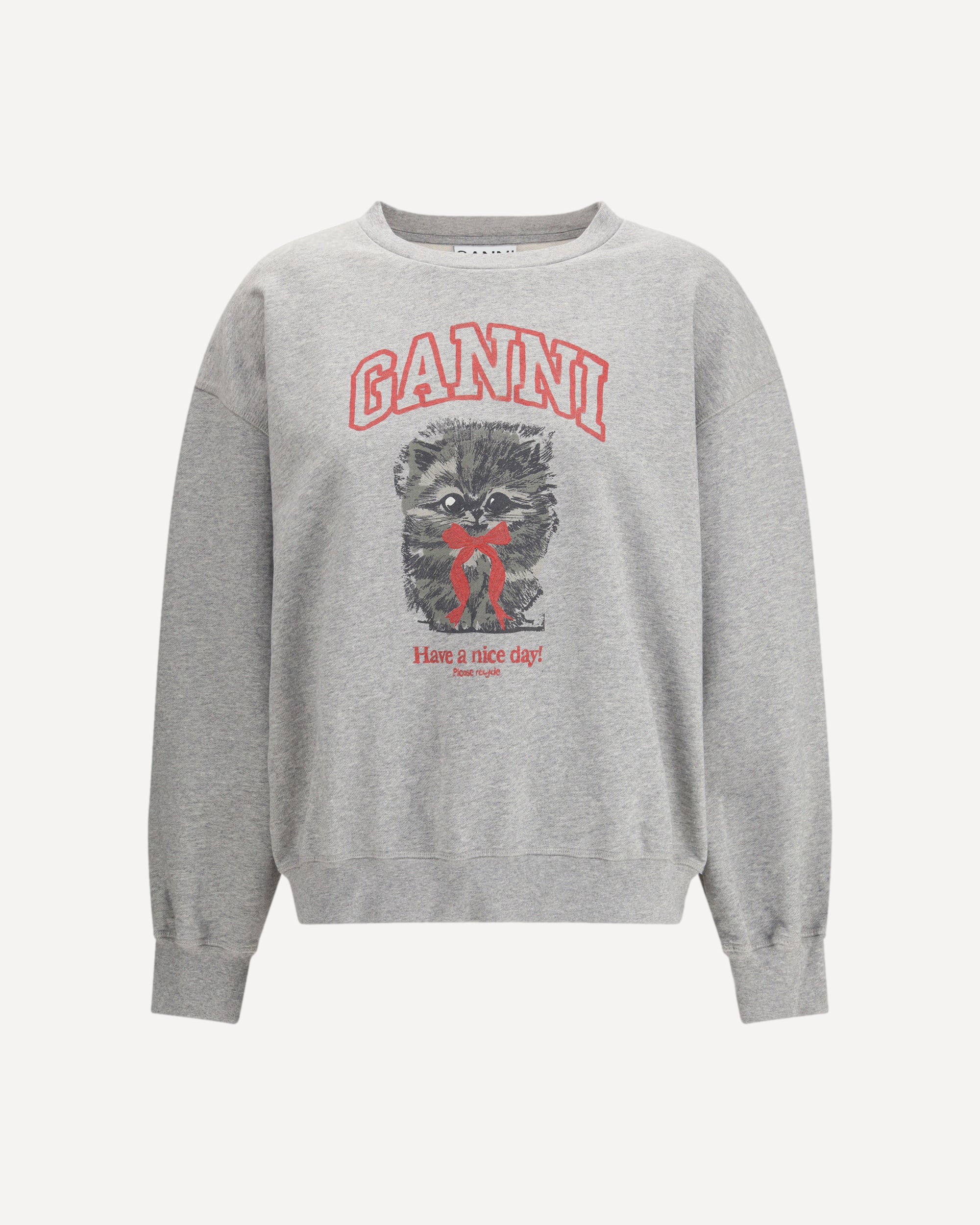La Felpa girocollo Kitty di Ganni trasforma la felpa quotidiana in un racconto giocoso e irresistibile. Il girocollo essenziale e le maniche lunghe creano una linea pulita, mentre la grafica Kitty sul fronte introduce un tocco di umorismo tenero e immediato. Il messaggio “Have a nice day! Please recycle” aggiunge quella sensibilità gentile e consapevole che caratterizza l’universo Ganni, completato dall’immancabile logo che firma il capo con disinvoltura. Una felpa che unisce comfort, carattere e un sorriso implicito.