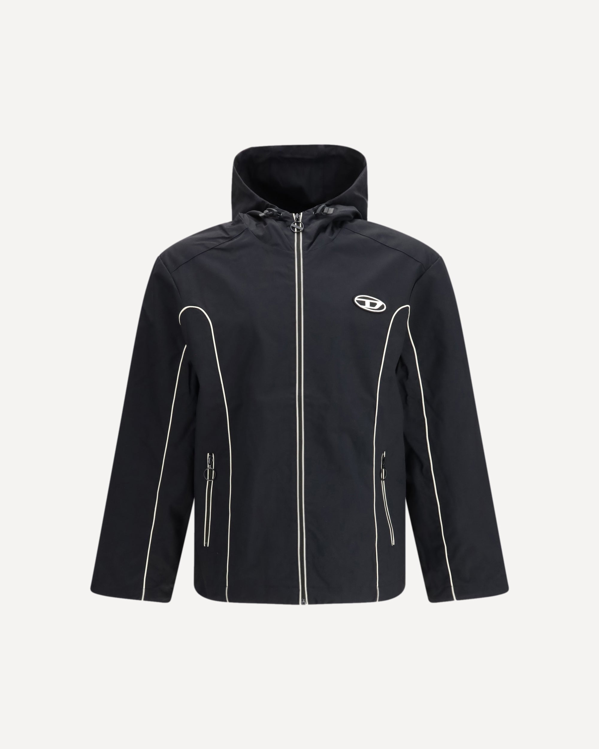 La Giacca a vento J-Hives di Diesel interpreta un’estetica tecnica e urbana pensata per la quotidianità contemporanea. Realizzata in resistente tessuto CORDURA® con membrana impermeabile e traspirante, presenta una vestibilità regular con interno foderato in mesh. Il design è definito da profili a contrasto, chiusura frontale con zip, due tasche con zip e regolazioni con coulisse su cappuccio e fondo. La patch Oval D sul petto firma il capo con l’identità distintiva di Diesel.