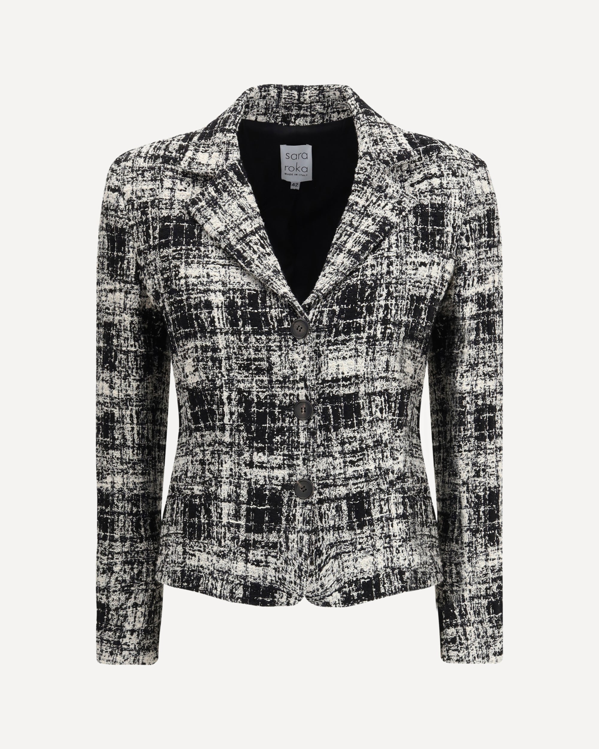 La Giacca in tweed di Sara Roka è un capo intramontabile rivisitato con un tocco di modernità. Il modello corto valorizza la figura con una vestibilità femminile e raffinata, mentre i revers classici e la chiusura frontale con bottoni richiamano la tradizione sartoriale. Completano il design due tasche a filetto, discrete e funzionali, che aggiungono un dettaglio elegante. Realizzata in tweed di alta qualità, è perfetta per dare carattere a look sia formali che casual chic.
