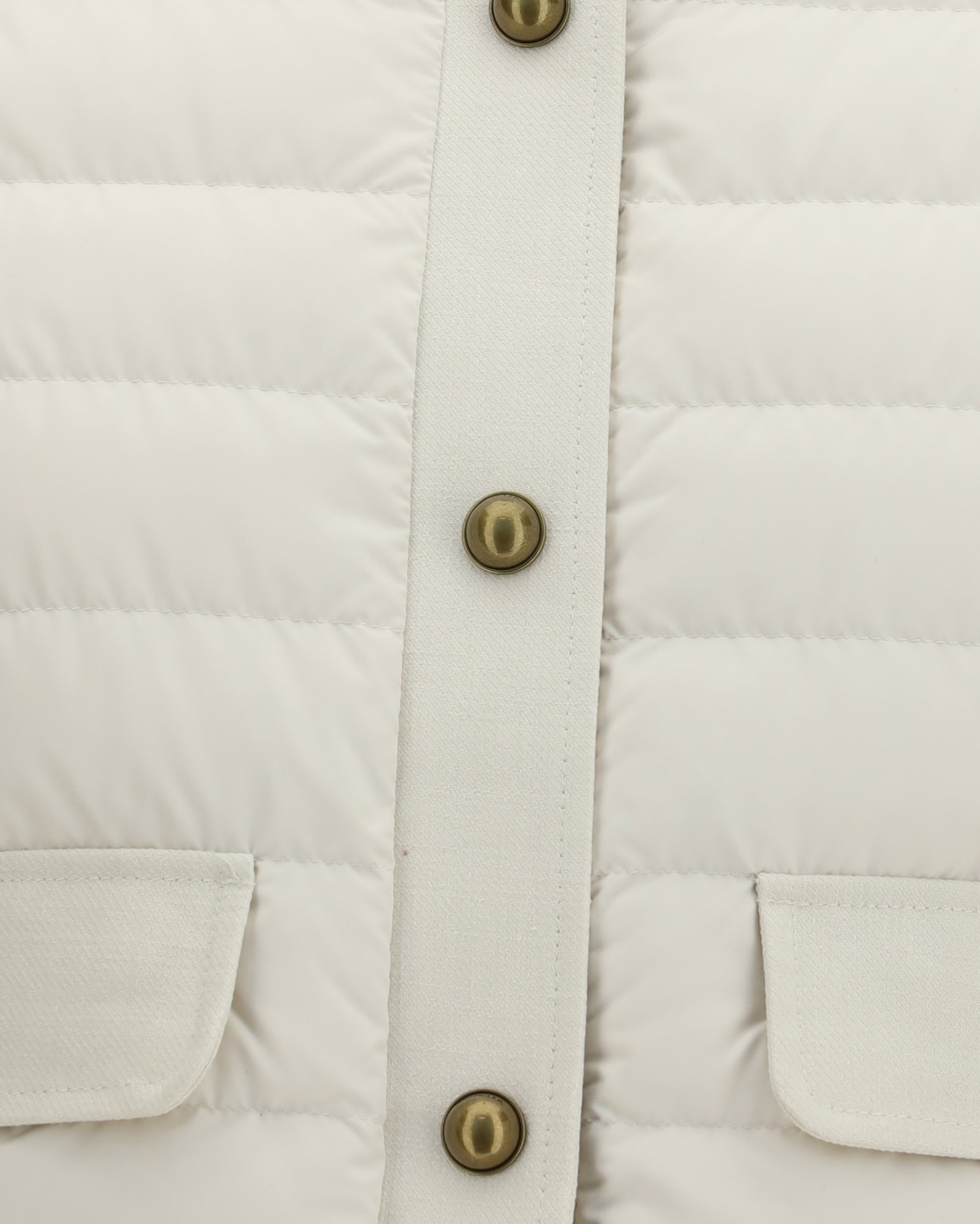 La Giacca corta imbottita Juju di Moncler incarna un’eleganza sofisticata pensata per la vita quotidiana. Il design contemporaneo è arricchito da inserti in twill di misto cotone e lino, che donano texture e raffinatezza al capo. La silhouette compatta e femminile unisce comfort e stile, rendendo questo piumino corto ideale per look versatili e ricercati.