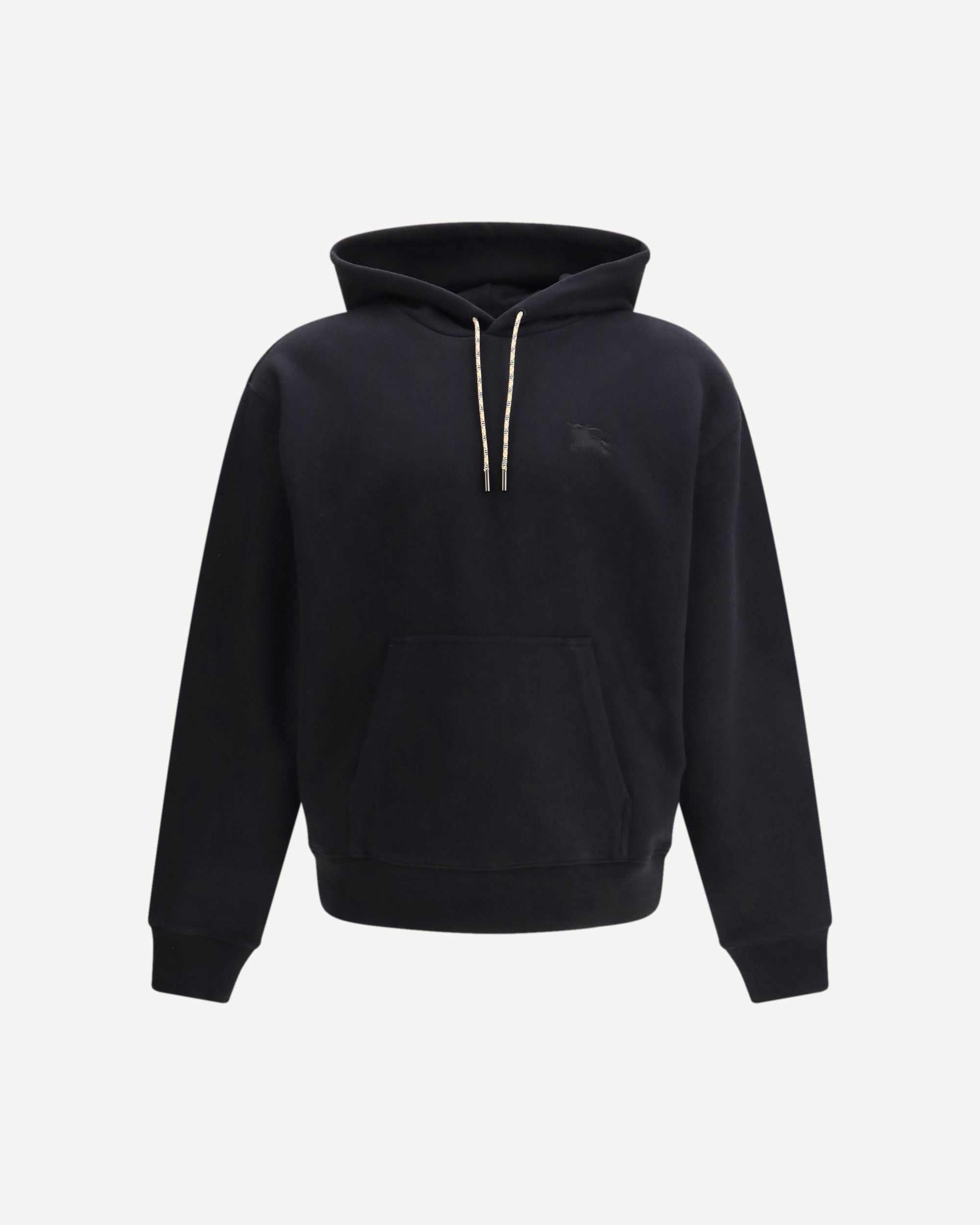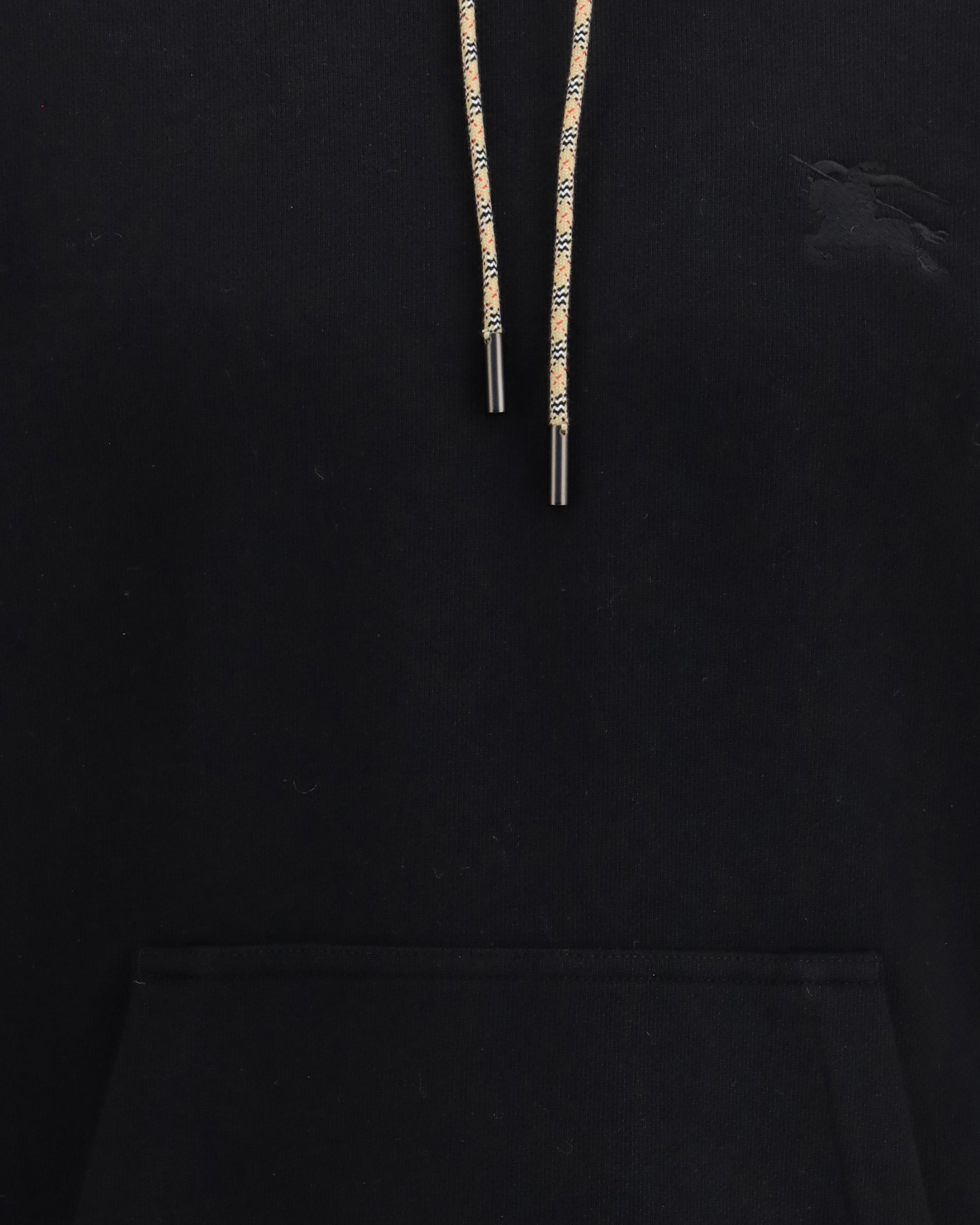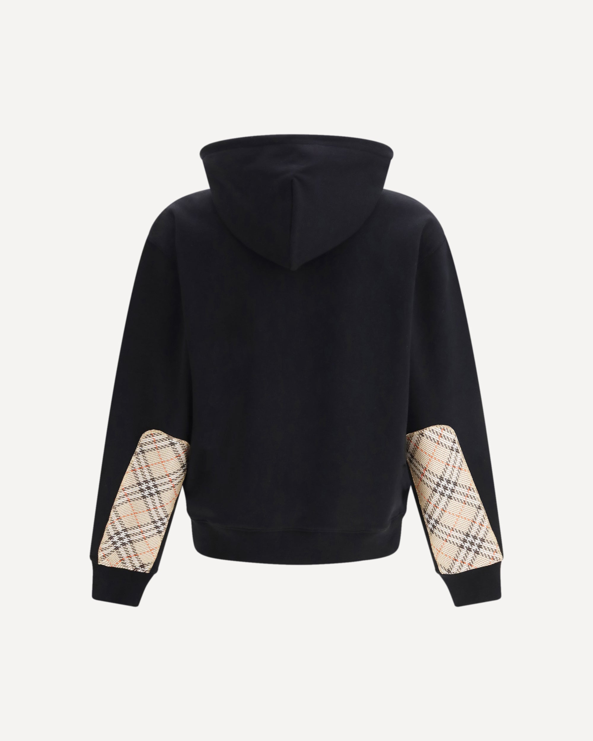 La Felpa in cotone con cappuccio di Burberry aggiorna un classico del guardaroba con dettagli iconici della maison. Il modello presenta un cappuccio regolabile tramite coulisse rifinita con l’immancabile motivo Check, mentre sul petto spicca l’Equestrian Knight Design ricamato, reso da una lavorazione che crea un leggero effetto in rilievo. Le maniche sono valorizzate sul retro da inserti applicati con motivo Check, disposti come piccole pattine decorative che aggiungono un riferimento discreto ma immediatamente riconoscibile al heritage del brand. Le tasche a marsupio e le finiture a costine completano una felpa che unisce comfort quotidiano e identità distintiva.