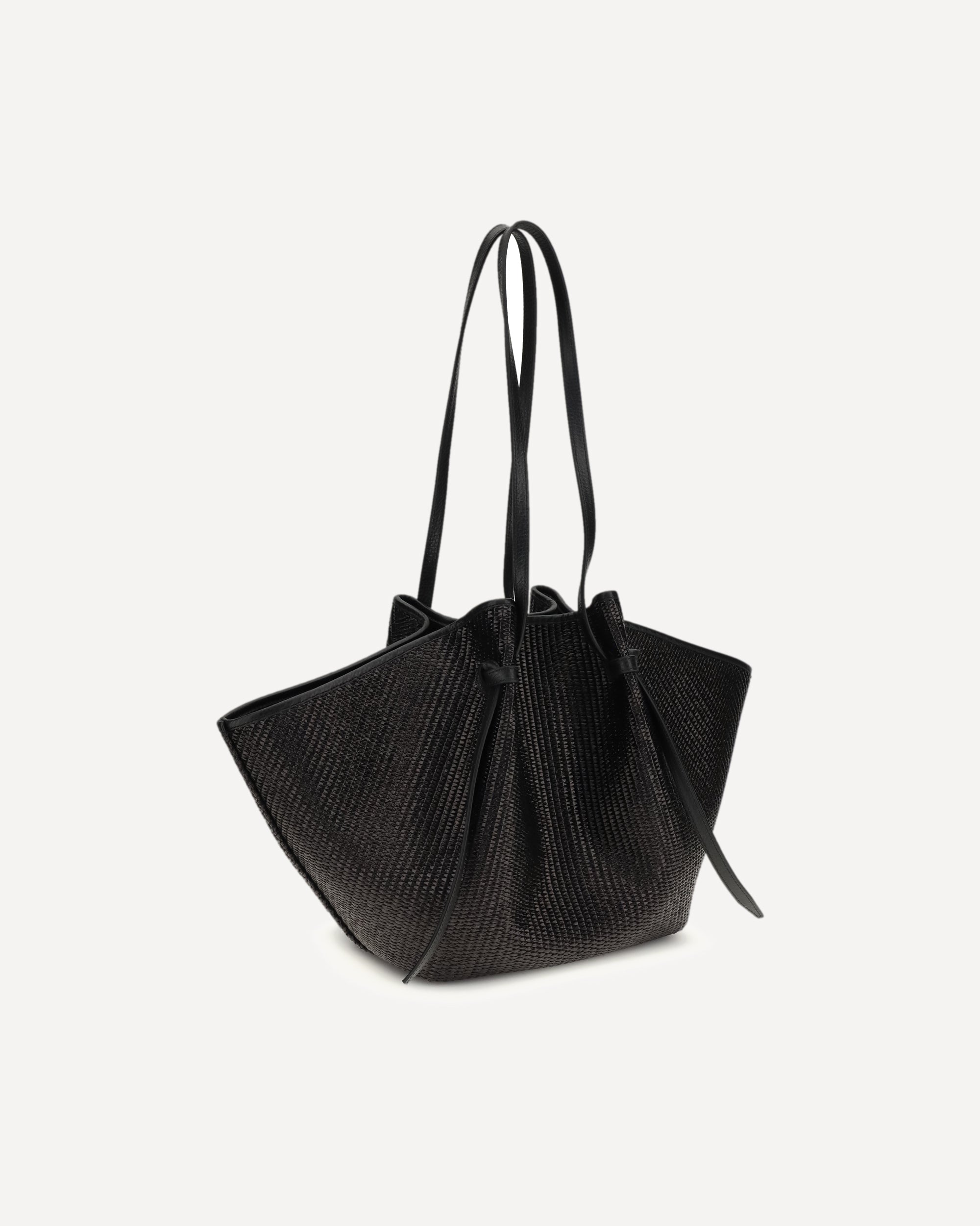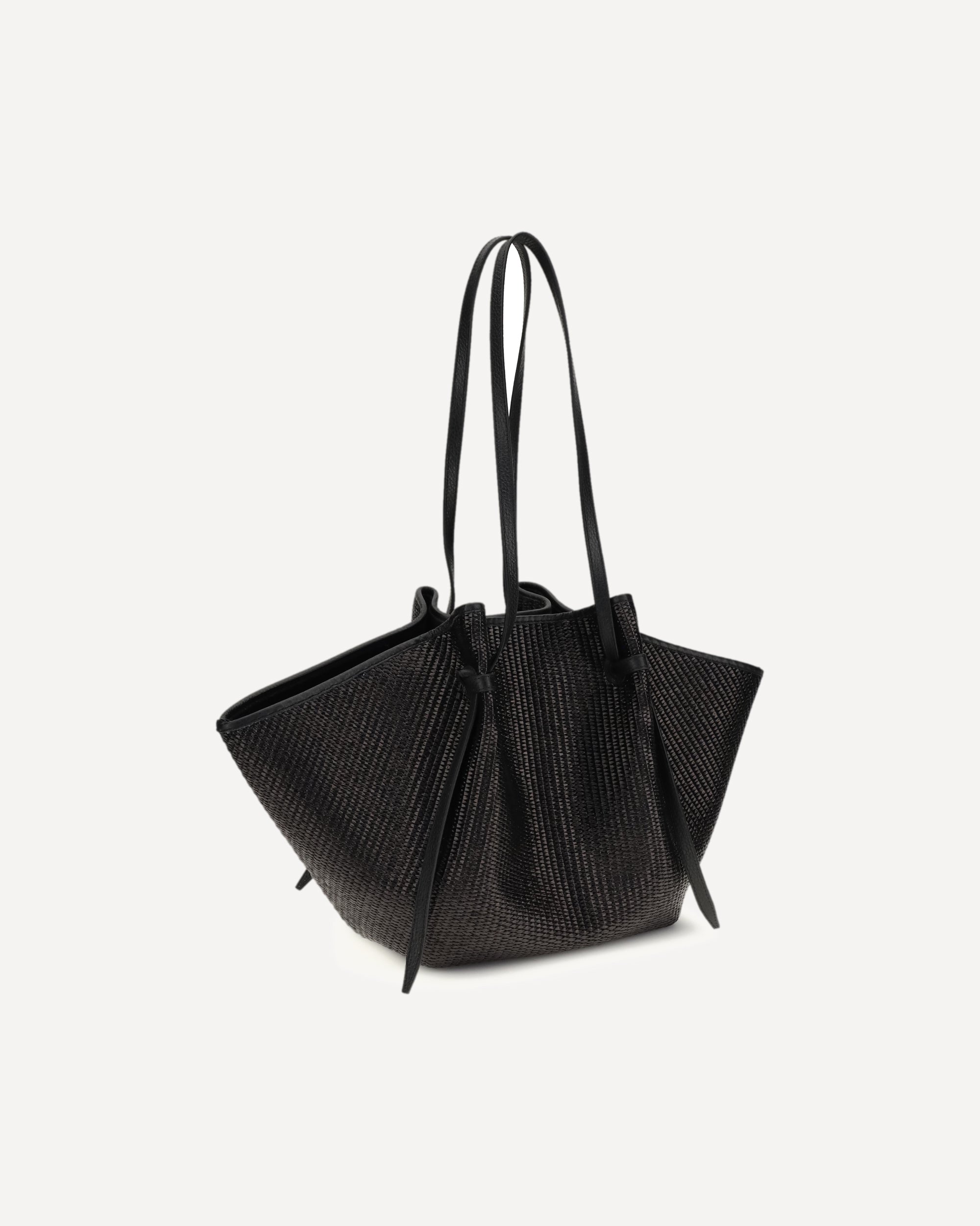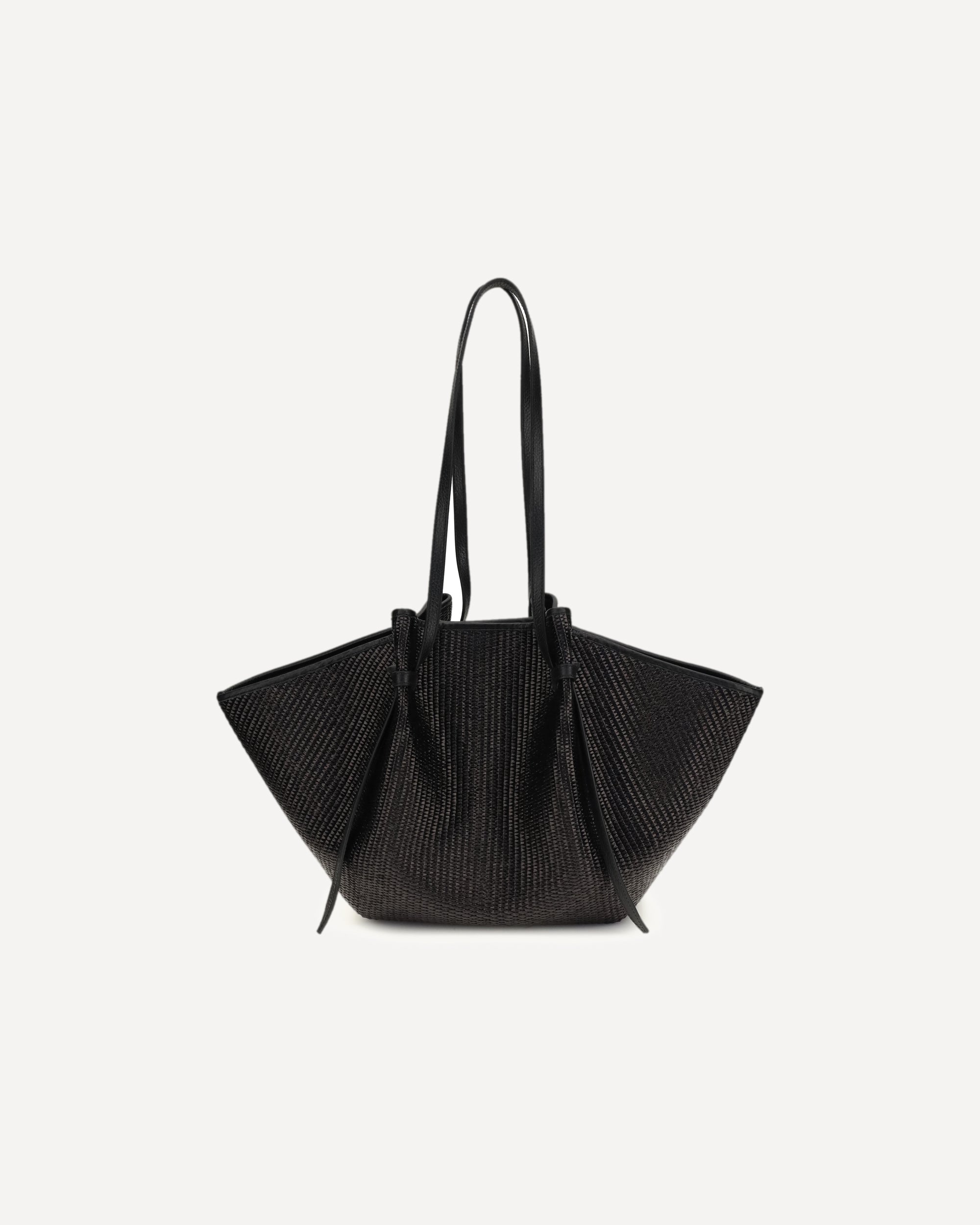 La Borsa a Spalla Mochi grande di Yuzefi si distingue per le sue caratteristiche curve organiche, pieghe e nodi. Realizzata in rafia in Spagna secondo elevati standard di qualità, è capiente abbastanza da contenere tutti gli essenziali quotidiani. La tracolla regolabile presenta il nodo iconico, che può essere allentato per estendere la lunghezza e fissarla a piacere. Completa il design la chiusura magnetica e la ferramenta color oro.