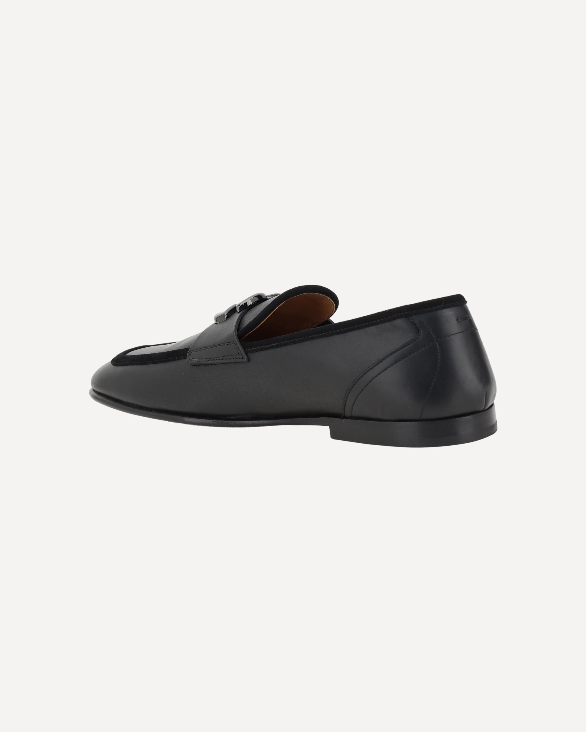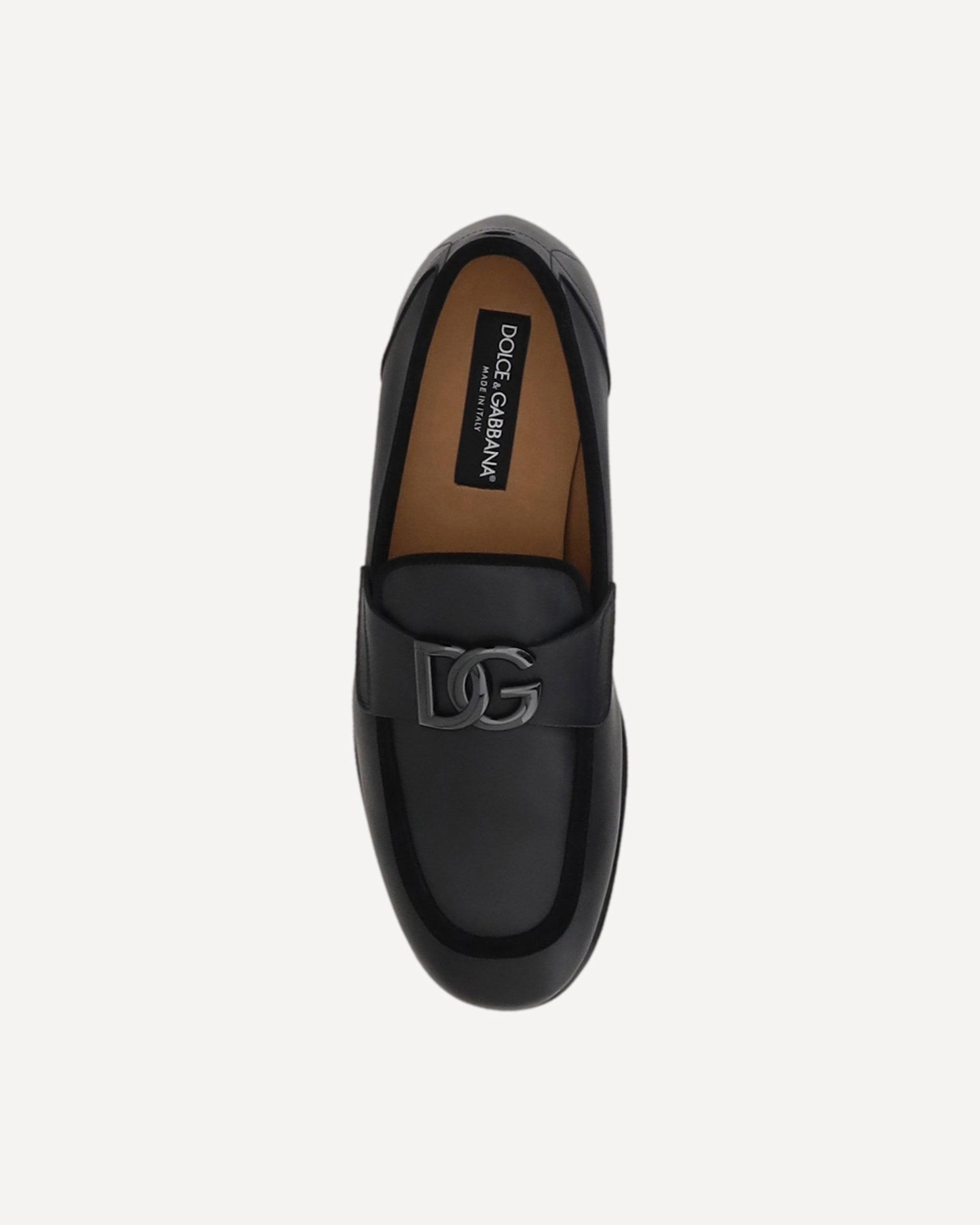 I Mocassini in pelle di Dolce&Gabbana presentano una punta allungata e un perimetro in velluto che aggiunge un tocco di eleganza. L'iconica placca DG applicata sul fronte richiama il prestigio del brand, mentre il lieve tacco a blocco in cuoio offre comfort e stile. La soletta logata completa il design con un dettaglio distintivo.