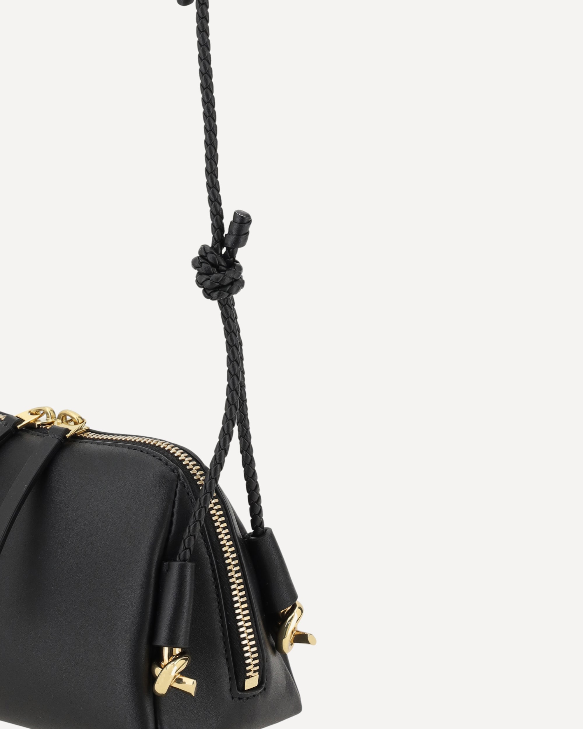 Borsa a tracolla in pelle di Bottega Veneta, con chiusura superiore a cerniera a doppio cursore per una maggiore praticità. La tracolla intrecciata è arricchita dall'iconico nodo del brand a contrasto alla base, mentre l'iconico monogramma è impresso a pressione sul fronte. All'interno, un unico scomparto offre spazio e funzionalità per gli essenziali. Un design elegante e distintivo, perfetto per ogni occasione.