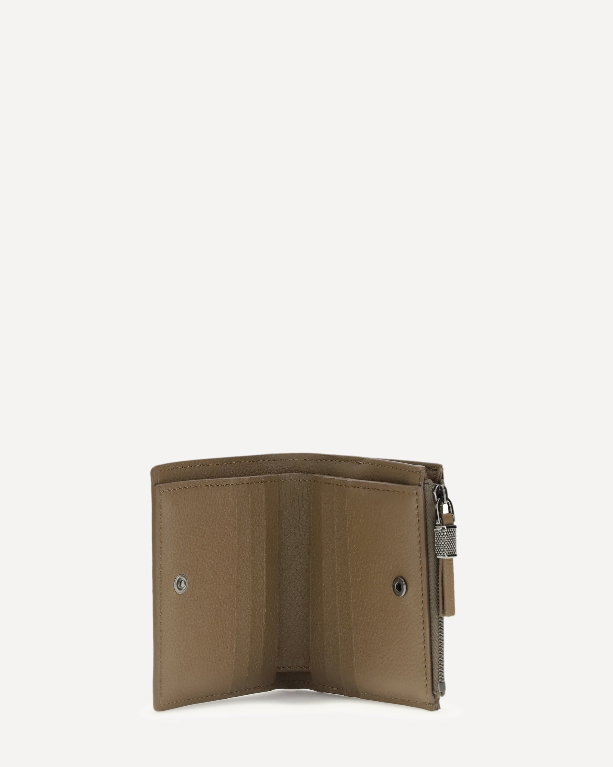 Il Portafoglio in pelle con grana e Shiny Zipper Pull di Brunello Cucinelli combina eleganza e funzionalità in un formato compatto. La chiusura con bottone automatico custodisce con praticità 8 slot per carte e biglietti da visita, insieme a uno scomparto singolo per banconote. Una tasca esterna con zip aggiunge versatilità, mentre la fodera in pelle e le finiture artigianali riflettono l’eccellenza e il gusto distintivo della Maison.