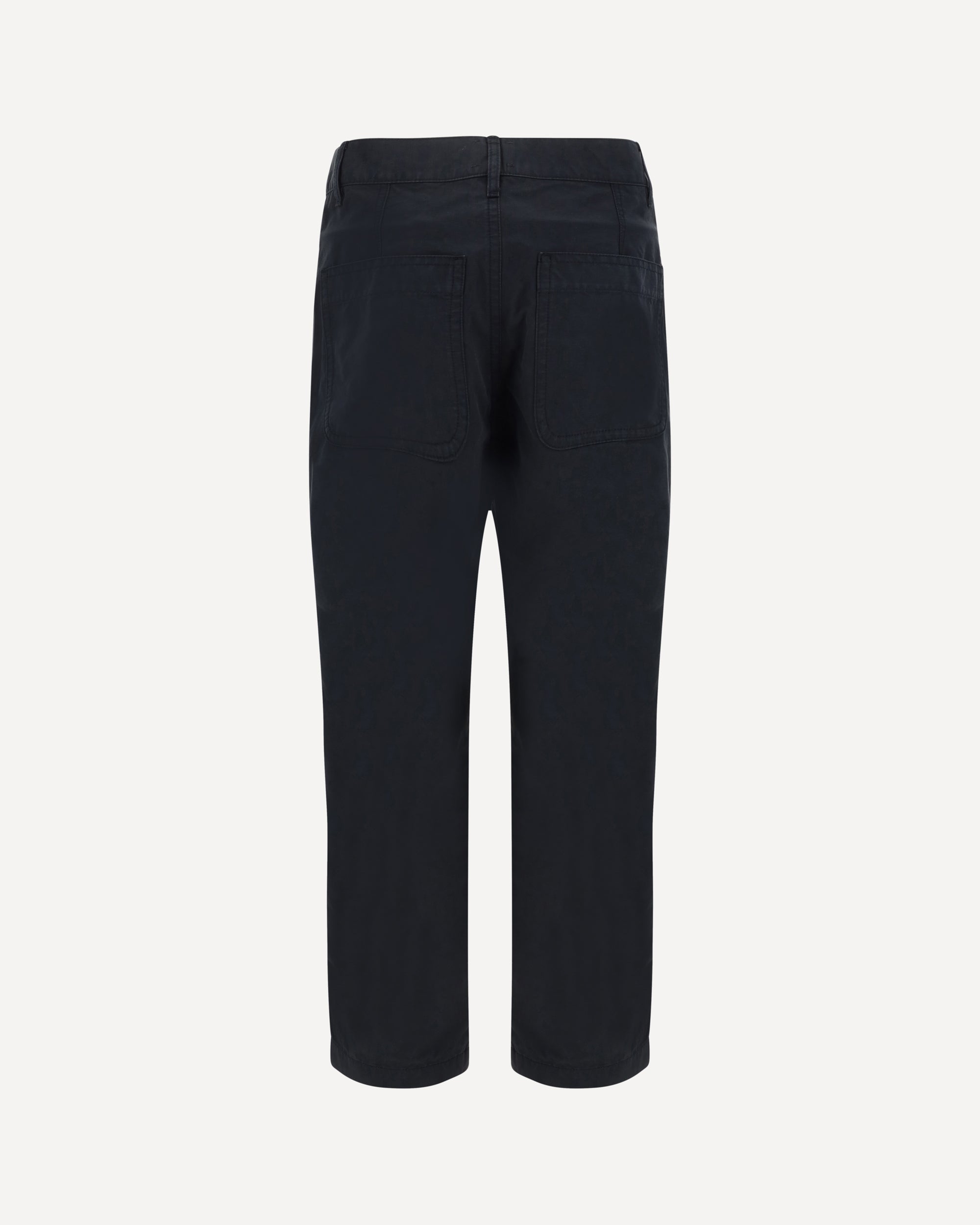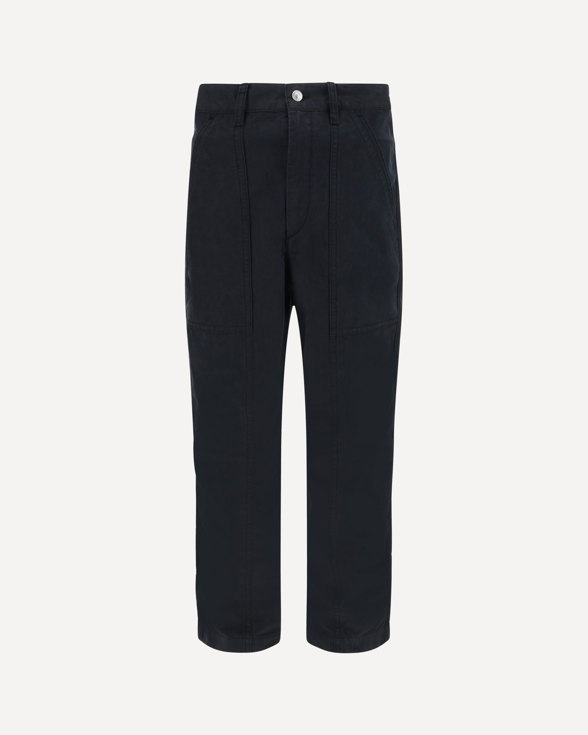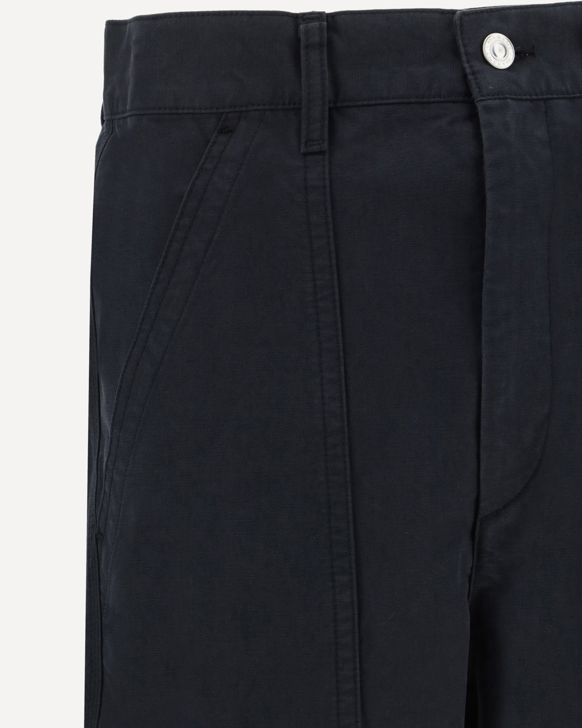 Pantaloni Leonel in Cotone di Isabel Marant, chiusura frontale con bottone e cerniera, passanti per cintura girovita, due tasche all'americana laterali, due ampie tasche cargo sul retro, modello a vita alta, fantasia monocromo.