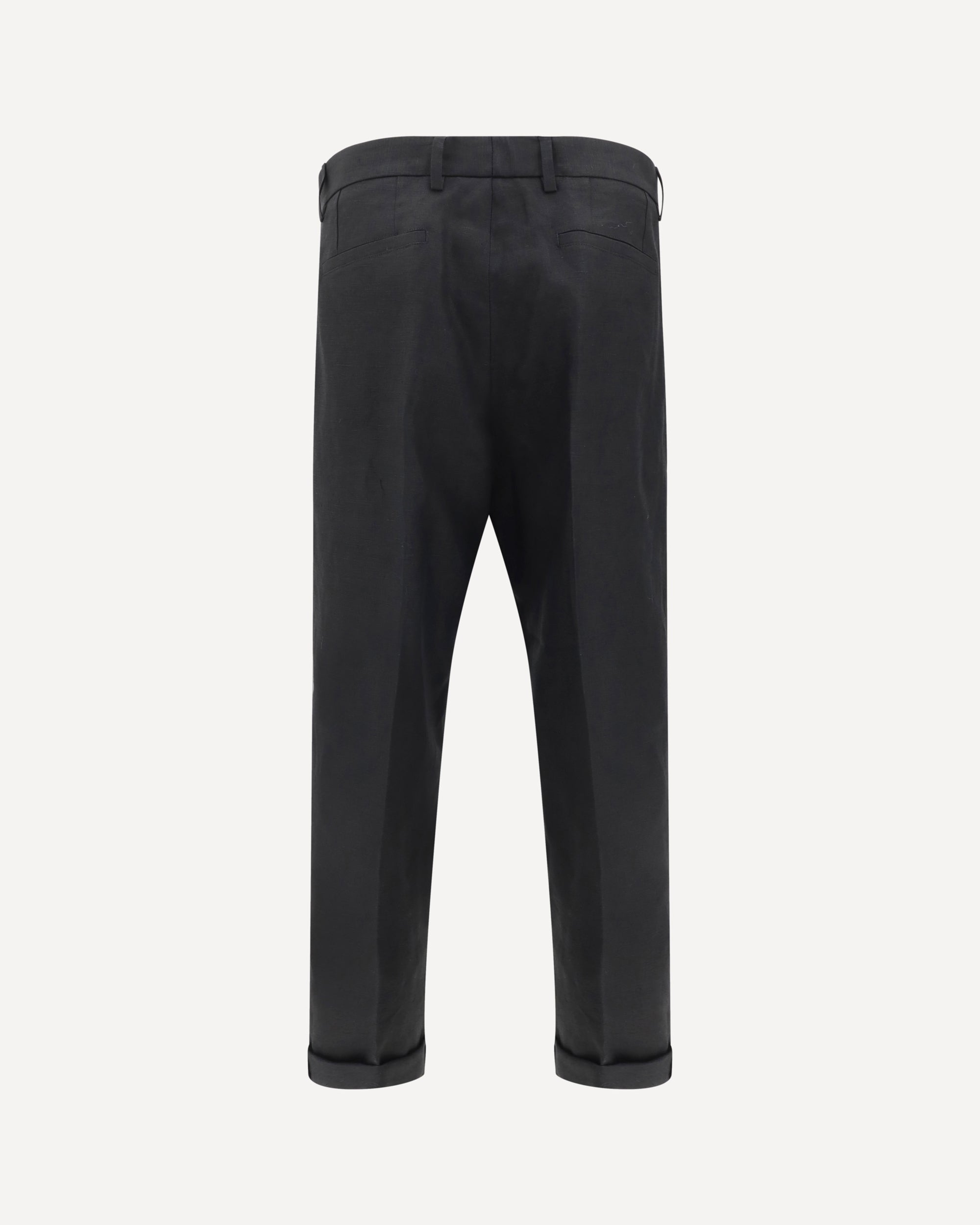 Il Pantaloni in lino di Dolce&Gabbana è un capo che unisce la raffinatezza del design sartoriale con la leggerezza del lino, ideale per la stagione più calda. La gamba leggermente a palloncino aggiunge un tocco di originalità e modernità, conferendo al pantalone una silhouette fluida e confortevole. La chiusura frontale con cerniera e bottone garantisce una vestibilità perfetta, mentre le due tasche laterali a filetto offrono praticità senza sacrificare l'estetica. Le tasche posteriori a filetto, anch'esse eleganti, completano il design, mentre il girovita con passanti permette di aggiungere una cintura per personalizzare ulteriormente il fit.