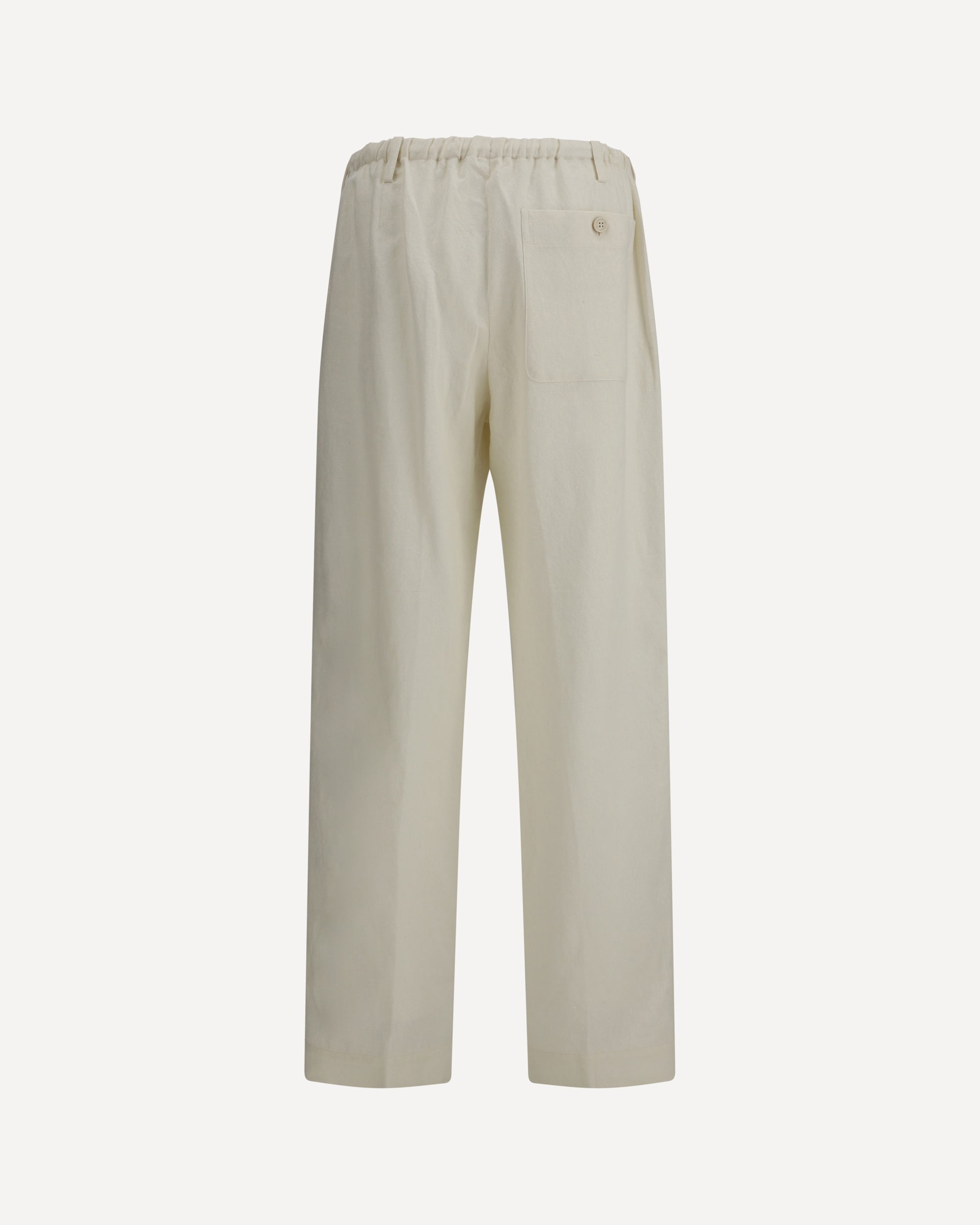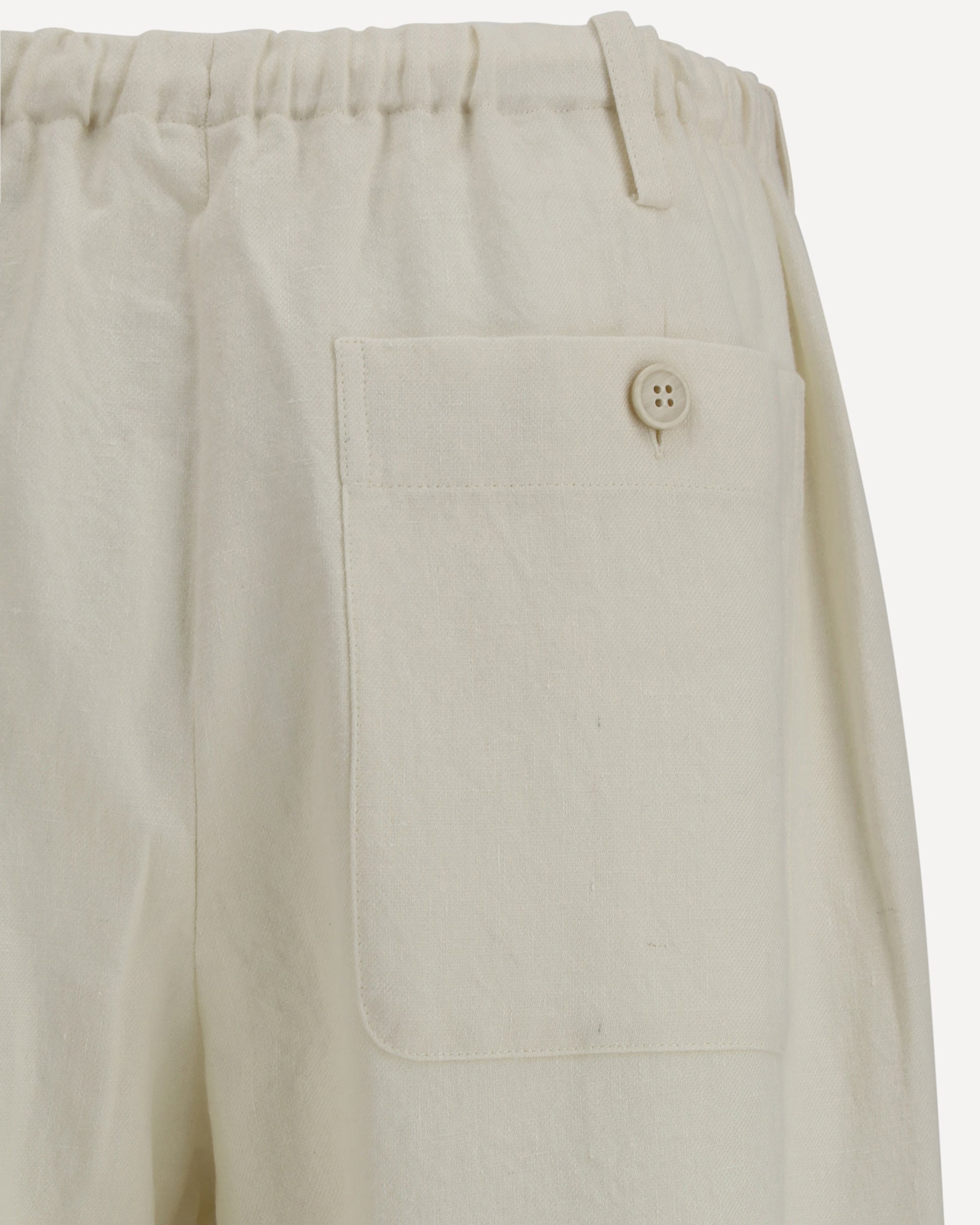 I Pantaloni in lino di Dries Van Noten combinano comfort e stile con il loro design leggero e raffinato. Il girovita regolabile con coulisse permette una vestibilità personalizzata, mentre la chiusura frontale con bottone e cerniera assicura una calzata perfetta. I passanti per cintura al girovita offrono la possibilità di aggiungere un accessorio, completando il look. Le tasche laterali a filetto e la tasca posteriore applicata mantengono il design pulito ed elegante, rendendoli ideali per un look casual ma sempre sofisticato. Un capo versatile e lussuoso, perfetto per le giornate più calde.