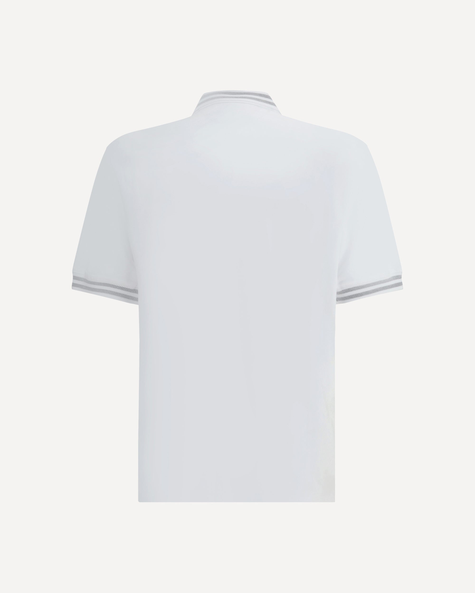 La Maglia Polo in cotone di Brunello Cucinelli unisce il comfort del cotone alla raffinatezza dei dettagli. Il colletto classico con righe a contrasto e i bottoncini sul fronte donano un tocco di stile classico e discreto. L'orlo delle maniche a costine con righe a contrasto aggiunge un accento dinamico, mentre l'iconico logo ricamato sul fronte conferma l'eleganza senza tempo del brand. Un capo versatile e sofisticato, perfetto per un look casual-chic.