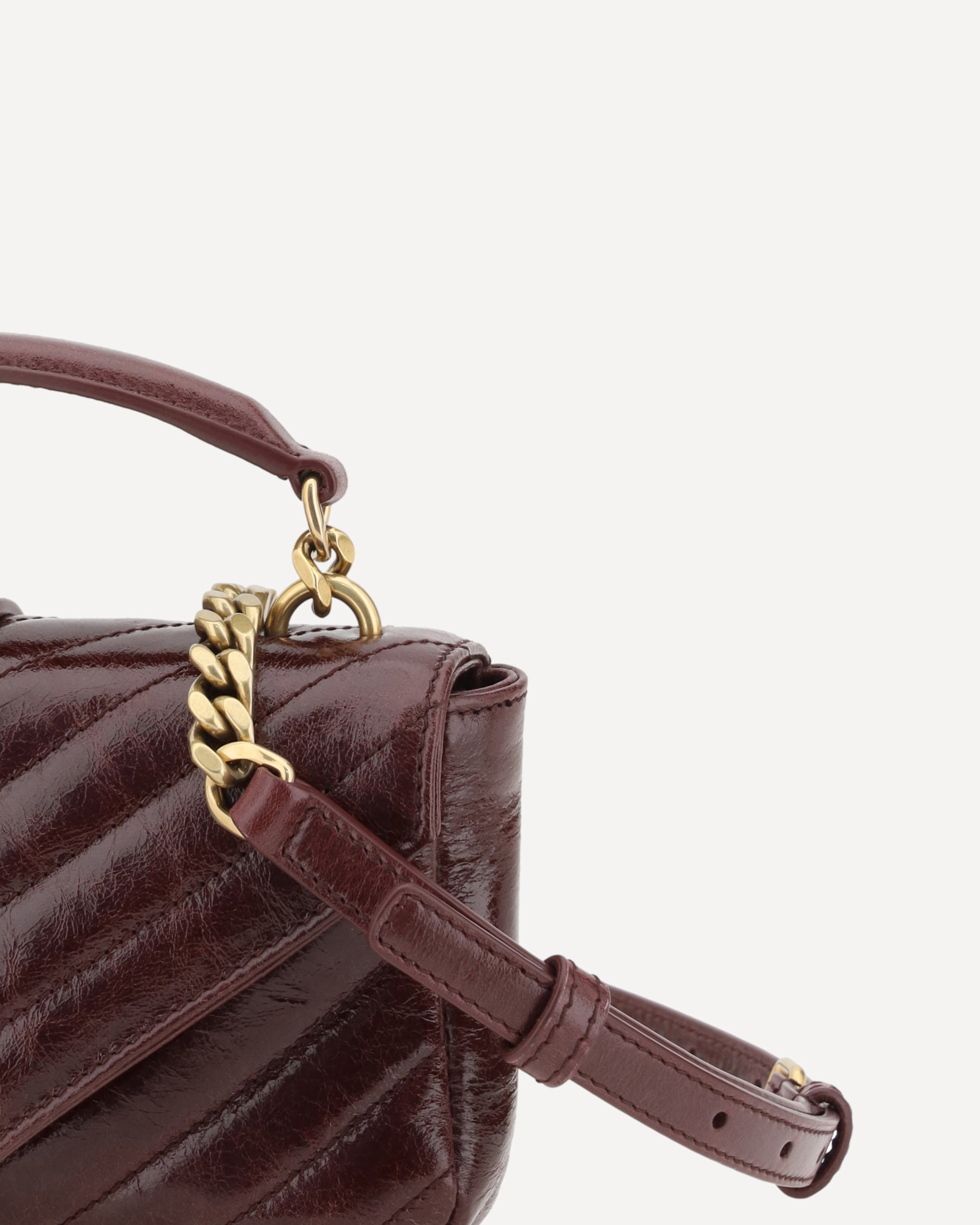 Borsa a Tracolla in pelle firmata Saint Laurent, un accessorio che unisce eleganza e funzionalità. La chiusura frontale con patta magnetica è arricchita dal dettaglio della placca con l'iconico logo YSL in rilievo, un simbolo di lusso senza tempo. La chiusura con cerniera superiore assicura praticità e sicurezza. La tracolla a catena scorrevole con un dettaglio piatto in pelle removibile offre versatilità, permettendo di indossarla sia a spalla che crossbody. Il manico piatto superiore aggiunge una comoda opzione per portarla a mano. Il design effetto trapuntato e l'unico scomparto interno conferiscono un look sofisticato e funzionale, perfetto per chi cerca stile e praticità in un solo accessorio.