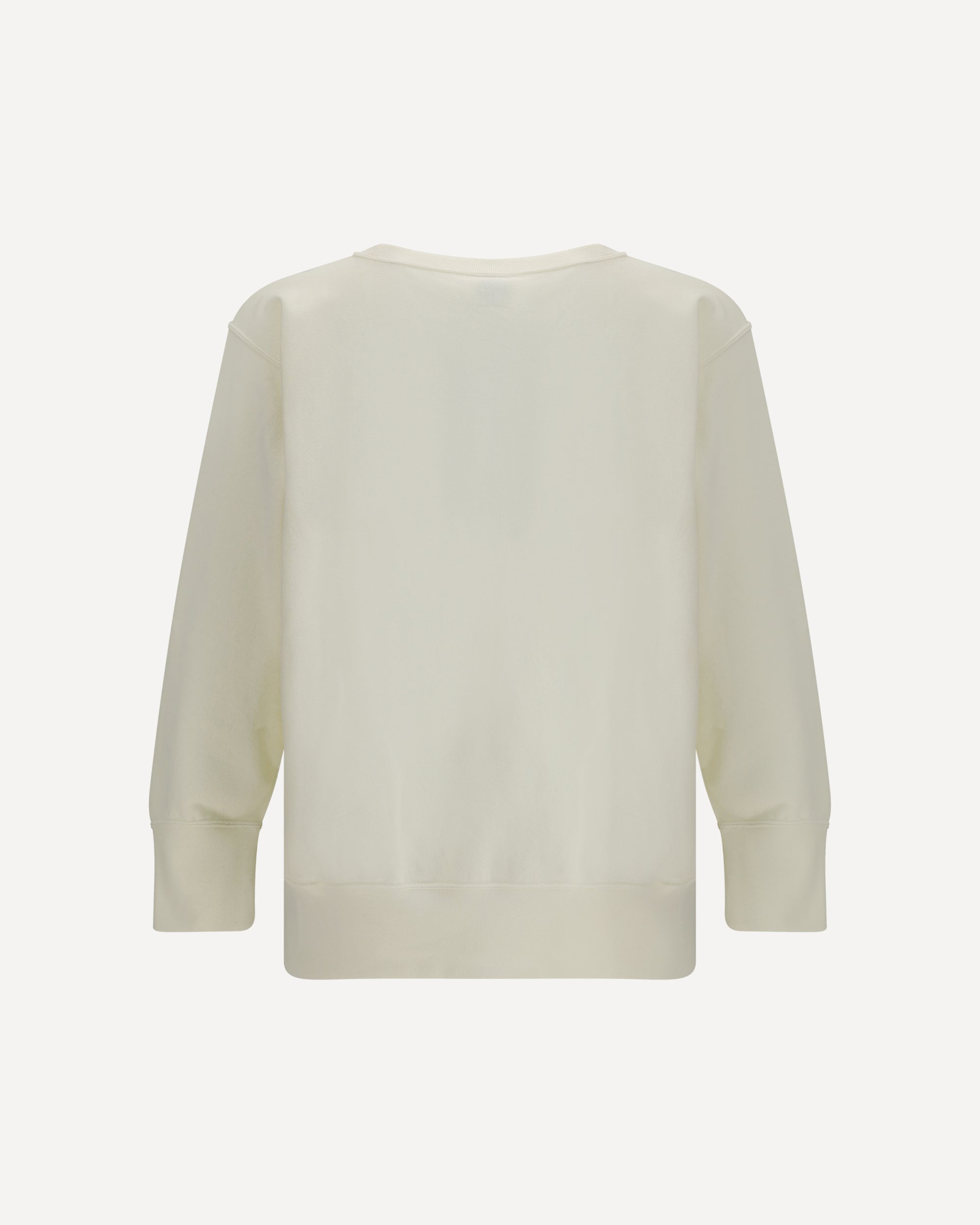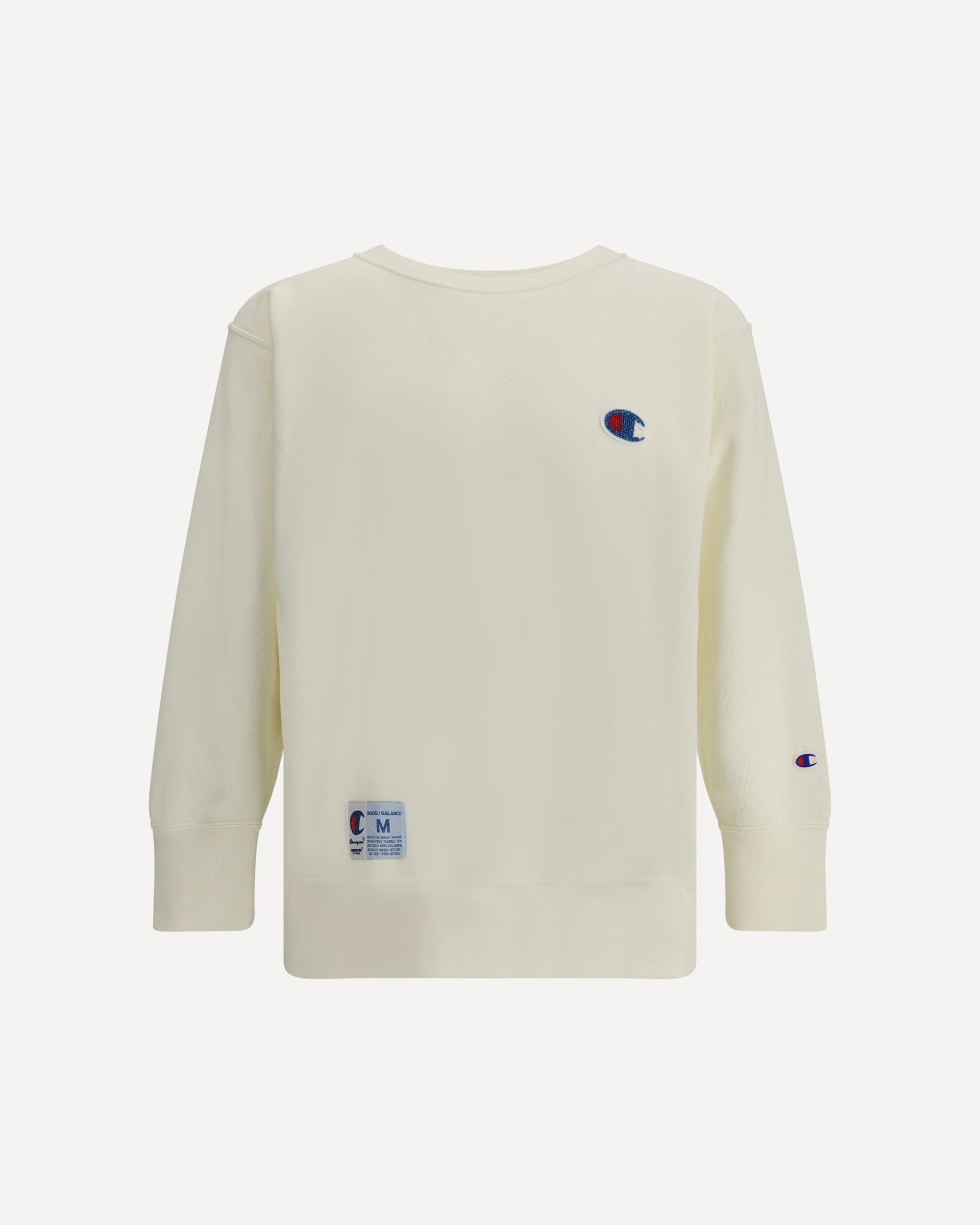 Felpa in cotone di Undercover x Champion con girocollo, polsini e orlo a costine per una vestibilità aderente e confortevole. Dettagli distintivi includono il patch iconico con logo multicolore sul fronte e il patch con monogramma e taglia applicati sul fronte. Completa il design la presenza di pannelli laterali a costine, che aggiungono struttura e flessibilità al capo.
