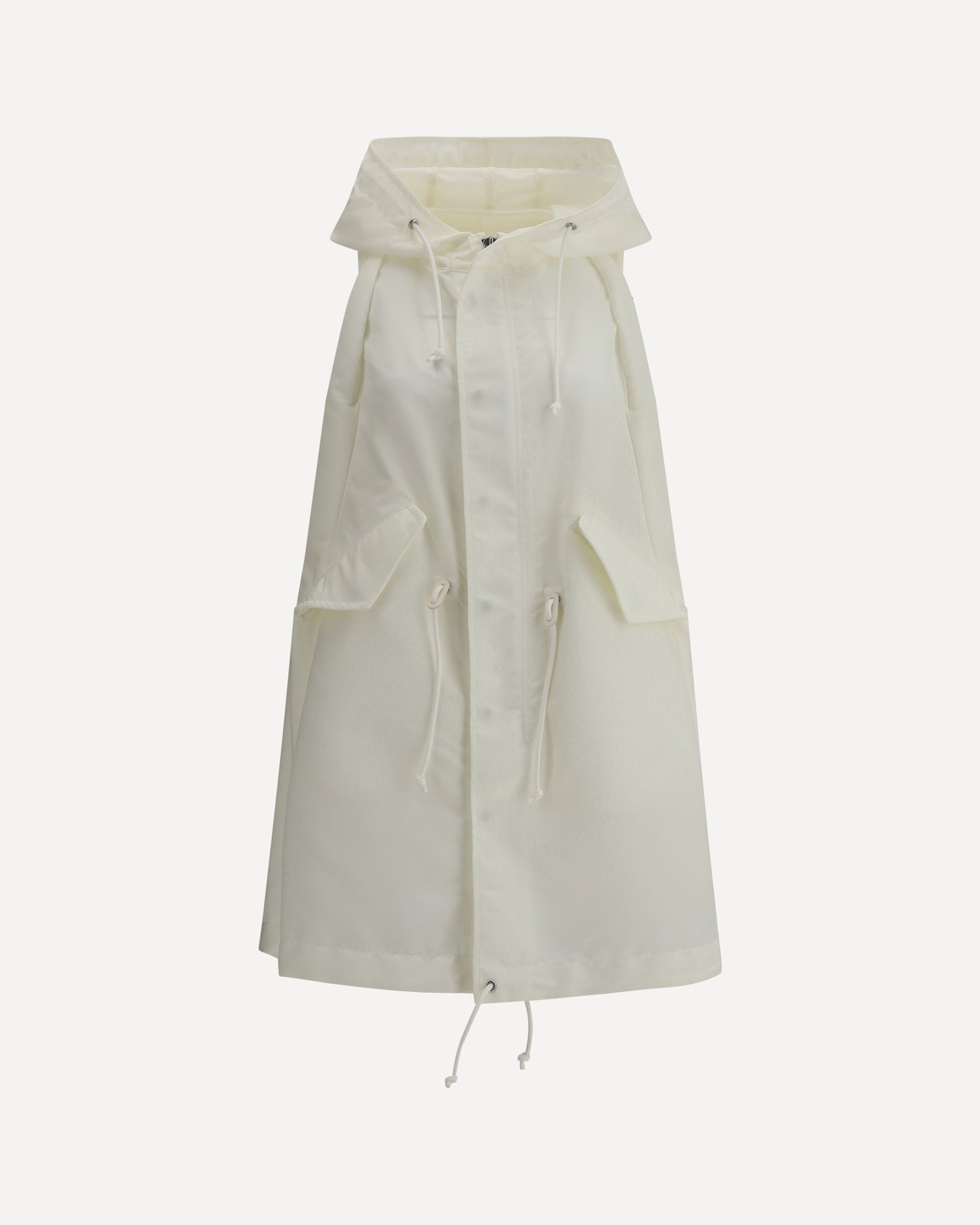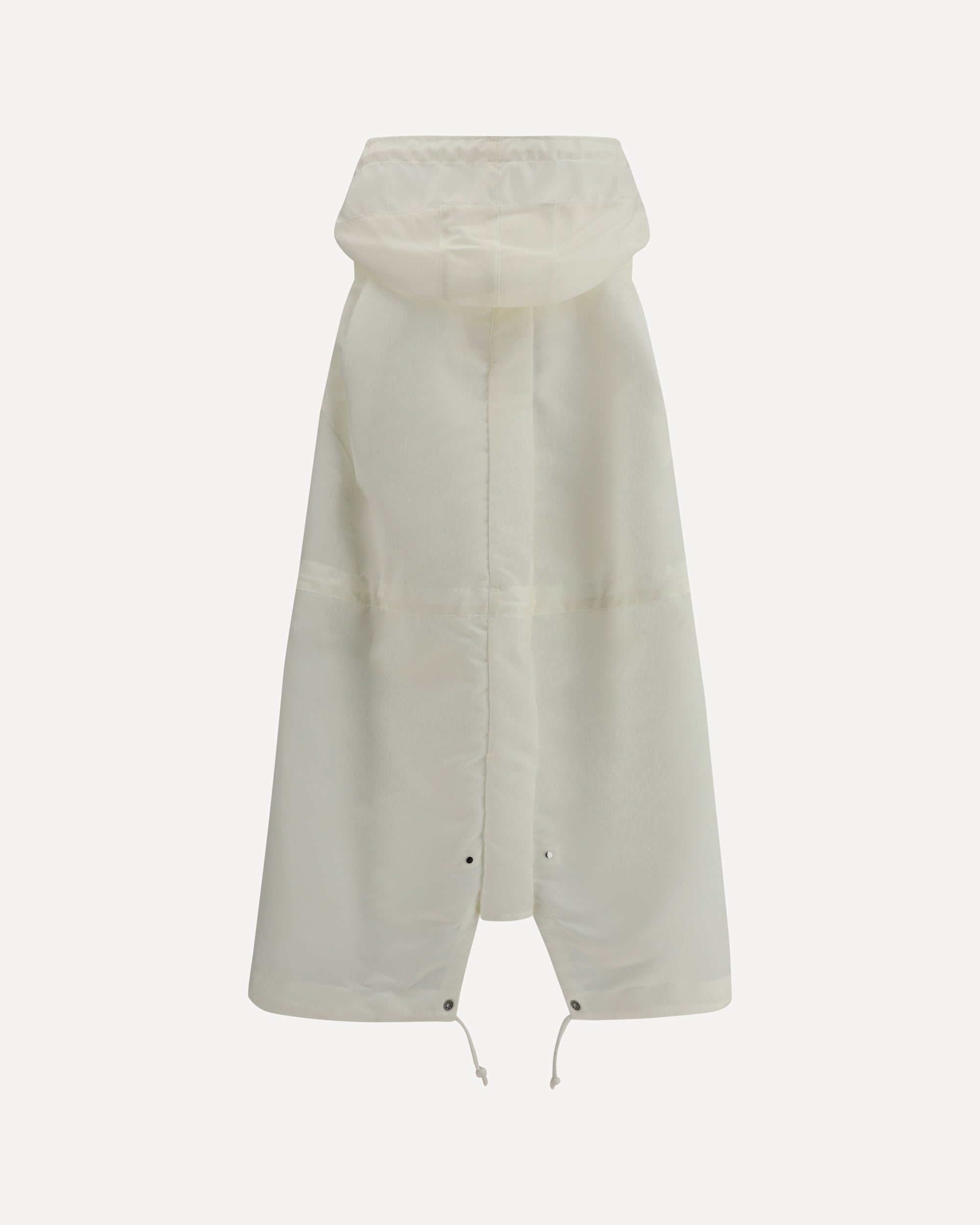 Il Gilet di Sacai è un capo versatile e moderno, caratterizzato da un design funzionale e dallo stile contemporaneo. Il modello lungo presenta un cappuccio regolabile con coulisse per una vestibilità personalizzata. Il design a pannelli conferisce un aspetto dinamico, mentre la chiusura frontale con cerniera e bottoni assicura praticità e un tocco di stile. Le due tasche a filetto laterali con patta offrono spazio aggiuntivo per piccoli oggetti. Il girovita regolabile con coulisse permette di adattare la vestibilità, così come l'orlo regolabile con coulisse per una maggiore personalizzazione. Infine, lo spacco sul retro aggiunge un dettaglio funzionale e distintivo, rendendo il gilet ancora più moderno e versatile.