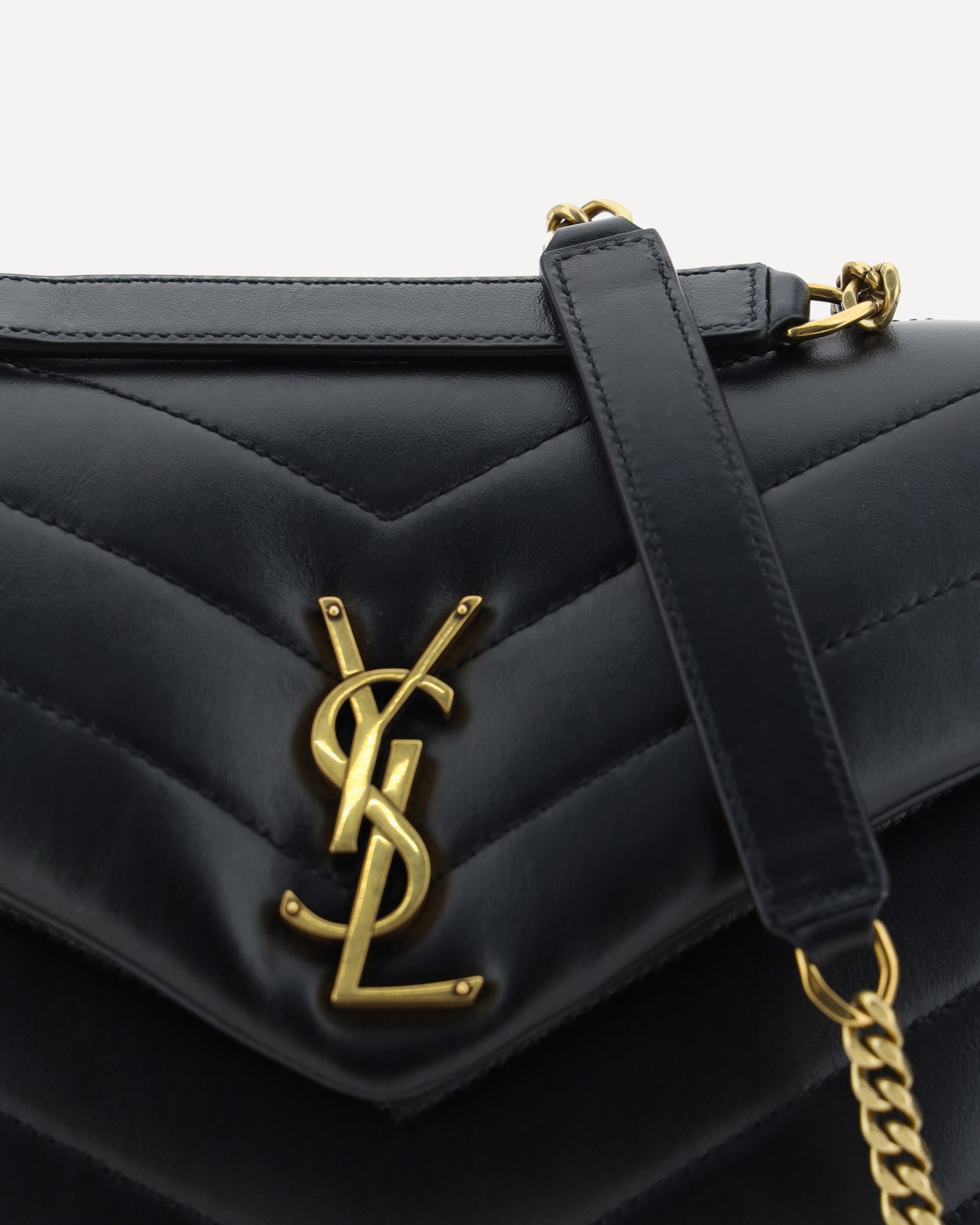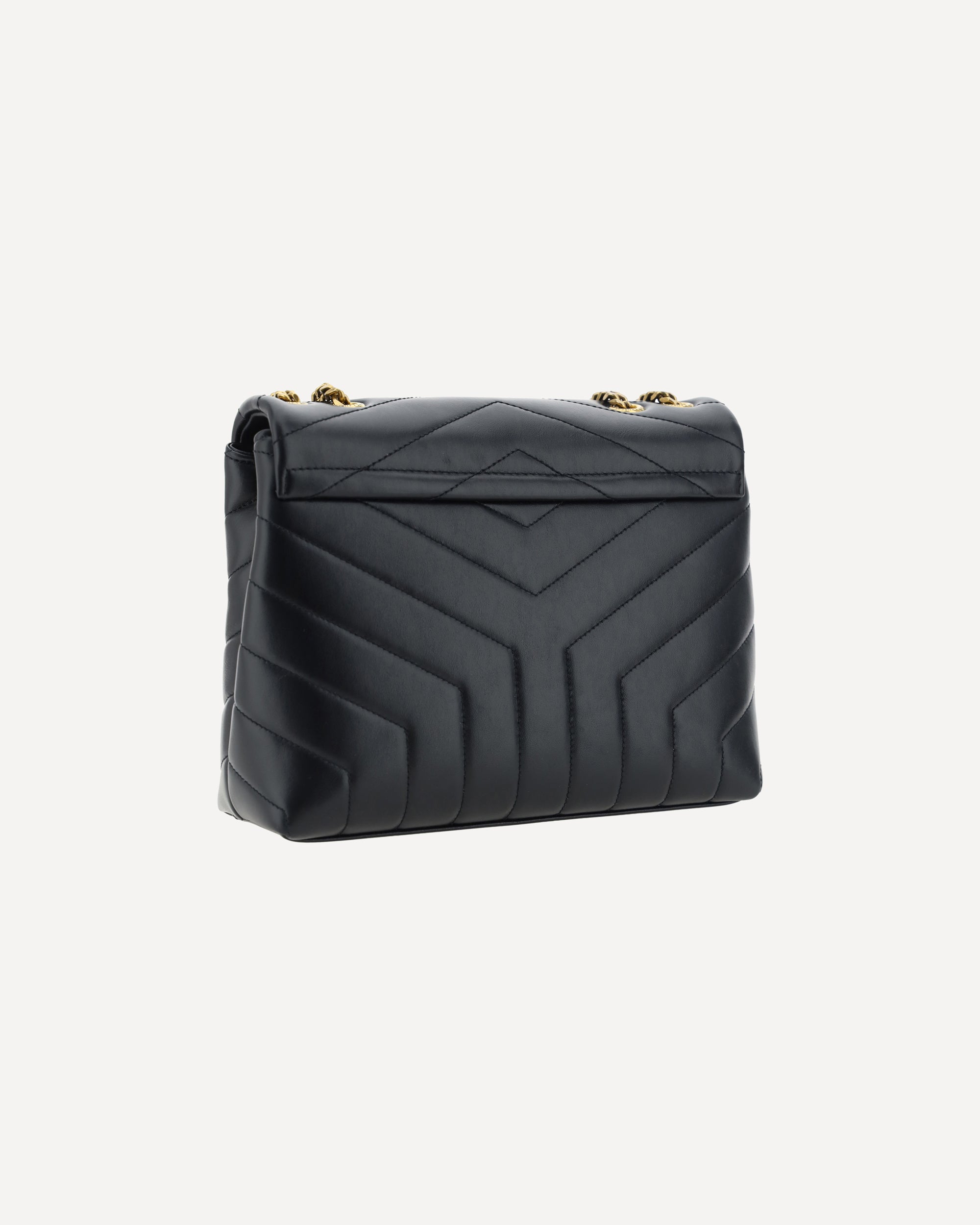 Borsa a Tracolla LouLou in pelle di Saint Laurent con chiusura frontale a patta e bottone a pressione. Il design Chevron imbottito e trapuntato all-over è arricchito dalla placca con l’iconico logo YSL in rilievo sul fronte. Dotata di manico rigido in pelle nella parte superiore e tracolla a catena scorrevole con dettaglio piatto in pelle, presenta un ampio scomparto interno per la massima praticità.