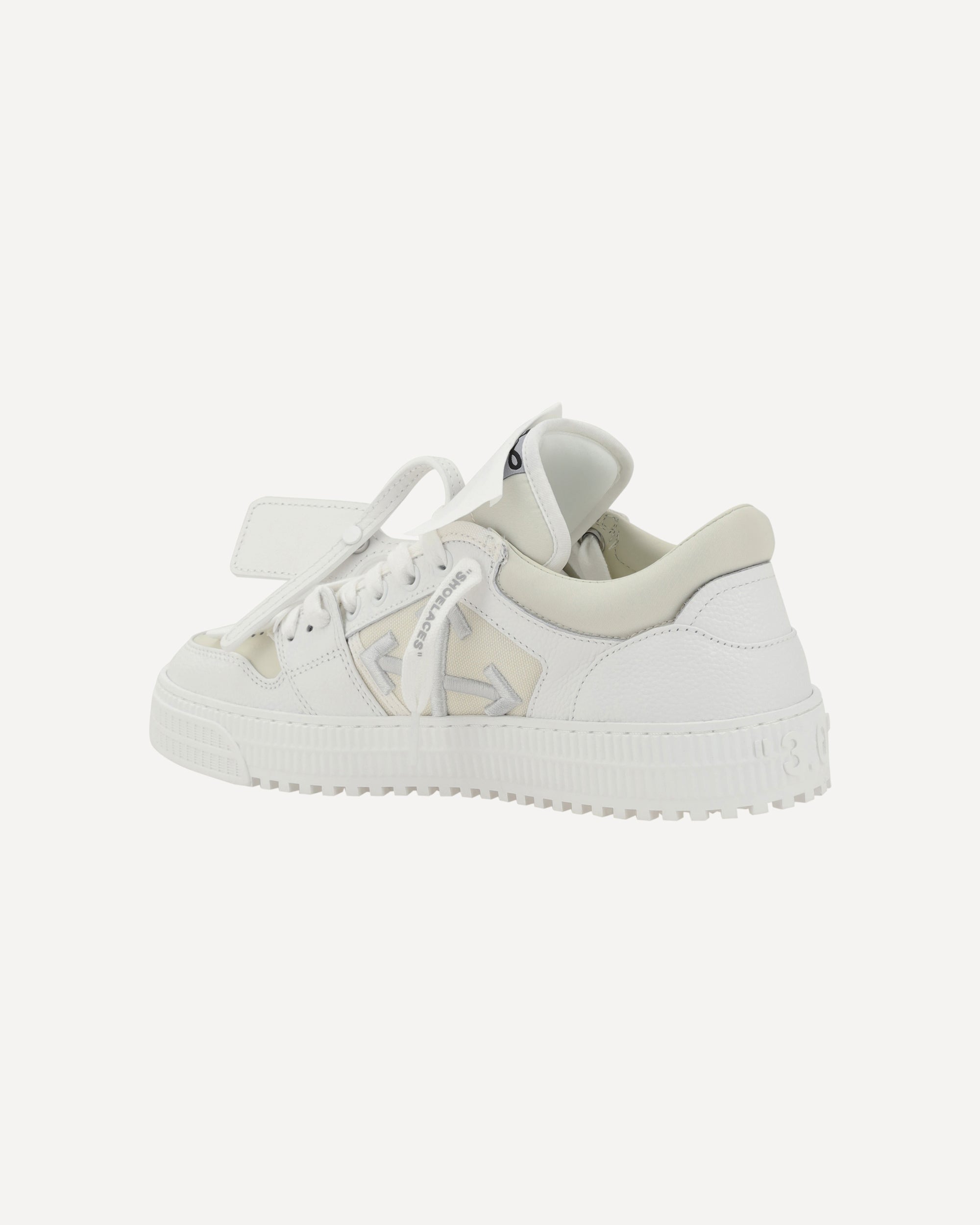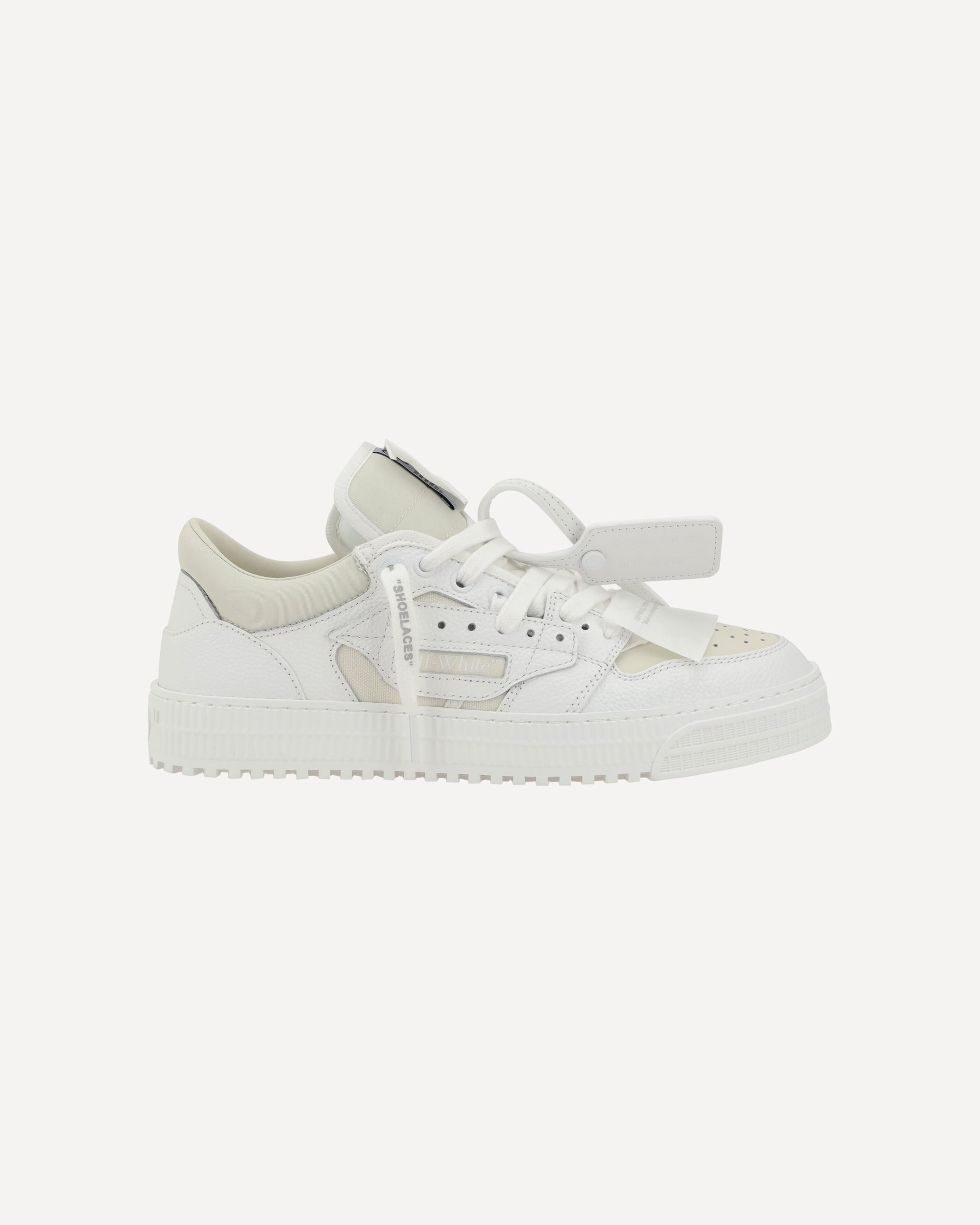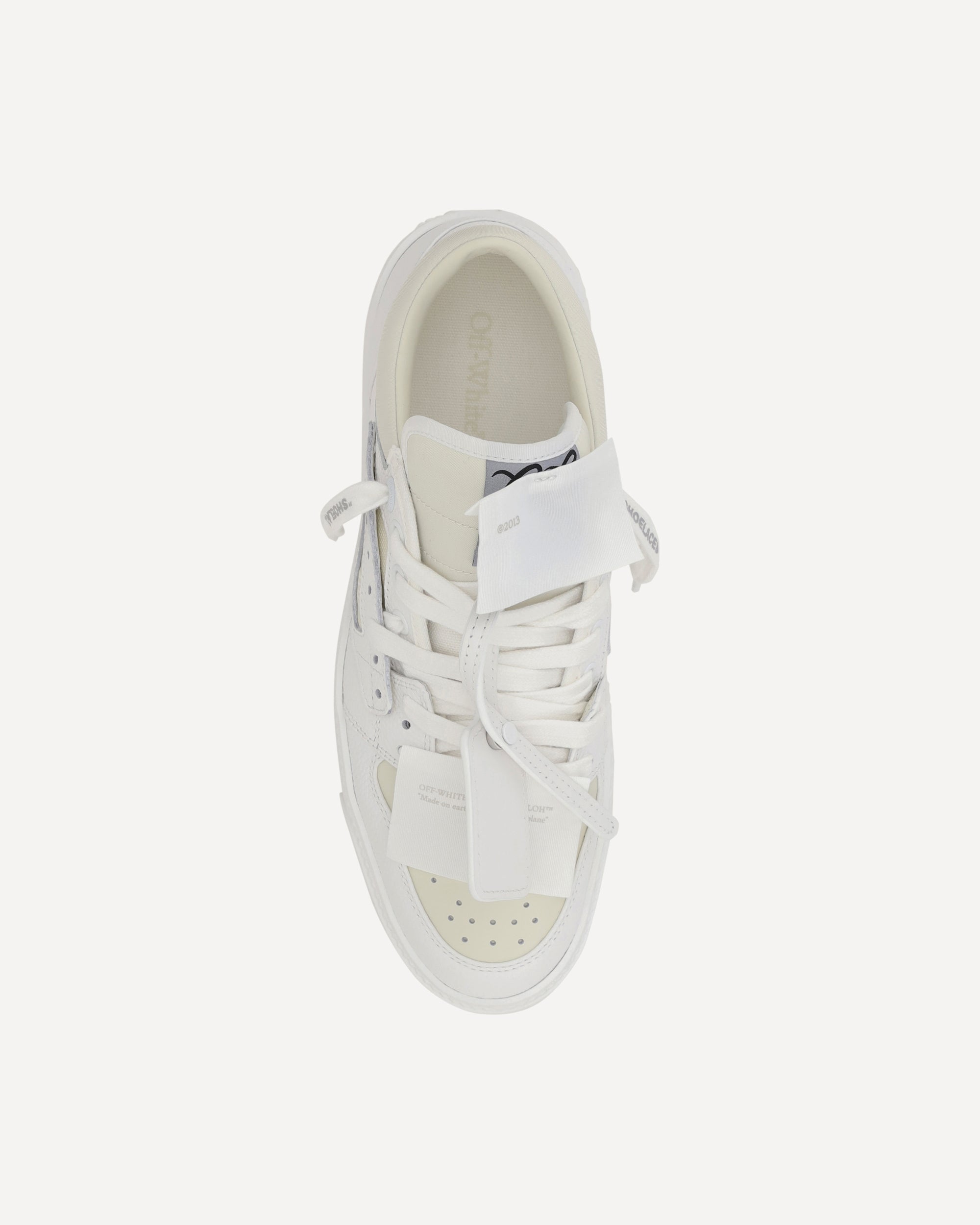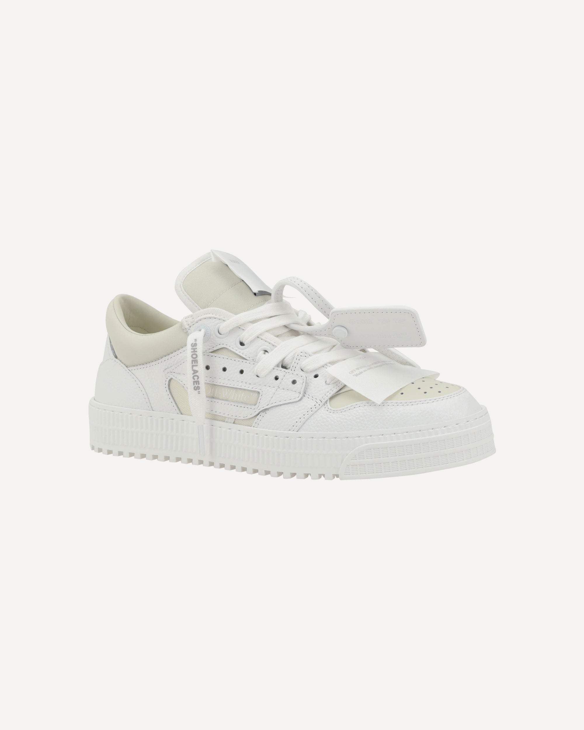 Sneakers Low 3.0 Off Court in pelle di Off-White presentano una chiusura con lacci sul fronte e una punta tonda traforata. Design a pannelli, pannelli interni sono decorati con l'iconico logo Arrow del brand, mentre la suola piatta assicura comfort. Un dettaglio distintivo è il zip tie tag applicato sul fronte, accompagnato dal logo a contrasto sul tallone, che conferisce un tocco urbano e contemporaneo.