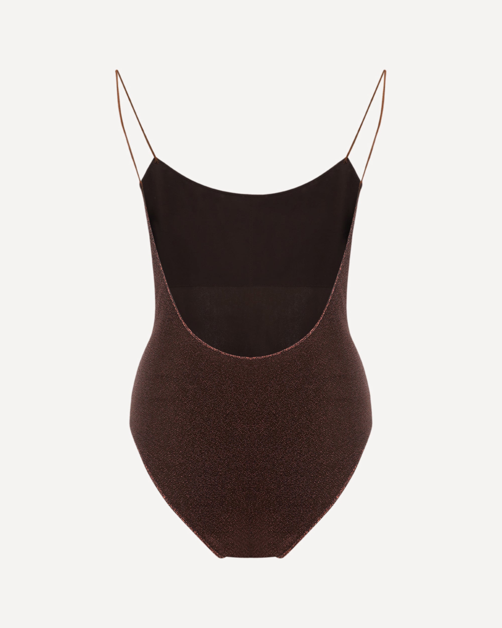 Il Costume da Bagno Lumière Maillot di Oséree è un modello intero dallo stile elegante e scintillante. Caratterizzato da spalline sottili e da una seducente apertura sulla schiena, si distingue per la fantasia monocromo arricchita da glitter applicati all-over, che donano al look un tocco luminoso e glamour perfetto per brillare in spiaggia o a bordo piscina.