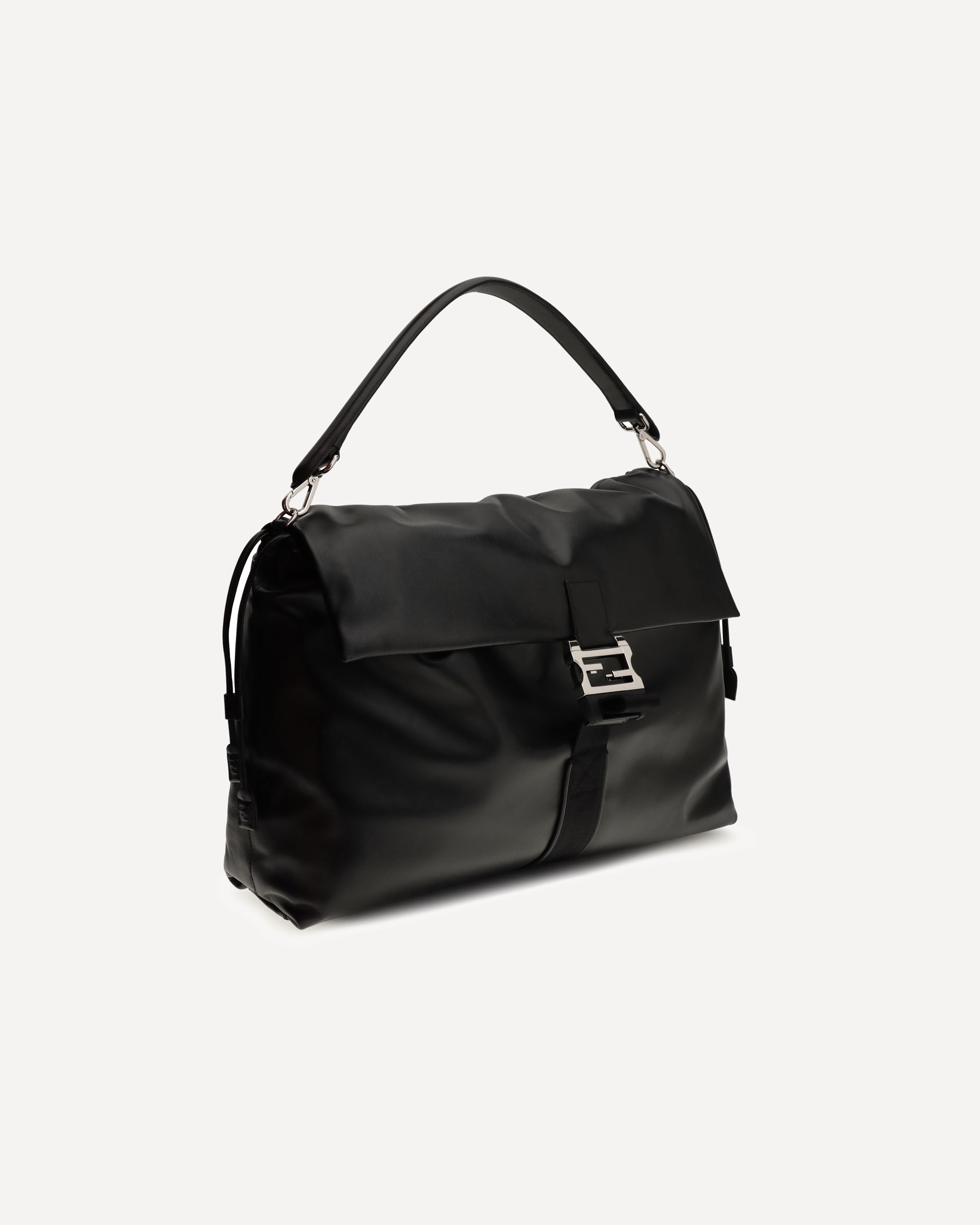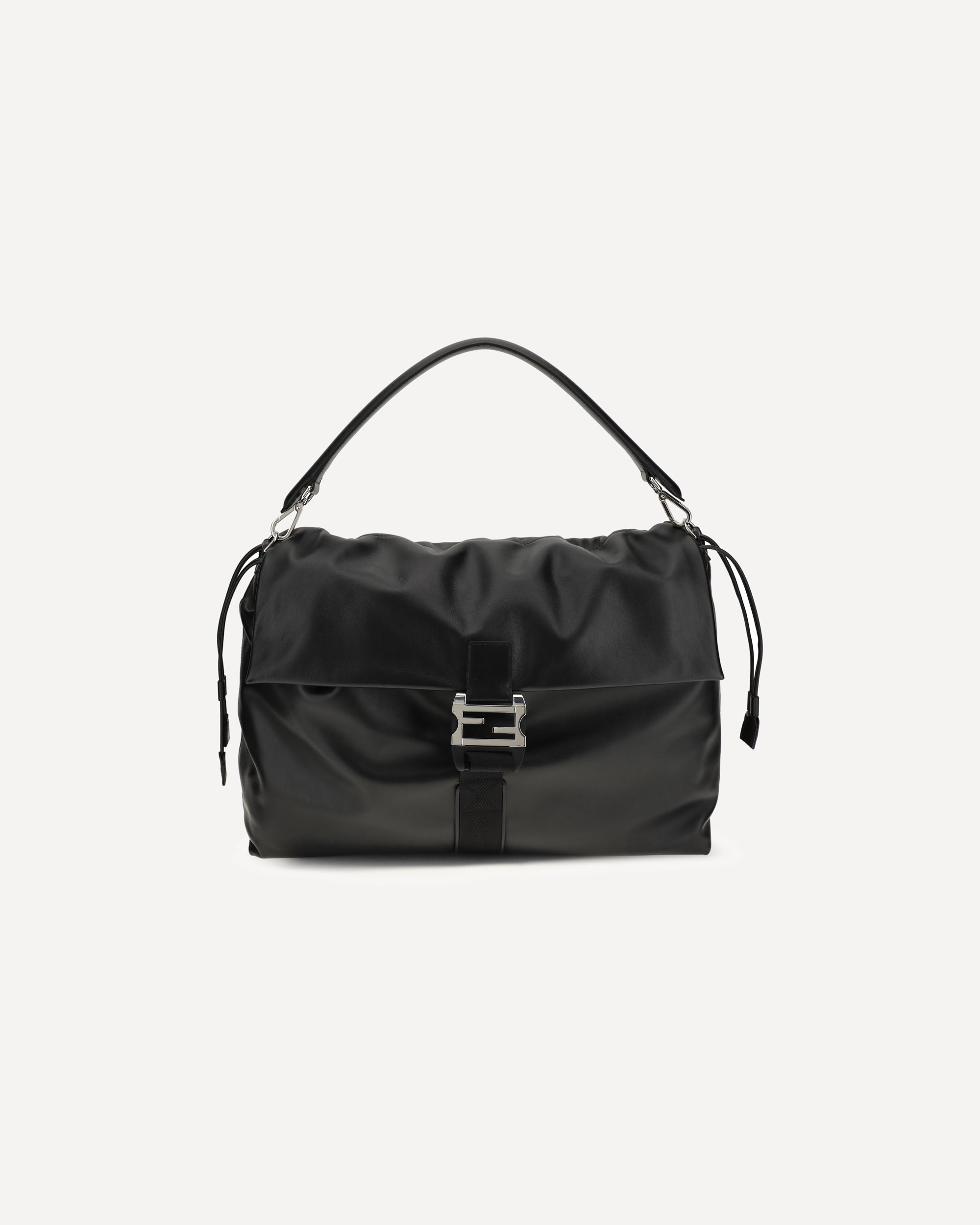 La Borsa a Spalla Mamma Baguette di Fendi è un capolavoro di eleganza e versatilità, realizzata in morbida nappa e decorata con l'iconica chiusura FF, arricchita da un inserto in pelle tono su tono. L'ampio scompartimento interno, foderato in suede, è chiuso con una coulisse e laccetti in pelle di colore panna, mentre la patta frontale e la chiusura con bottone magnetico aggiungono un tocco di raffinatezza. Gli accessori metallici con finitura dorata completano il design, mentre la possibilità di indossarla a spalla o cross-body, grazie al manico e alla tracolla rimovibili, la rende un accessorio pratico e chic per ogni occasione.