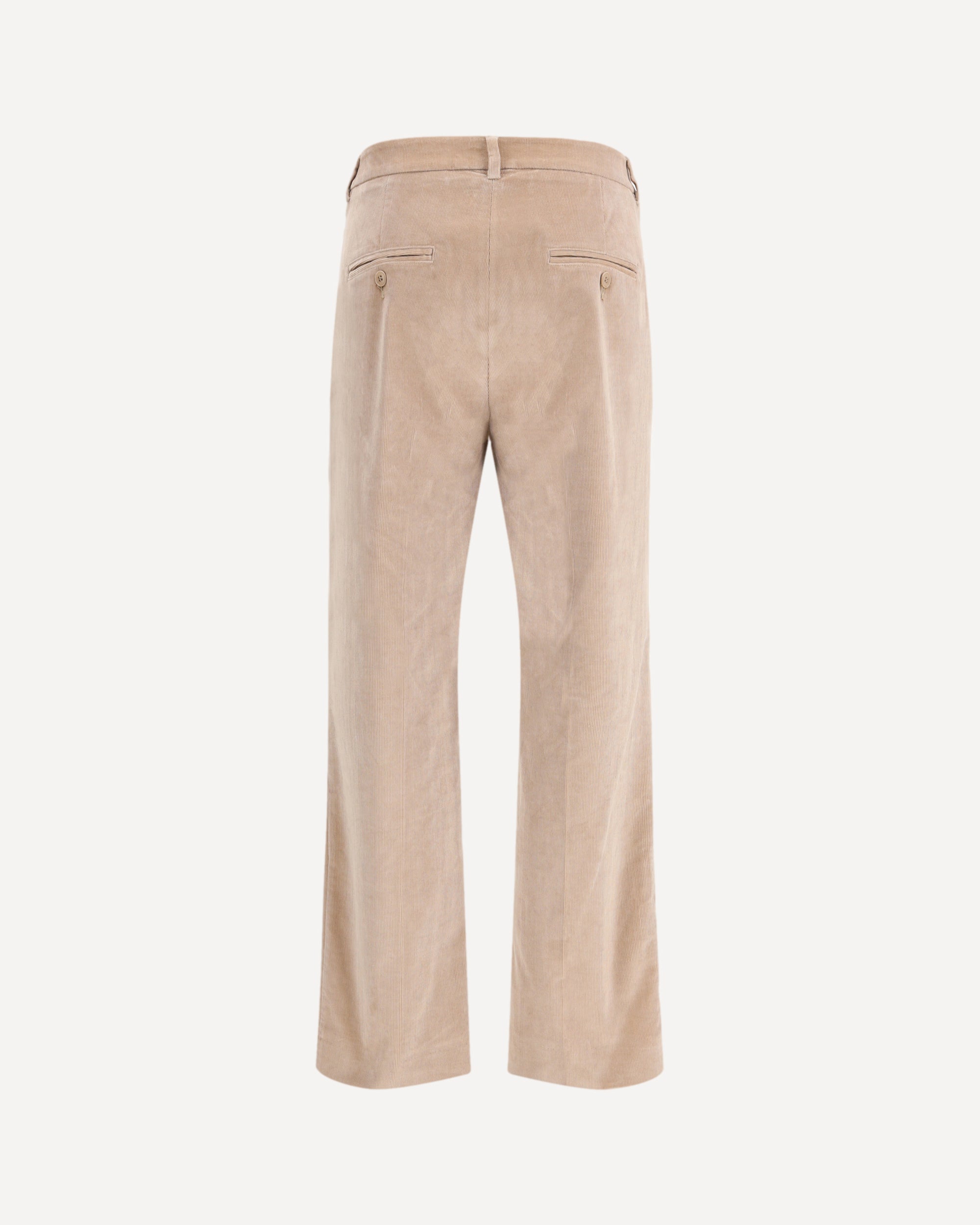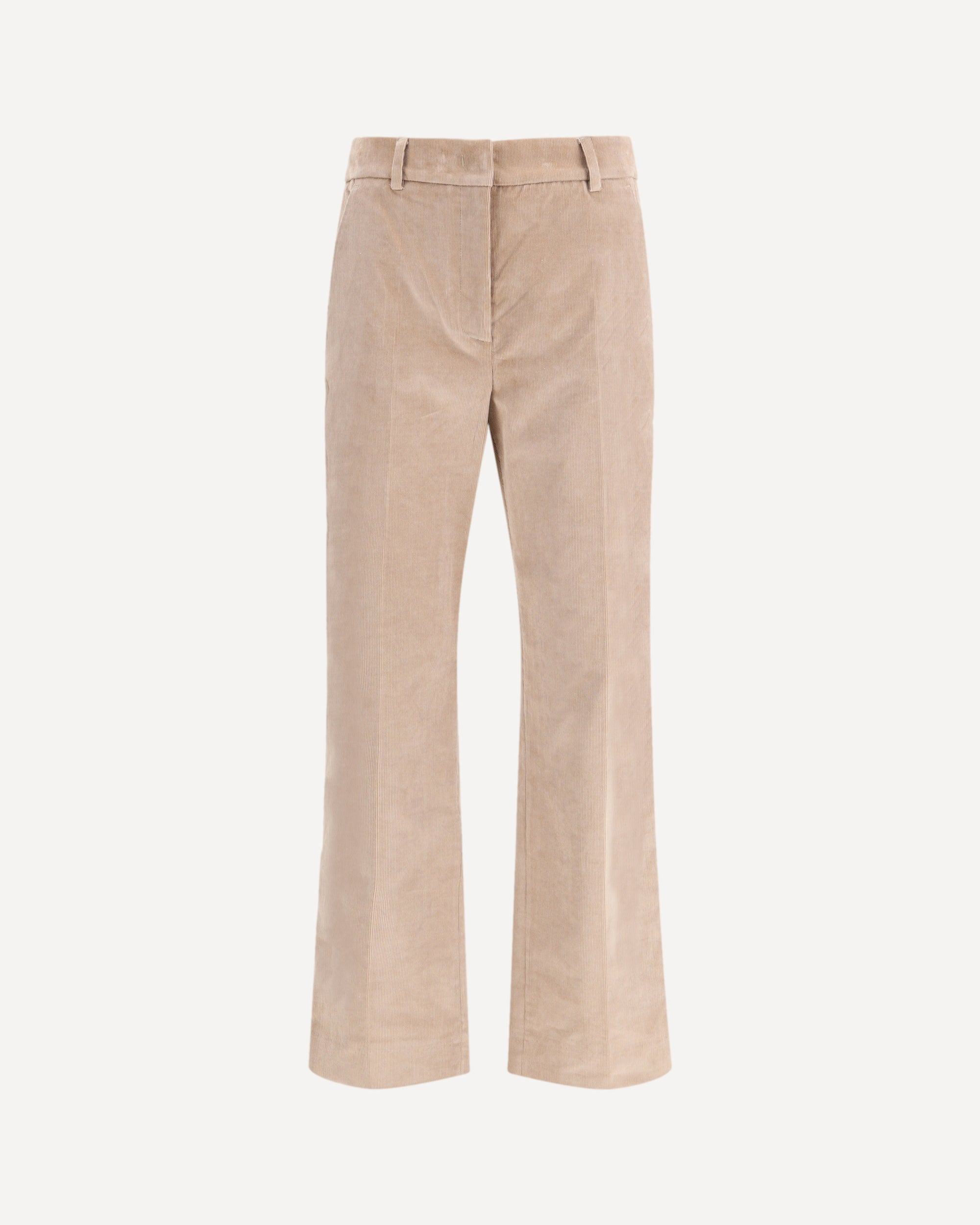 Il Pantalone Marruca di Weekend Max Mara è realizzato in velluto di cotone a 1000 righe, un tessuto morbido e raffinato che valorizza la silhouette. Il modello presenta una linea slim con leggera svasatura al fondo e taglio cropped alla caviglia, perfetto per look eleganti e contemporanei. La vita alta con listino, la chiusura con zip e gancetto, e le pieghe stirate definiscono la struttura del capo, mentre le tasche alla francese sui fianchi e le tasche a doppio filetto con bottone sul retro aggiungono un tocco sartoriale. Completano il design i passanti per cintura, per un look impeccabile in ogni occasione.