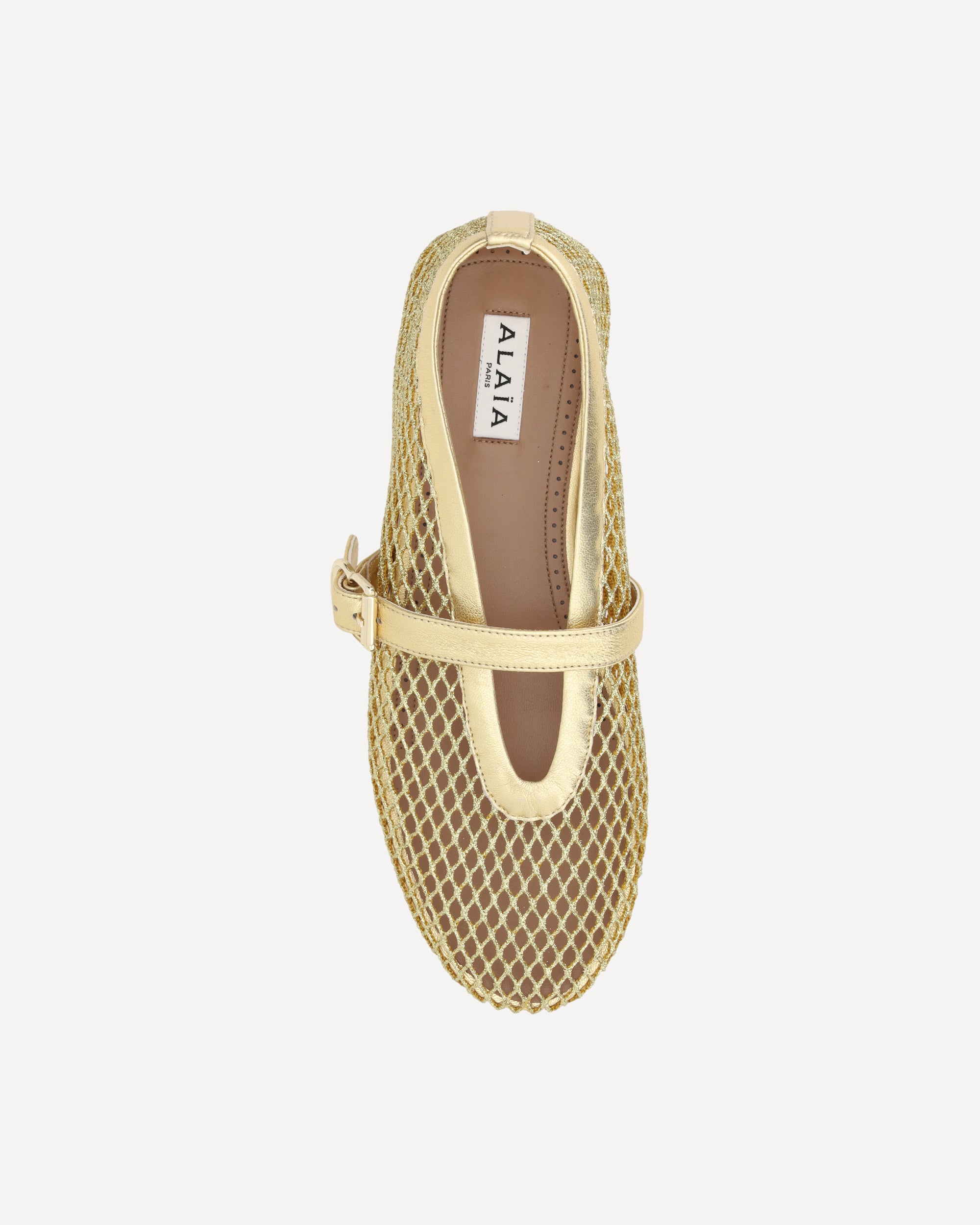 Le Ballerine in rete di Alaïa sono un'interpretazione sofisticata di uno stile classico. La punta tonda e i dettagli in pelle conferiscono un aspetto elegante e raffinato, mentre il cinturino regolabile con fibbia assicura una calzata comoda e sicura. La suola piatta le rende pratiche e versatili, ideali per un look chic e femminile. Un paio di ballerine perfette per aggiungere un tocco di classe a qualsiasi outfit.