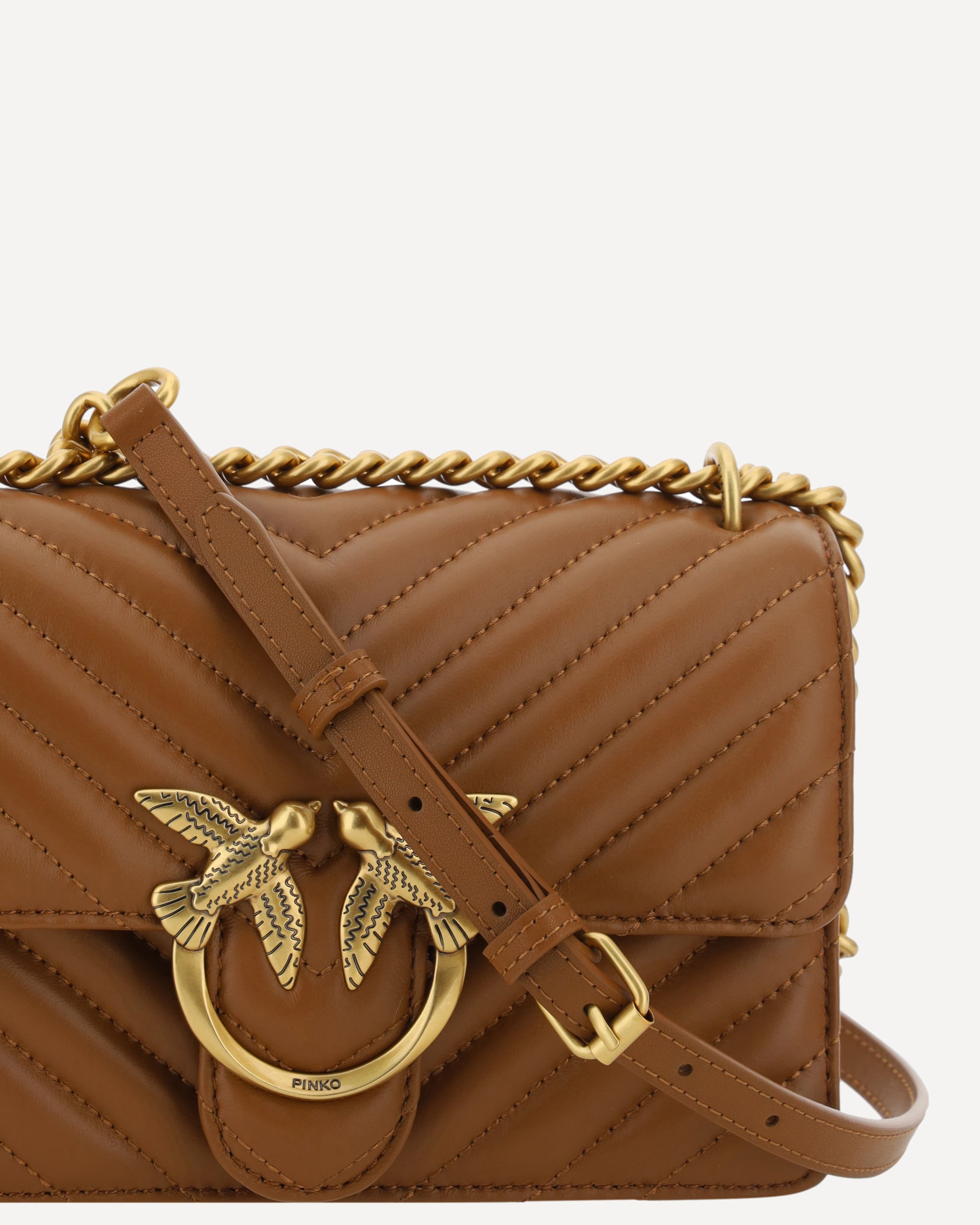 La Borsa a Tracolla Mini Love in Pelle di Pinko è un mix perfetto di eleganza e funzionalità. La chiusura frontale con patta magnetica assicura sicurezza e praticità, mentre l'iconico logo Love Birds placcato oro e applicato in rilievo sul fronte aggiunge un tocco di lusso distintivo. Il design trapuntato e imbottito non solo è raffinato, ma dona anche una sensazione di morbidezza e comfort. Il doppio scomparto interno offre spazio sufficiente per tenere tutto in ordine, mentre la tracolla a catena scorrevole permette di adattarla alla tua altezza preferita, rendendola perfetta per ogni occasione. La tasca interna a filetto e il monogramma del brand ricamato tono su tono sul retro aggiungono dettagli esclusivi che rendono questa borsa un must-have.