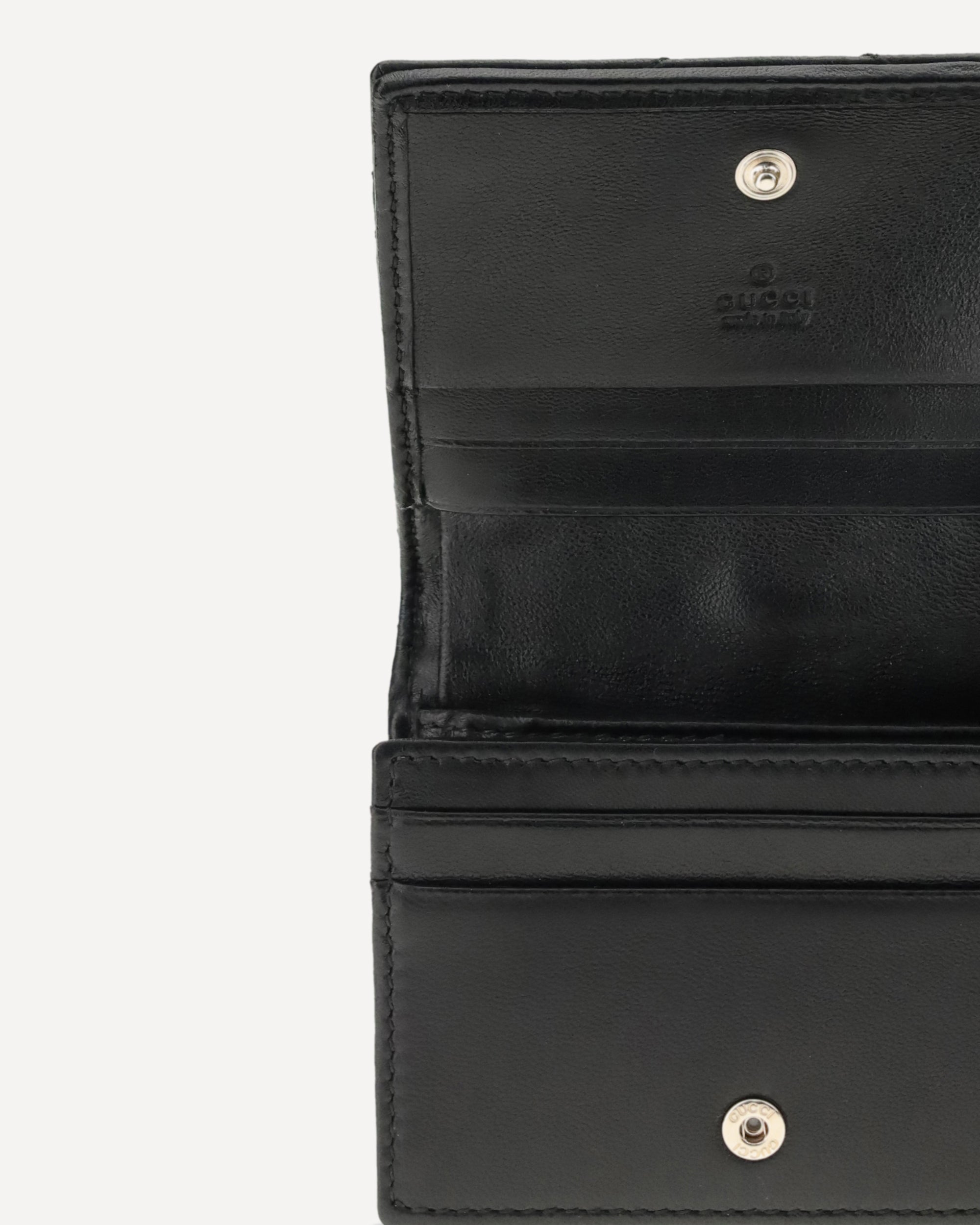 Il Portafogli GG Marmont di Gucci è un accessorio elegante e funzionale, realizzato in nappa matelassé con motivo chevron beige rosato. Il design è impreziosito dall’hardware color oro chiaro e dalla celebre doppia G sul fronte. L’interno è organizzato con 5 fessure per carte, una tasca aperta, una tasca con zip e uno scomparto per banconote, mentre la chiusura con bottone automatico garantisce sicurezza e praticità.